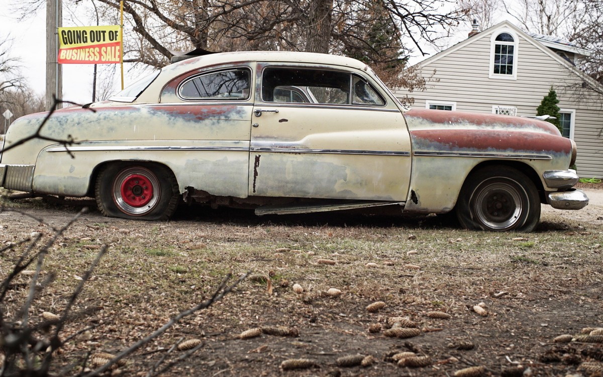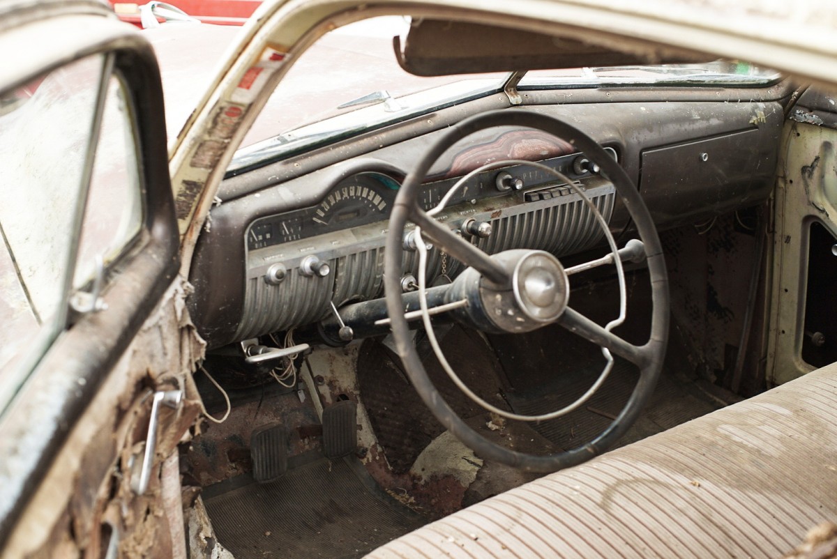 Not too far gone to become a lead sled. Why rat-rod it when they are beautiful with door handles and most other trim gone, fender skirts, lowered and painted. I guess making a rat-rod can be inexpensive if not professionally done, but this doesn’t look beyond the capabilities of a DYI car enthusiast. Wish I had the time.