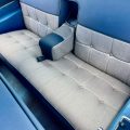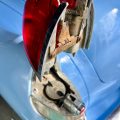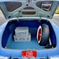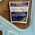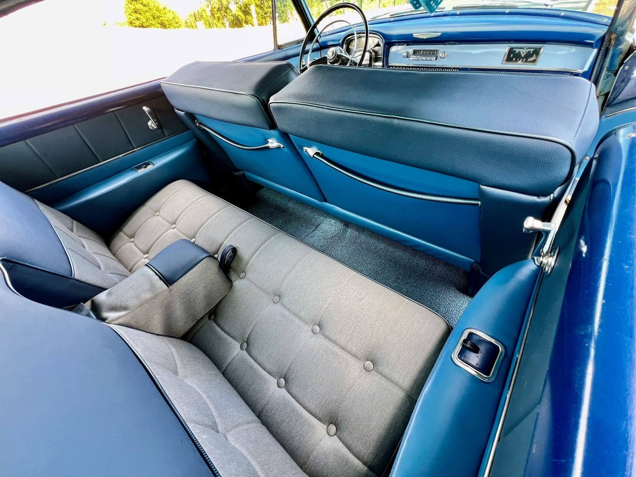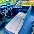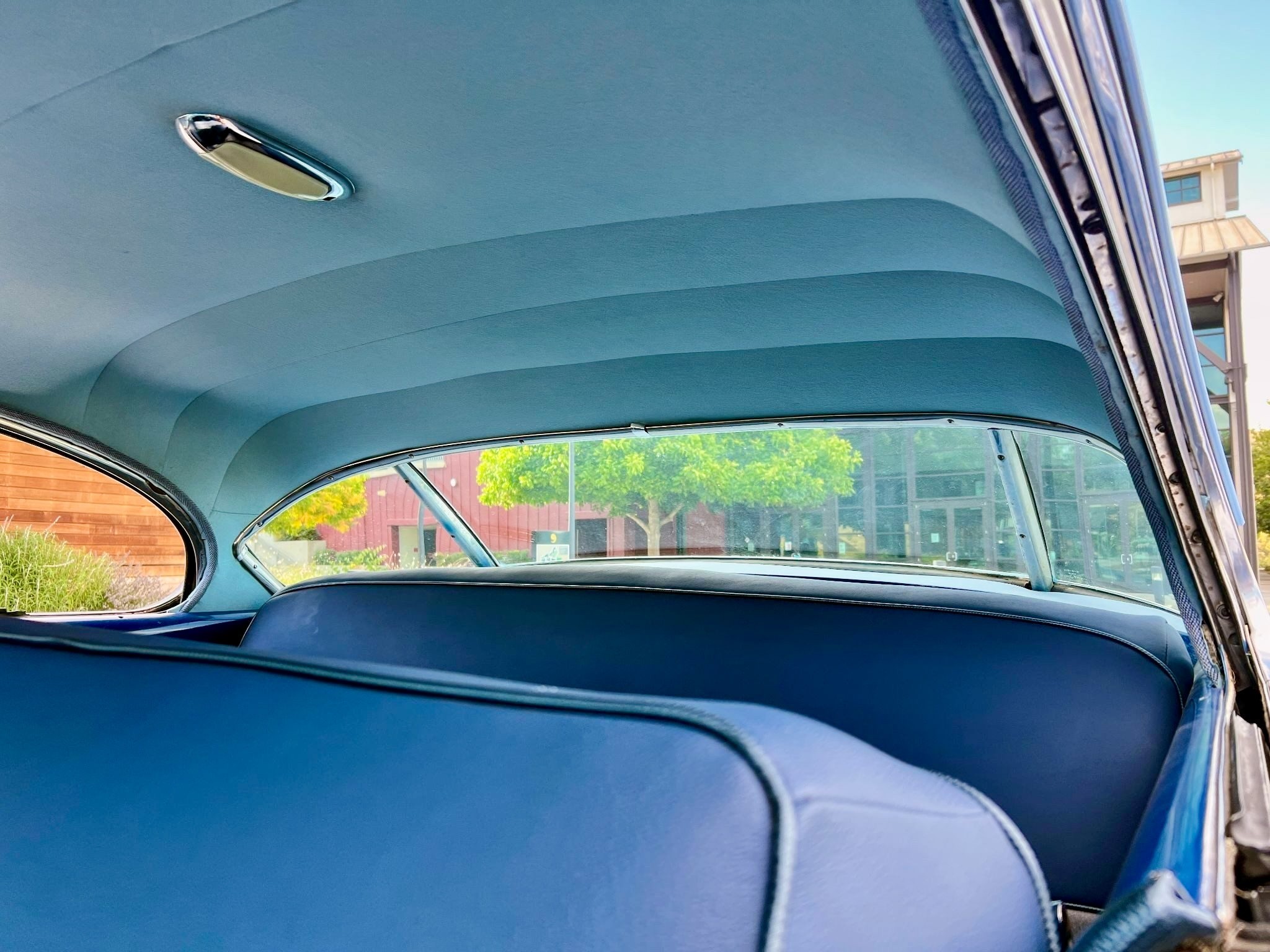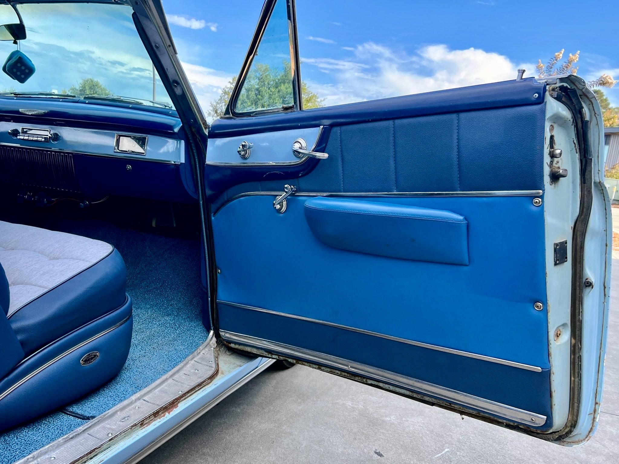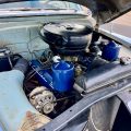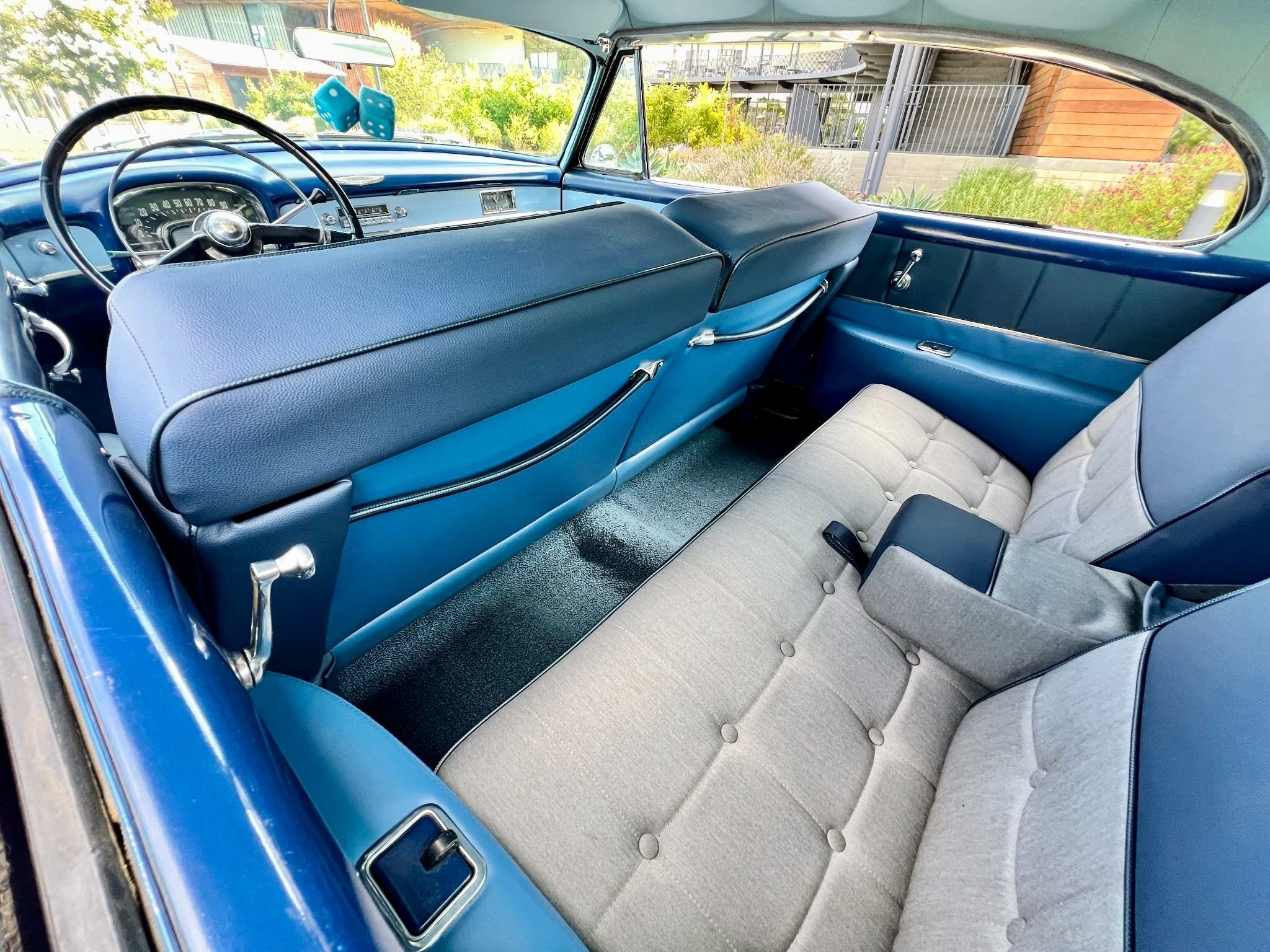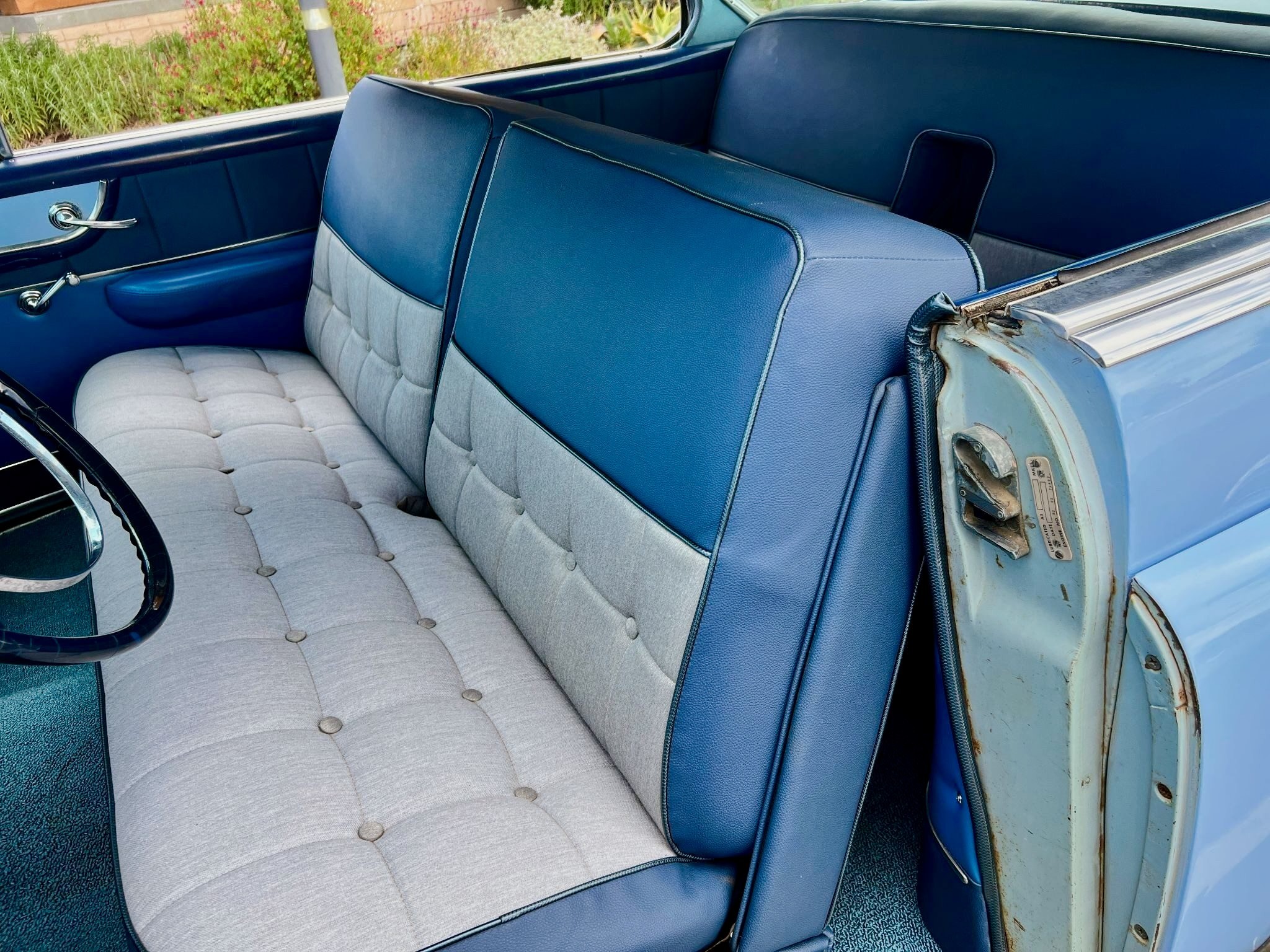 Although the paint job is only about a decade old, the door, trunk, and underhood jambs all wear their original coat of Olympic Blue. The body tag tells us that the car has paint code “20,” which means that it was originally painted Olympic Blue with a Nassau Blue roof. The current paint job is painted in a single tone, but it’s a nice-looking color that’s a fine complement to the code “42” interior: Light Blue Bedford Cord and Dark Blue Plain Broadcloth. The seller also notes that the body has some small dings, and there is a crack in the front passenger-side window glass.