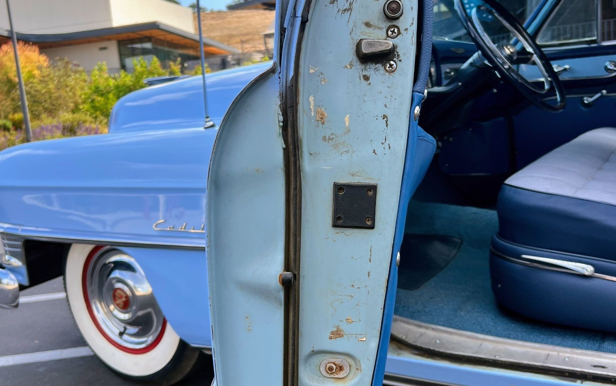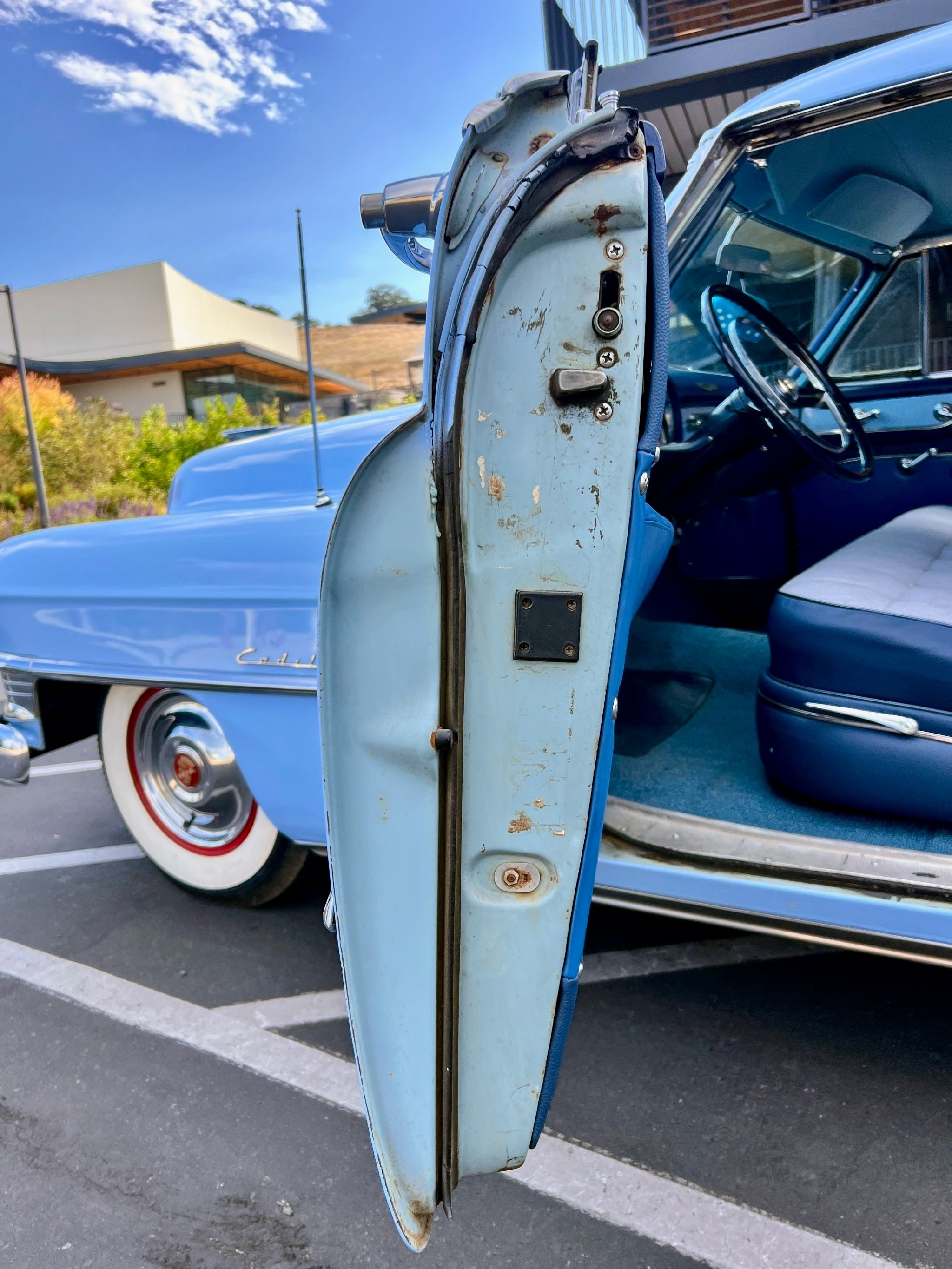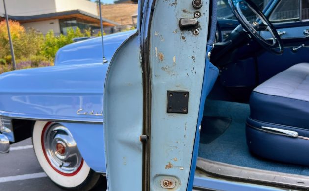 and had it restored in ’72. And that car has the hashmark trim from a Fleetwood sedan on it. When I asked him about it, he told me that it was made that way. And no, I wouldn’t mind having this car, but neither of the girls like Cadillacs. It really bites being