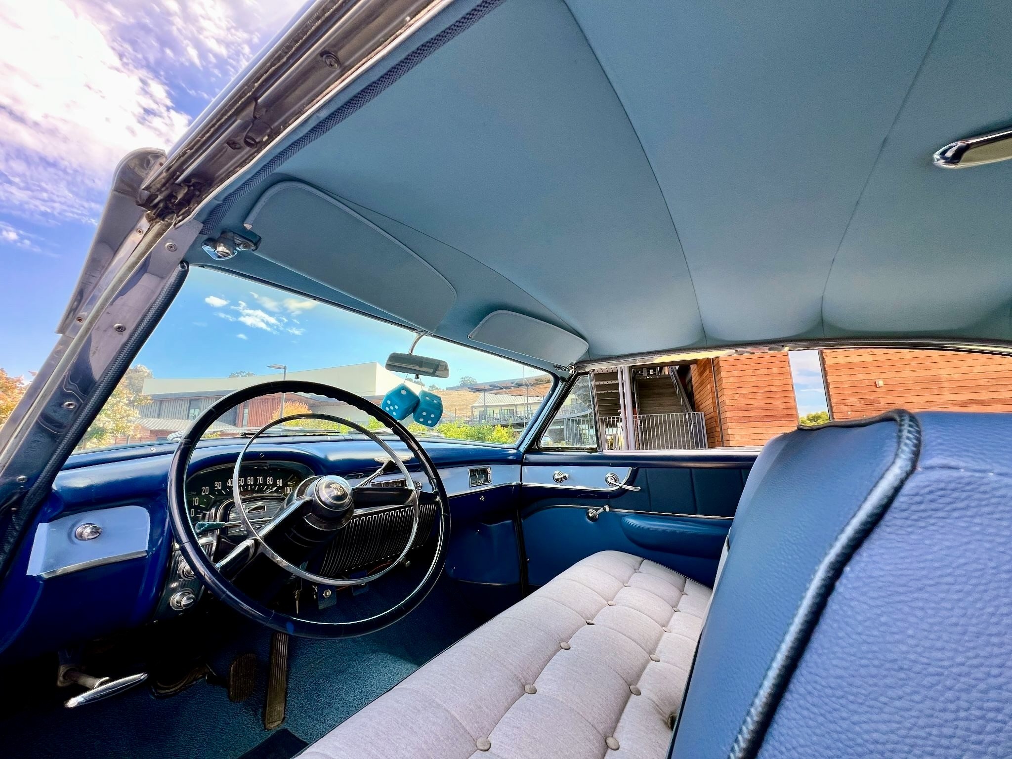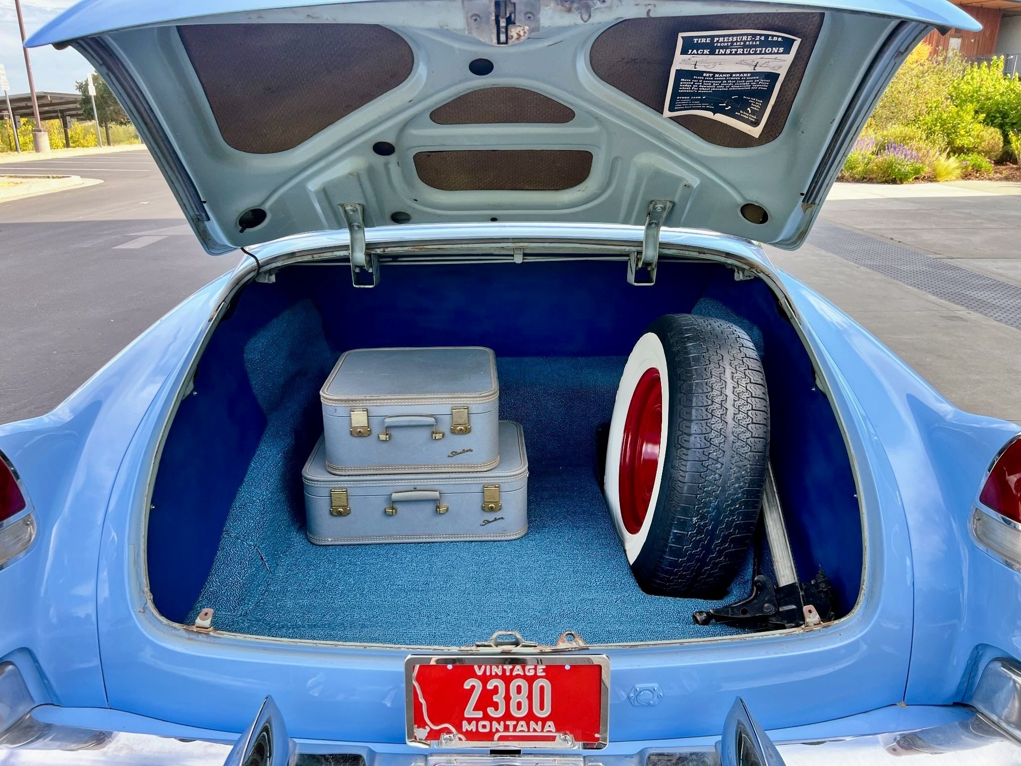 Harley Earl, General Motors’ famous chief stylist and master showman, preferred big, domed hoods on his creations to show a sense of power waiting to be unleashed. In the Cadillac, that wasn’t an exaggeration, as its 190-horsepower 331-cubic-inch V8 was the most powerful engine in the industry in 1952. Backed by GM’s brilliant four-speed Hydra-Matic, it was a power team befitting Mr. Earl’s Motorama-influenced styling. This example has been upgraded with a 12-volt electrical system with an alternator and a push-button-operated starter, in addition to an electric windshield wiper motor.