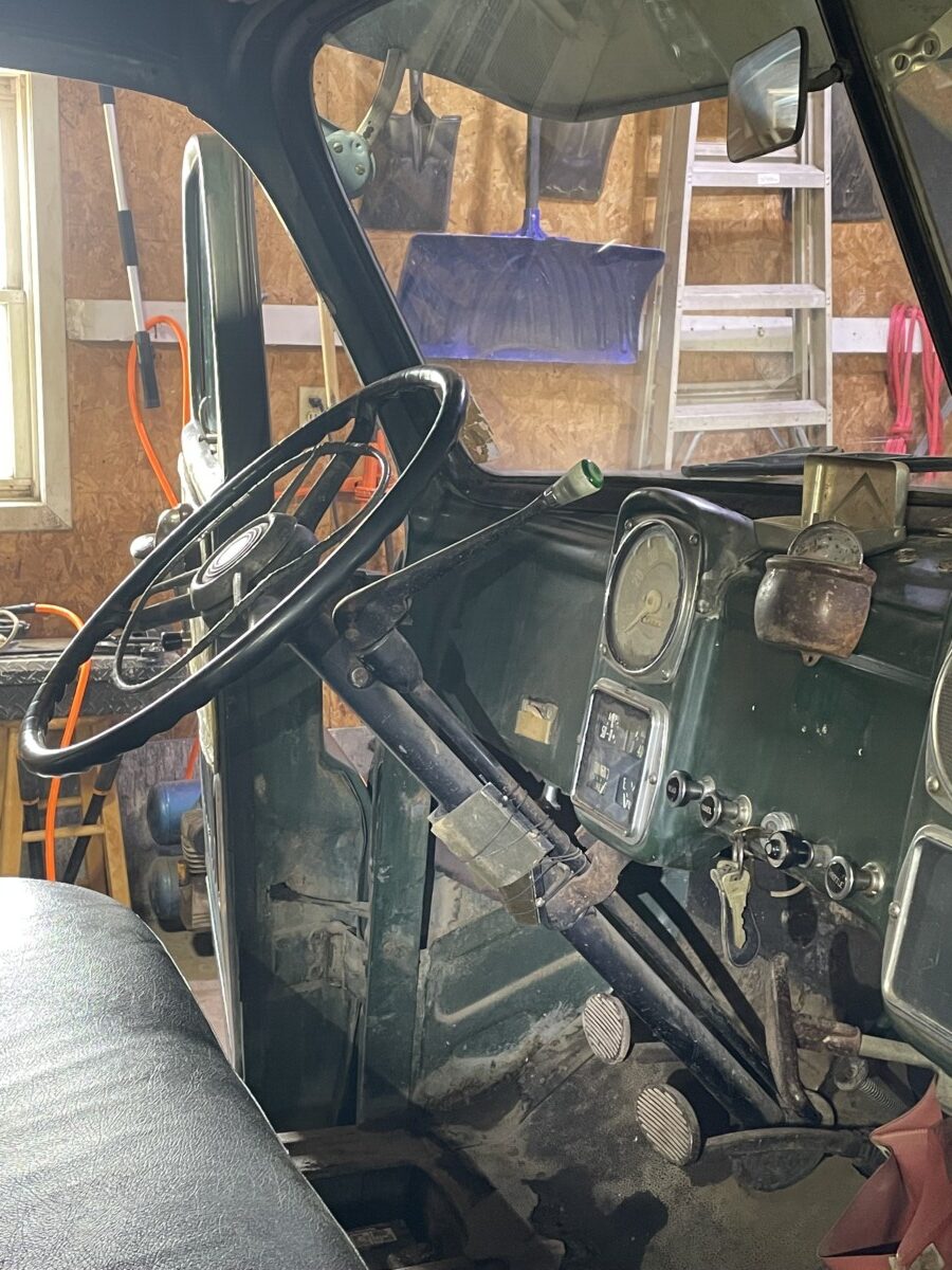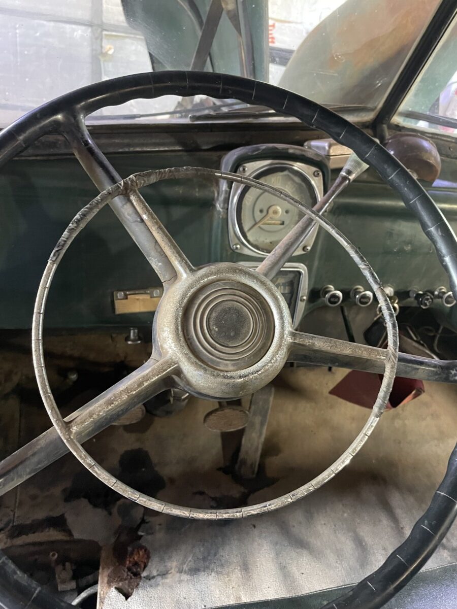 I had a 53 “Spring Special”, but with a 4spd and one piece back window. Given the condition of this one, I would consider leaving the exterior as is, but I would have to redo the interior, especially since there’s been holes drilled in the dash. That horn ring looks like it belongs there, but I’ve never seen one on a truck from this early in the decade, but maybe Dodge had such an offering, no other make did. I’ll be interested in seeing where the price goes.