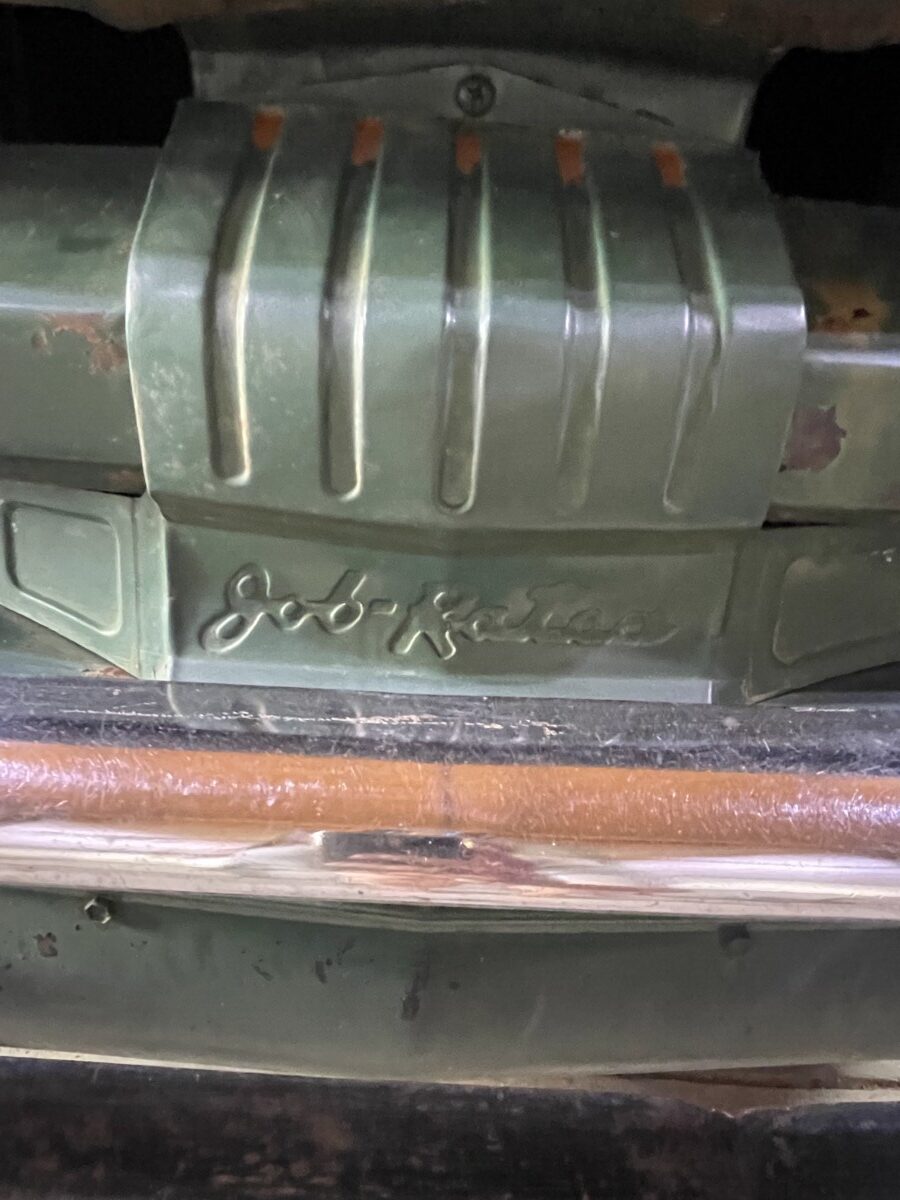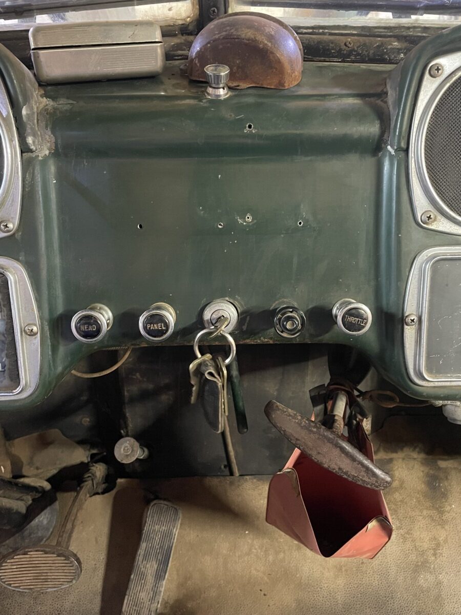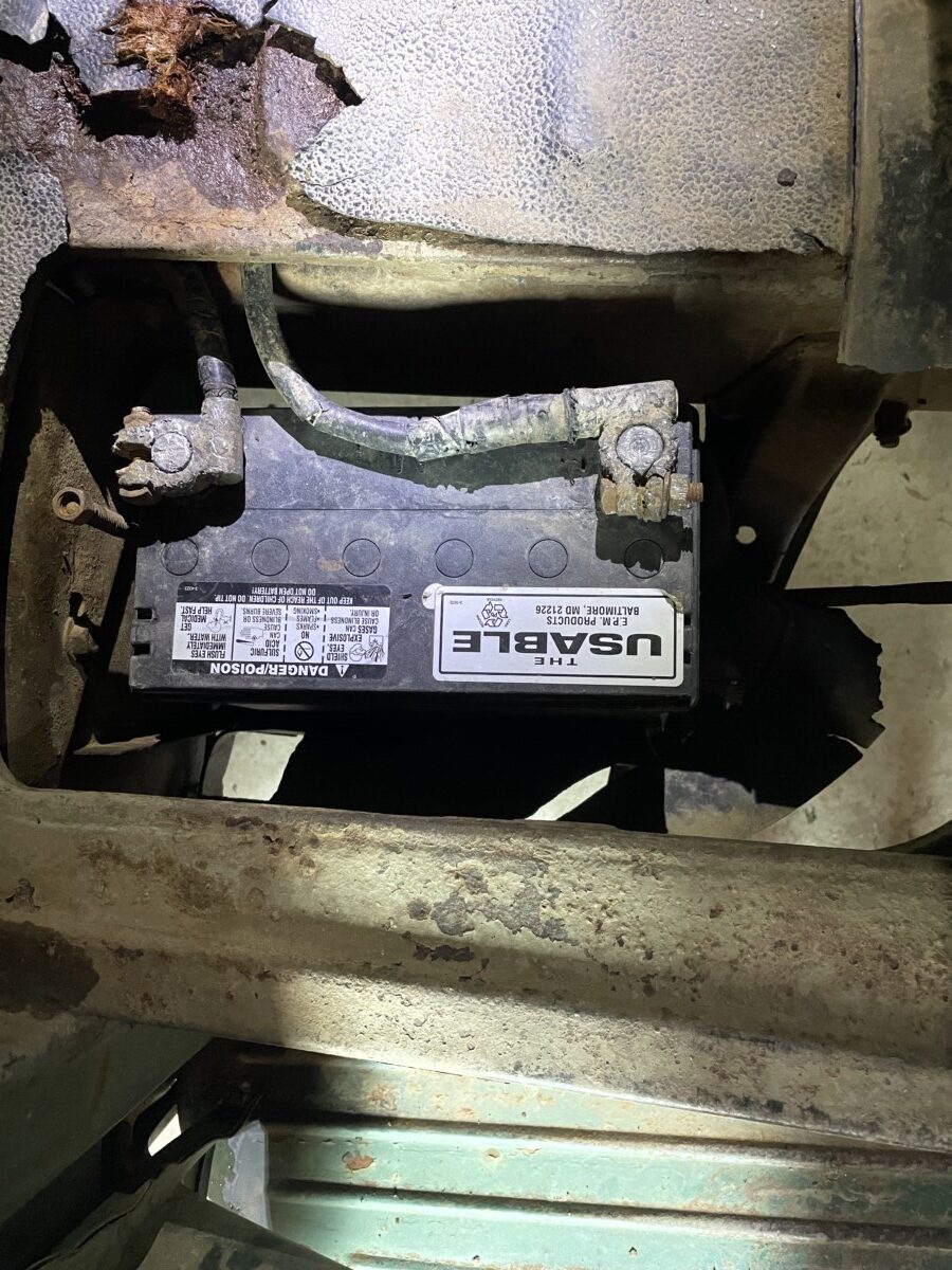 No mention of a 12 volt generator or alternator conversion and yet that’s a 12 v. battery sitting there. Bet she starts well!