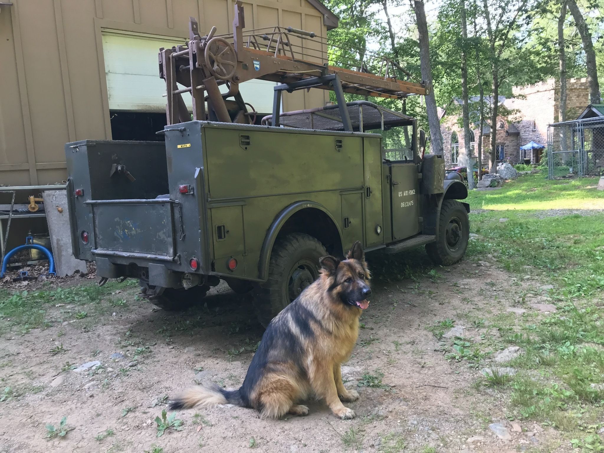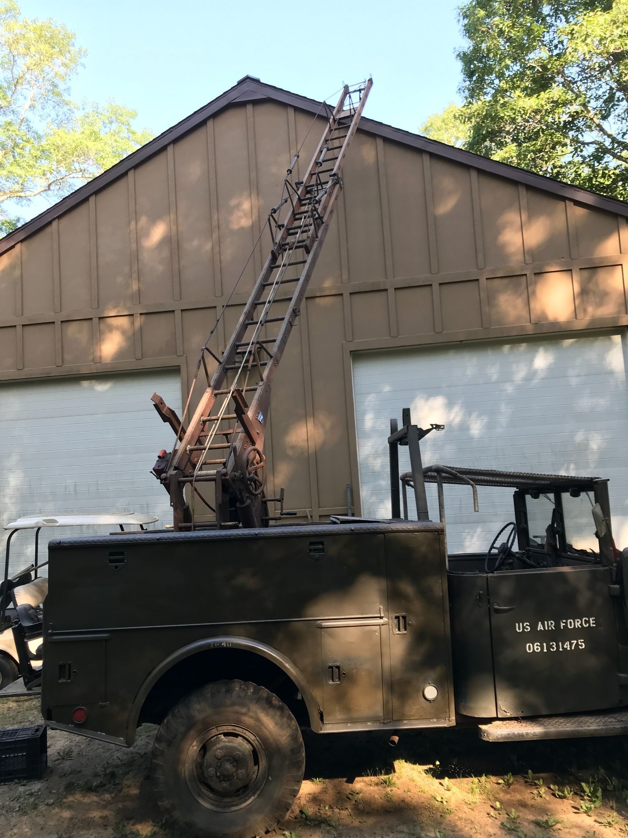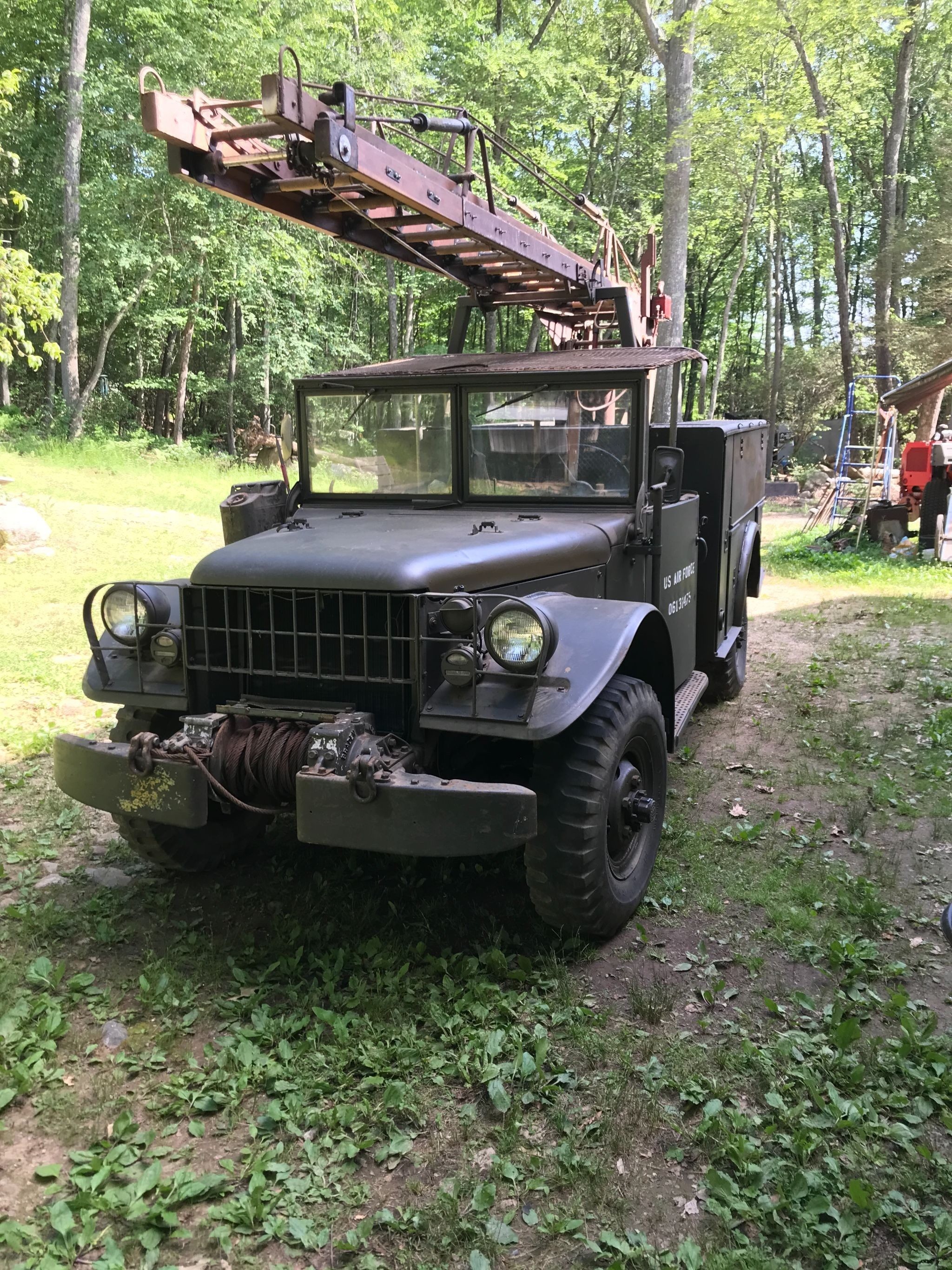 The extending ladder is an add on (perhaps after delivery to a branch of the military or after released as surplus). A stock V-41 essentially had a utility body on the longer wheelbase chassis of the M-43 ambulance. I wonder how stable this ladder is without outriggers. I believe that it has been repainted and lettered (the unit number lettering looks to have an error). Hardtops are available to fit this (or canvas). This would be great for a collector for fun or on a piece of rural property- I met a guy who built a house with one of these with an A frame attachment. Not great for frequent and/or long distance “high speed” driving. These are fairly rare (as is the R2 crash rescue variant) compared to the more common M-37. I had an M-43 ambulance years ago. Every journey was an experience.