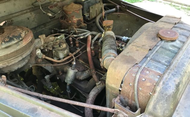 The V41 (and all M37 variants) used the 230-cubic-inch Dodge T-245 flathead inline six, which made 78 horsepower. When combined with a weight (with winch, which this truck has) of almost three tons and 5.83:1 axle ratios, you’d better leave plenty early in the morning for work; top speed was about 55 miles per hour, and a comfortable cruising speed would be lower than that. Still, the ability to climb steep grades and then hoist the ladder to climb steeper ones rewards you for your patience in getting there. Does this truck run? Currently, the owner has it running on starting fluid, because it’s been sitting for the last 15 years (of 30 that he’s owned it), so it will need some fuel system maintenance.