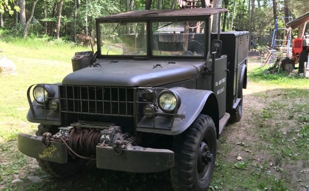 We all like to think that we’re free thinkers, but I’m definitely not alone in saying that I’m suggestible; I once bought a Corvair because my mom mentioned that she thought they were cute. Well, it didn’t hurt that I had been thinking about it for a few months before that, but sometimes we just need that bit of a nudge, and perhaps that nudge for you is a Barn Finds Auction. I for one have never owned a military vehicle, but every once in a while I’ll see one and be intrigued. What’s that all about? Who built it? Where do I get one? It’s a dangerous game, being a car lover. This is a 1953 Dodge V41, which is a variant of the M37 that was designed to be a “telephone maintenance vehicle,” according to truck-encyclopedia.com. The working 30-foot mechanical ladder verifies that assertion, so if you need a working collectible for trimming trees, painting your house, or any number of odd jobs, maybe this is the military vehicle for you. It’s located in East Haddam, Connecticut, and is open for bids now.