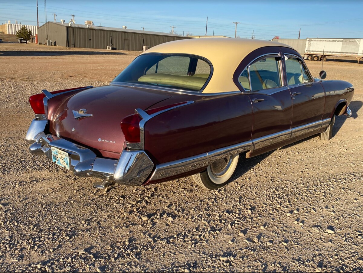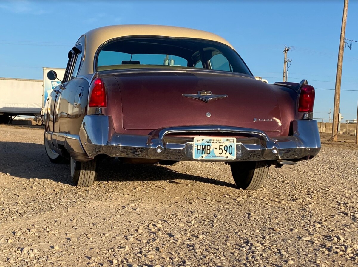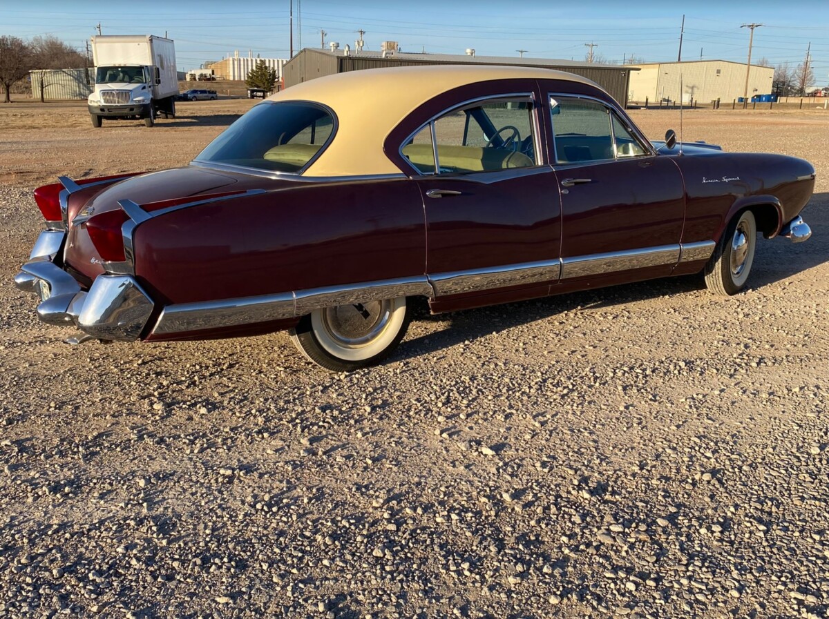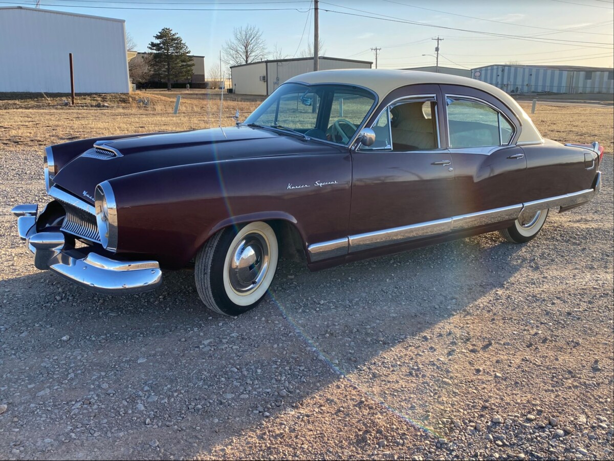 Looks to me like one of the leftover ’53 bodies — Kaiser had a bunch of them — that received new front sheet metal, the restyled tail lights, and was then sold as a “1954” model. The roof with its smaller rear window and the older-style instrument cluster are the “tells.”