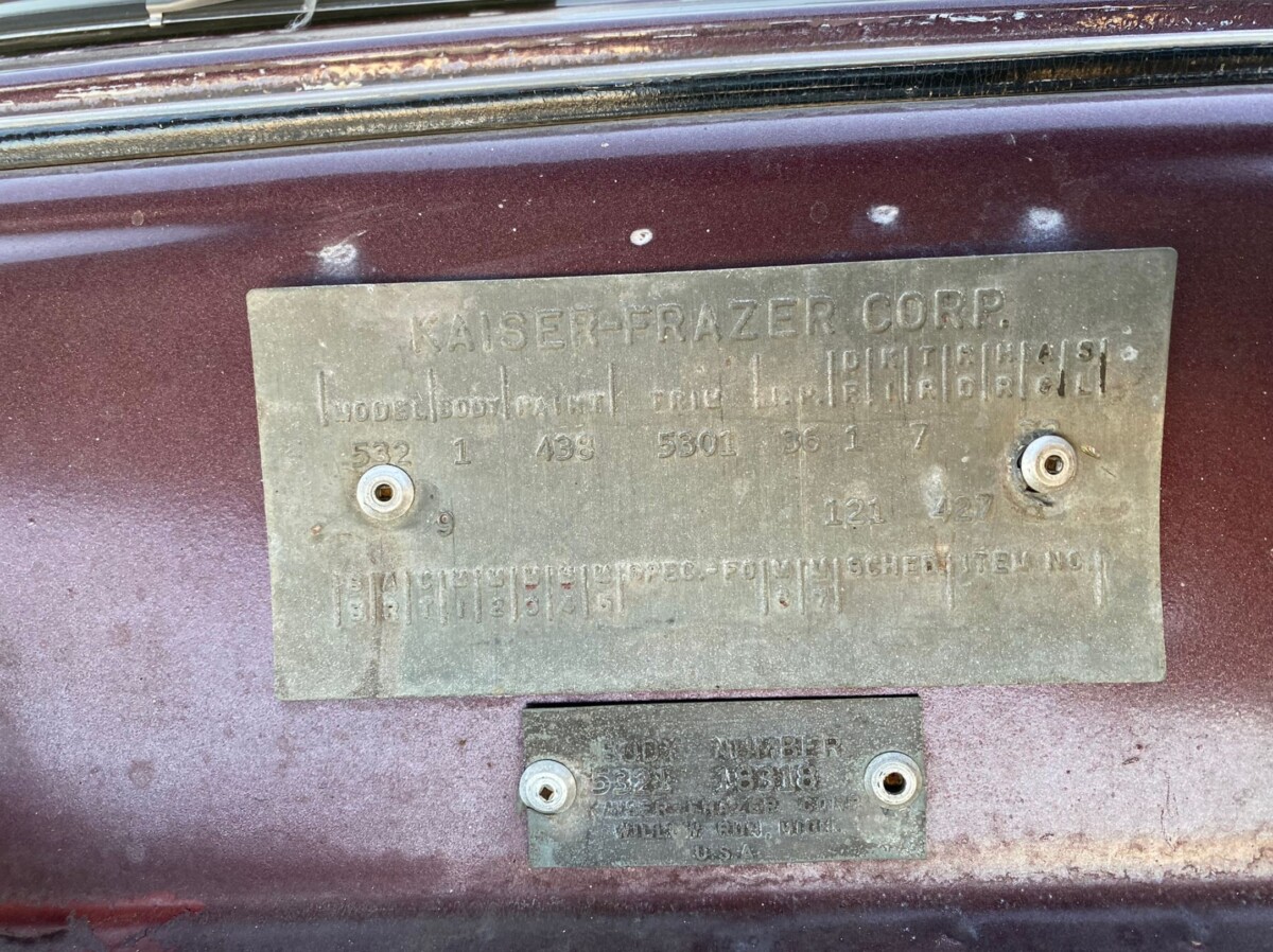 With a “K532” (1953) serial number, this was likely one of the first such cars built. Kaiser first used this when faced with a large stock of unsold ’49 Kaisers and Frazers.