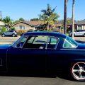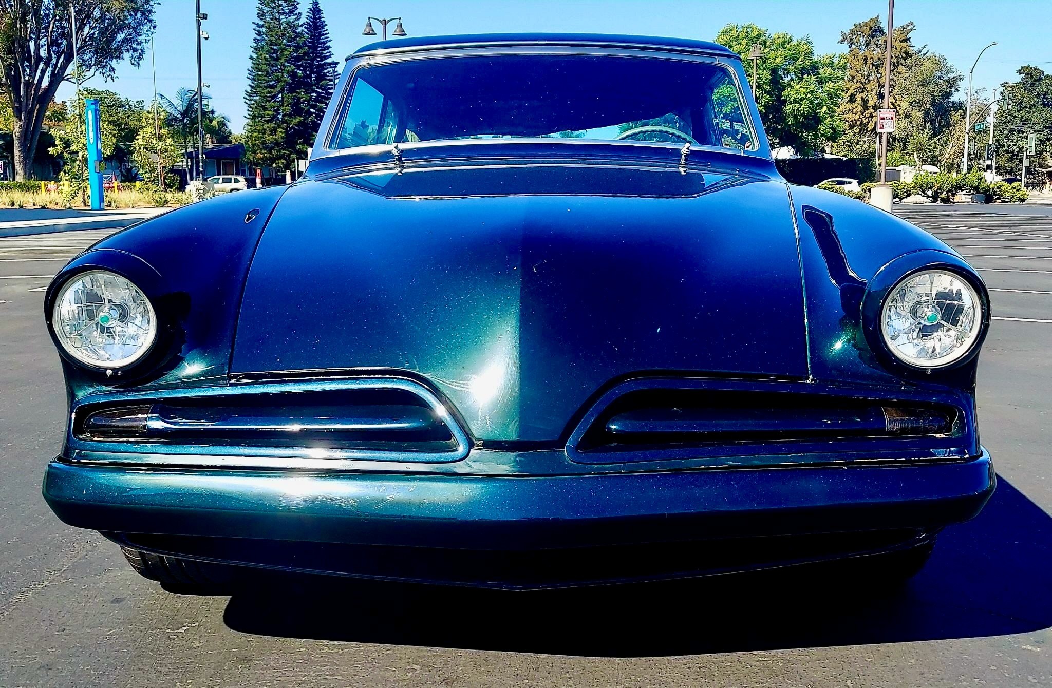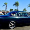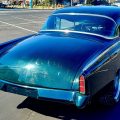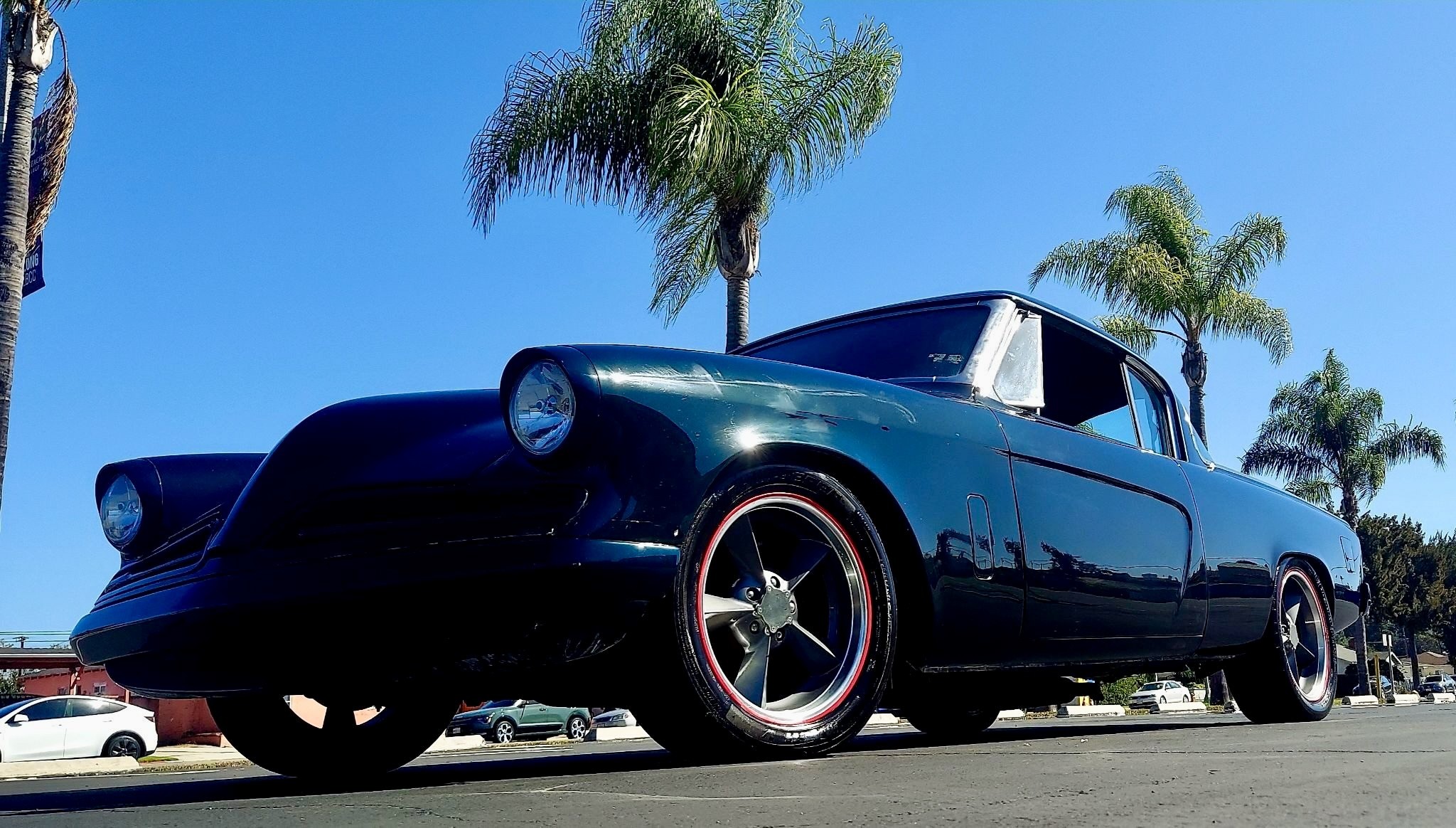 The 17-inch Torq-Thrust-style wheels add some attitude without over-modernizing this ’50s coupe. The de-badged look with painted bumpers says “custom,” while the bright trim deftly dodges the short-lived ’80s monochrome look. I like it!