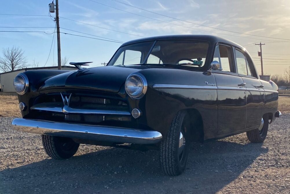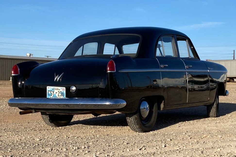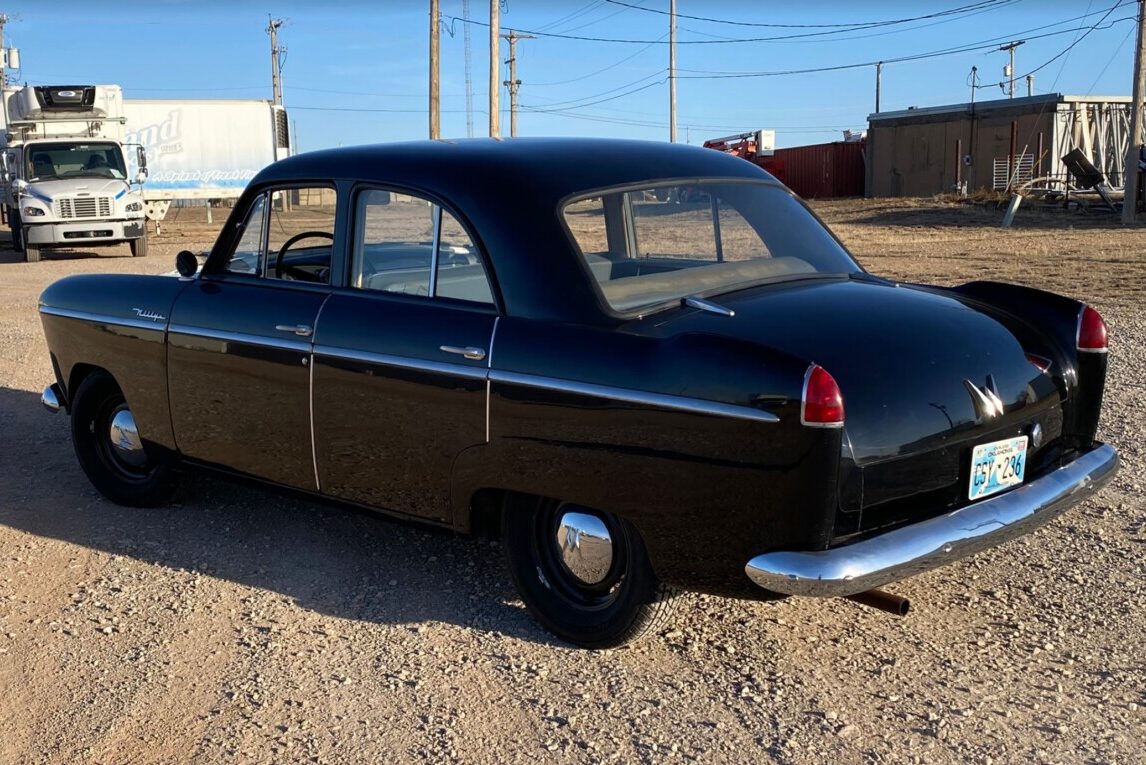 Practicality was the overriding theme of the 1953 Aero’s interior. Luxury appointments like air conditioning weren’t a consideration. However, the inclusion of bench seats and cloth upholstery means the car is a vehicle that could comfortably swallow a family of six. This car’s interior presents well, with no tears or significant wear in the cloth or vinyl. The painted surfaces look crisp and clean, the wheel is spotless, and the gauge cluster features a clear lens and markings. The carpet fit around the driver’s feet is slightly off. Although carpet sets aren’t thick on the ground like with other classics, finding a replacement set would be worth the effort to lift the overall presentation to a higher level. Otherwise, the interior appears to need nothing. This car has been on display in a private museum until recently in the hands of the same family of the dealership where the car was sold new in Stillwater, Oklahoma. A thorough inspection of the brake system would be advisable in the interest of safety.