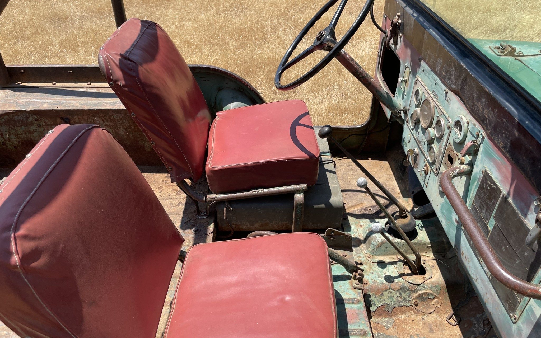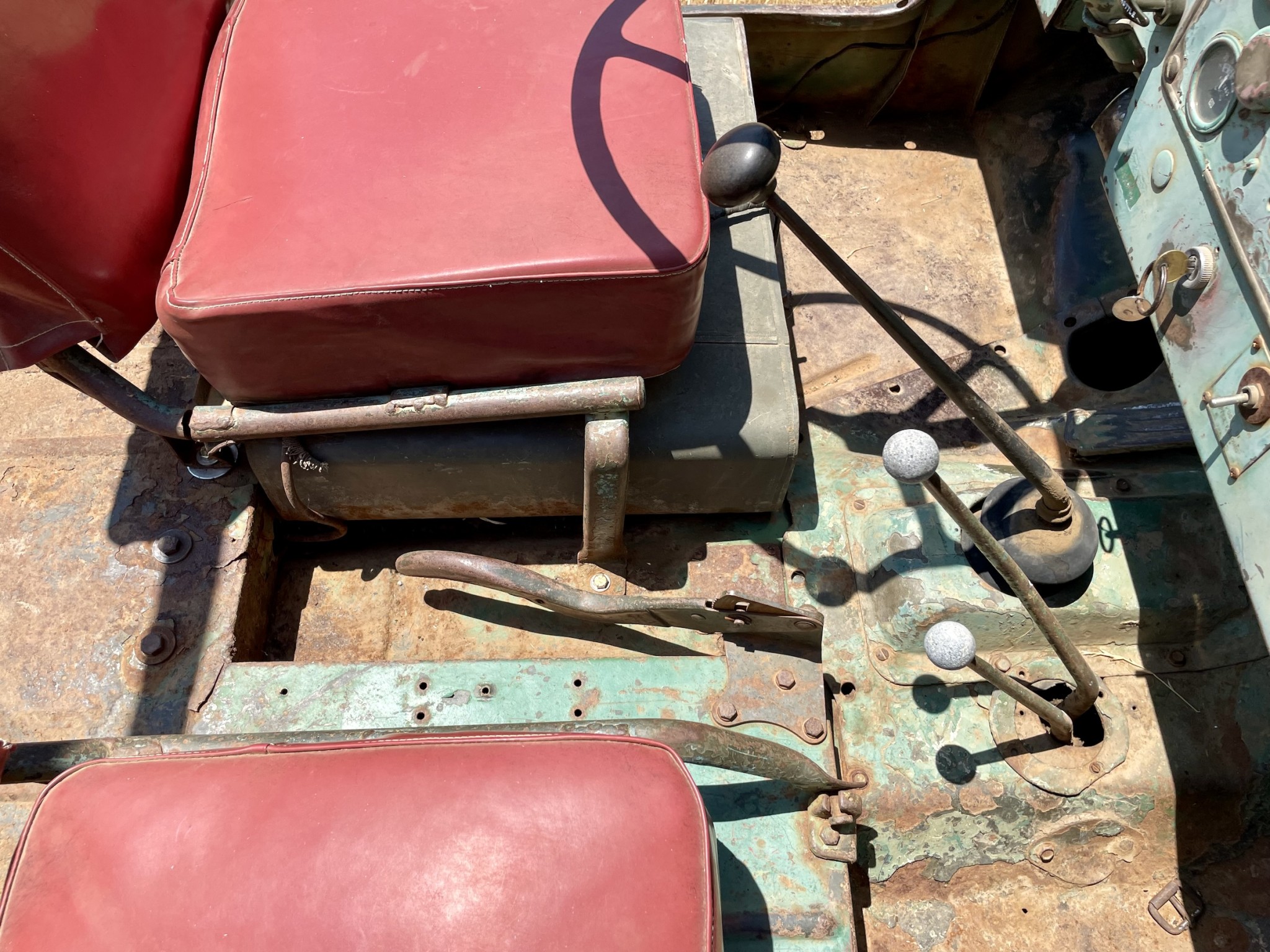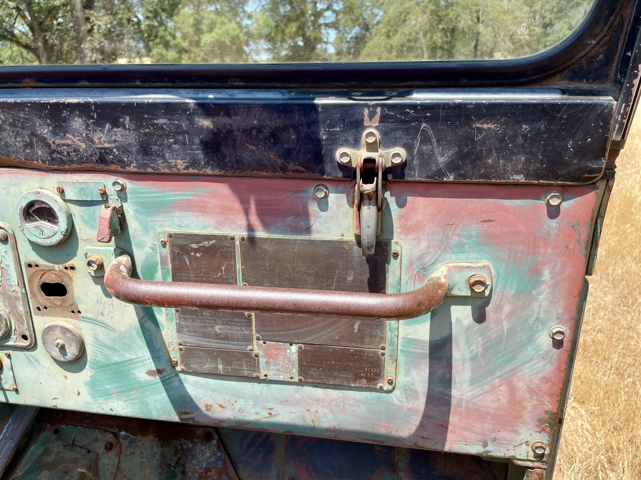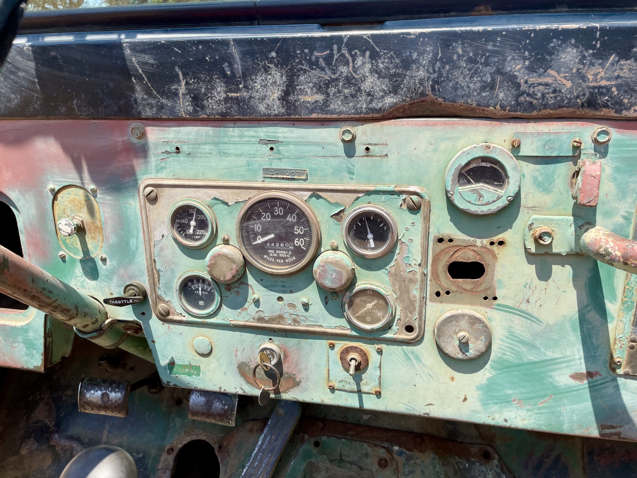 The M38A1 was originally equipped with a 24-volt electrical system, but this one has had a 12-volt conversion with a newer 12-volt battery. The gauges all work, including the odometer and oil pressure gauge. You can see that there is mild surface rust on the floors and interior panels, but nothing close to anything you’d label as “rot.” It’s just a nice, clean California Jeep.