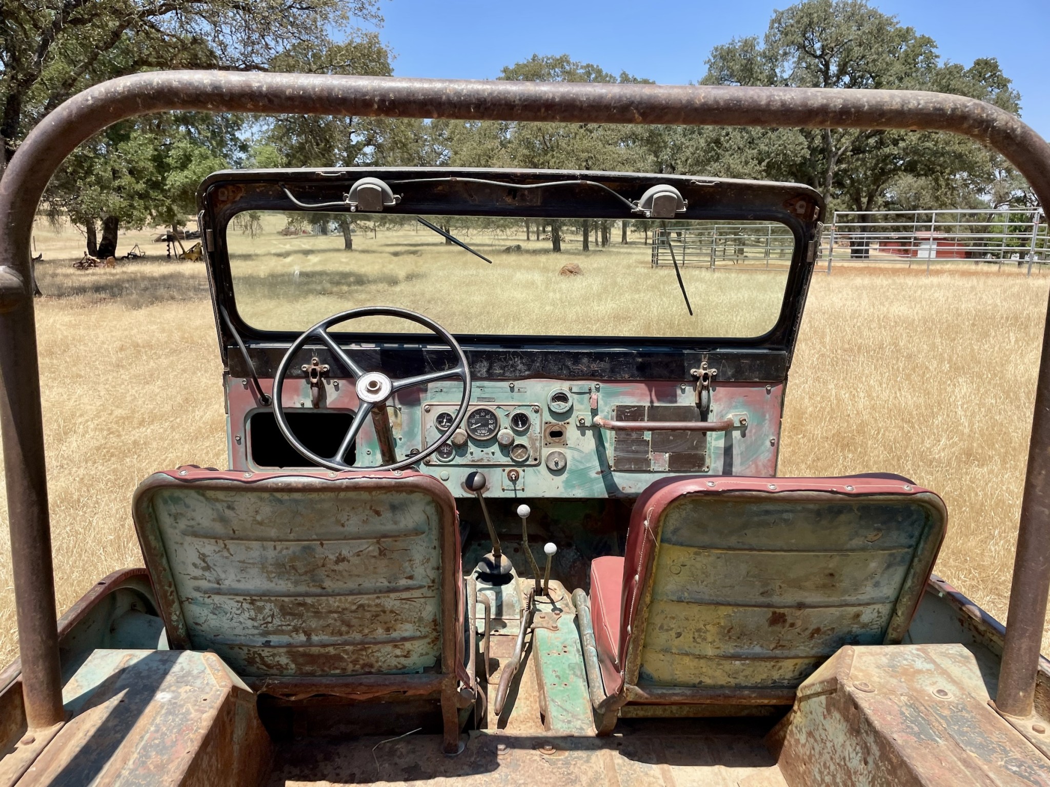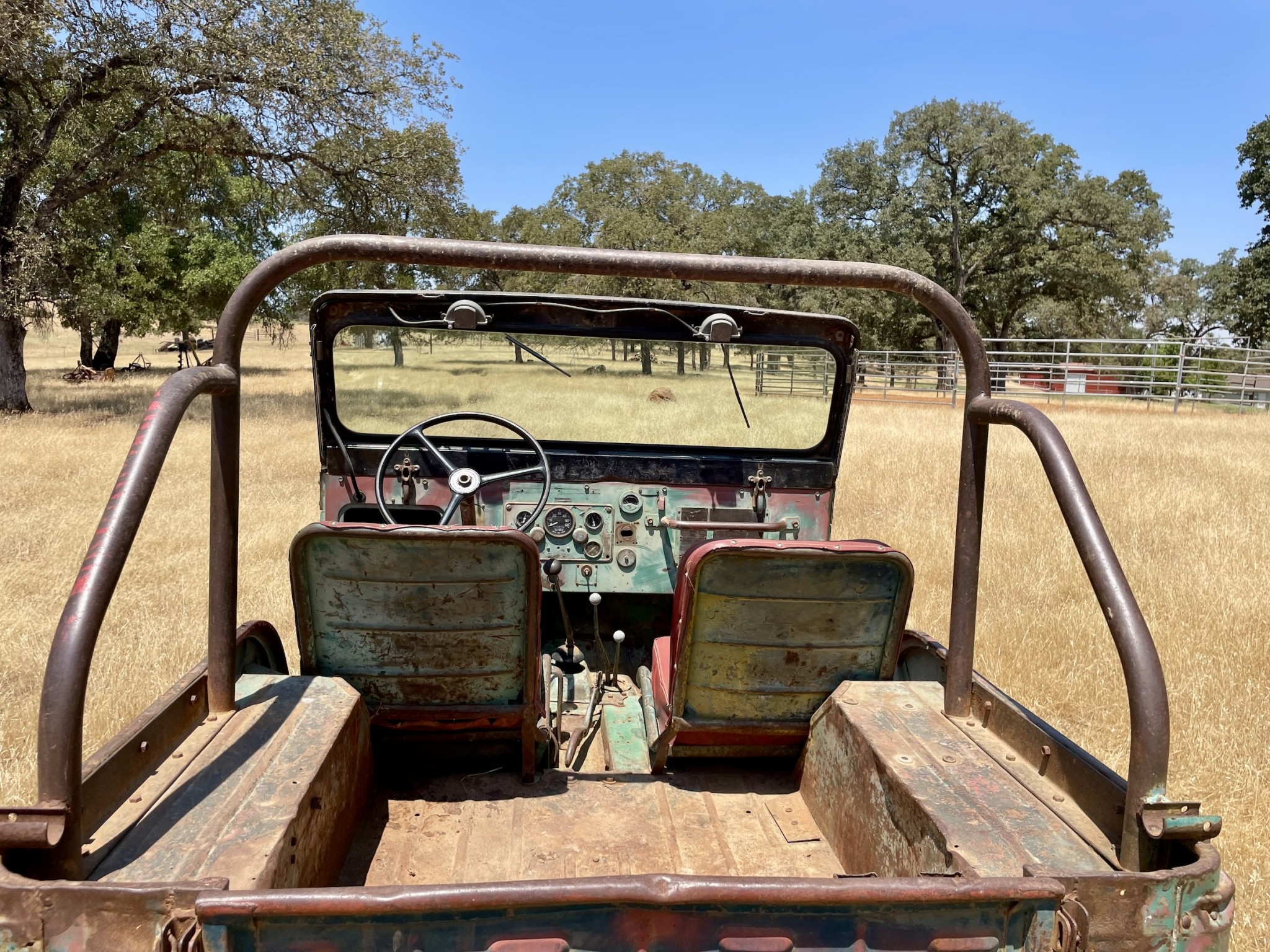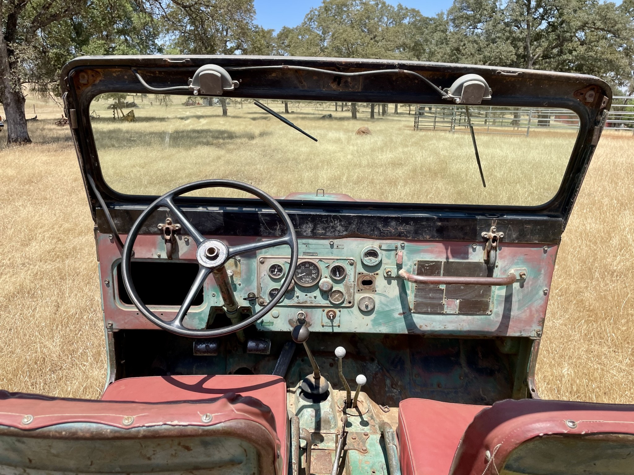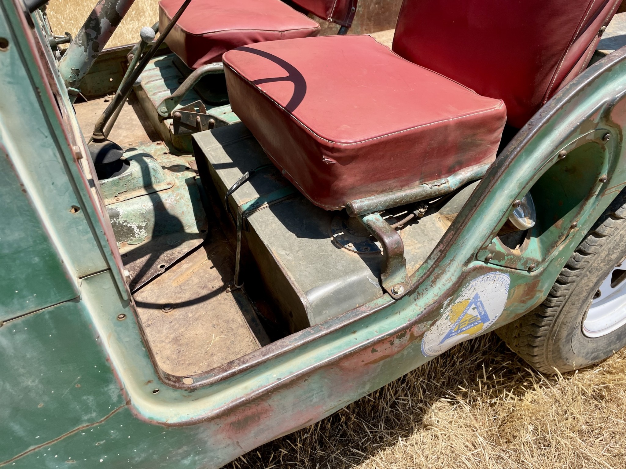 The M38A1 was originally equipped with a 24-volt electrical system, but this one has had a 12-volt conversion with a newer 12-volt battery. The gauges all work, including the odometer and oil pressure gauge. You can see that there is mild surface rust on the floors and interior panels, but nothing close to anything you’d label as “rot.” It’s just a nice, clean California Jeep.