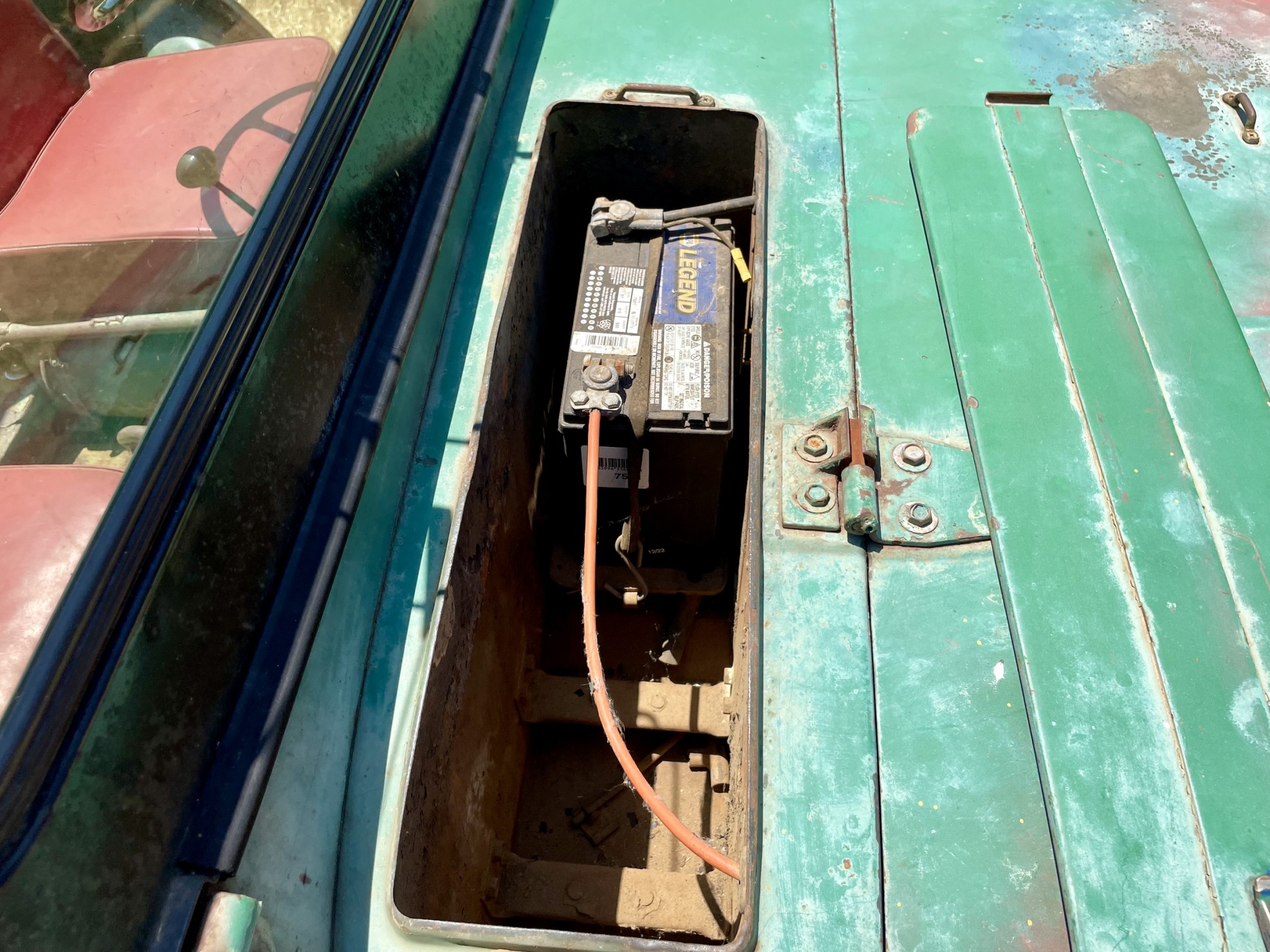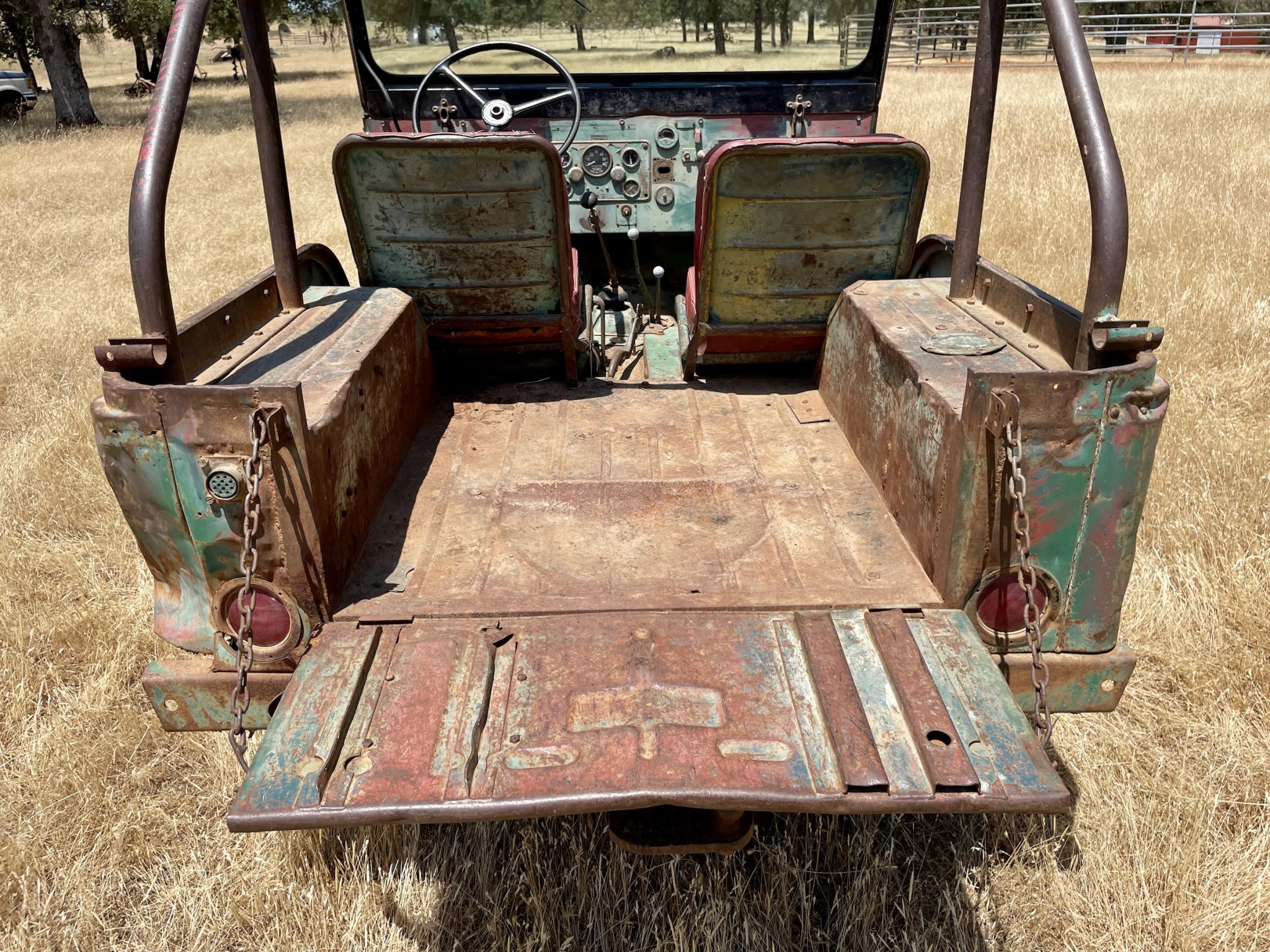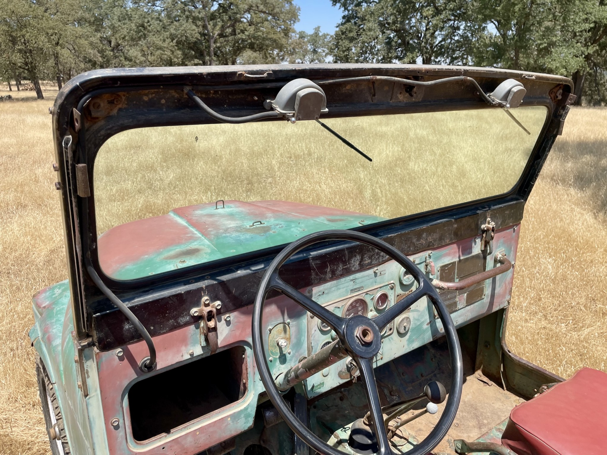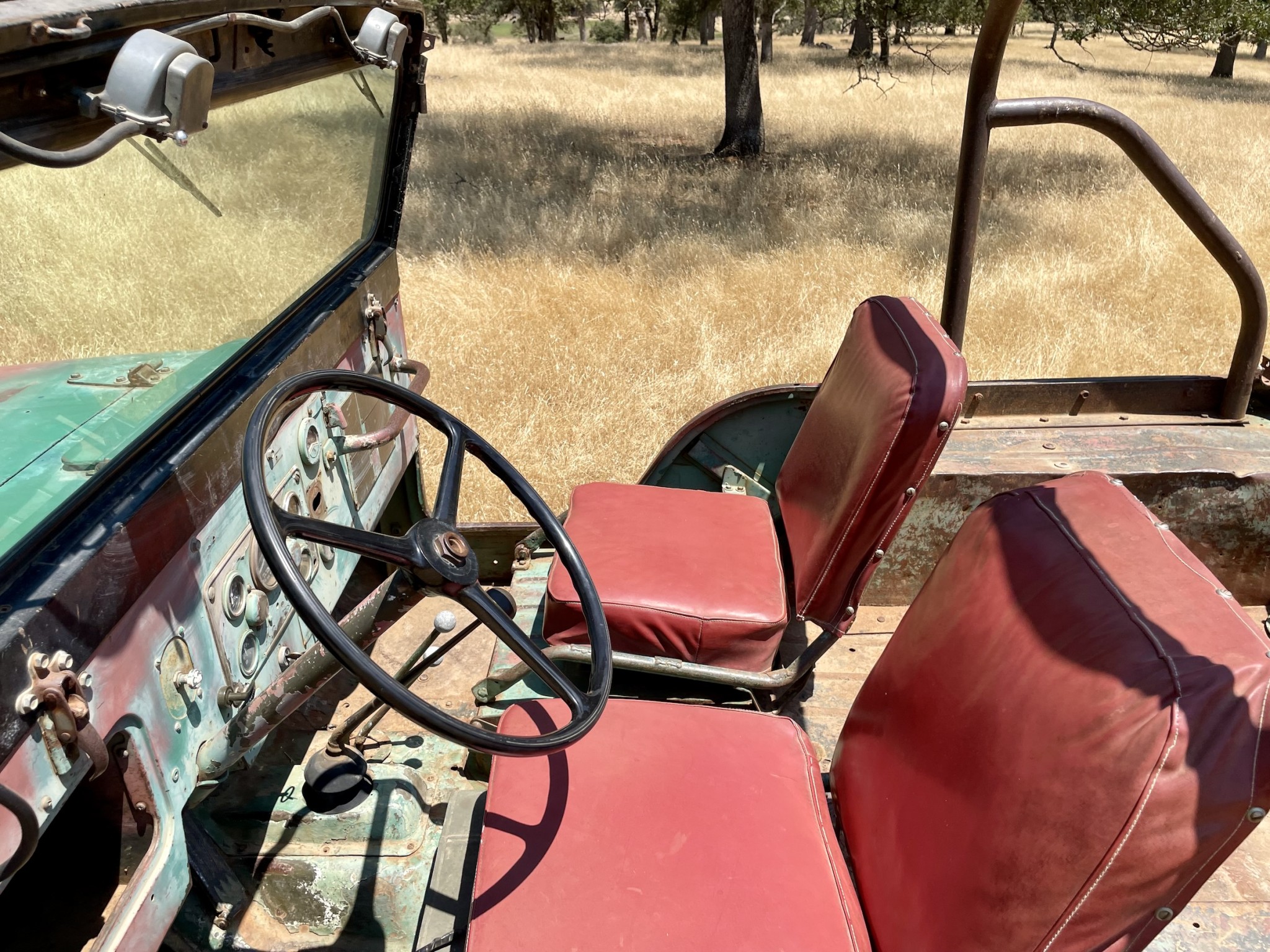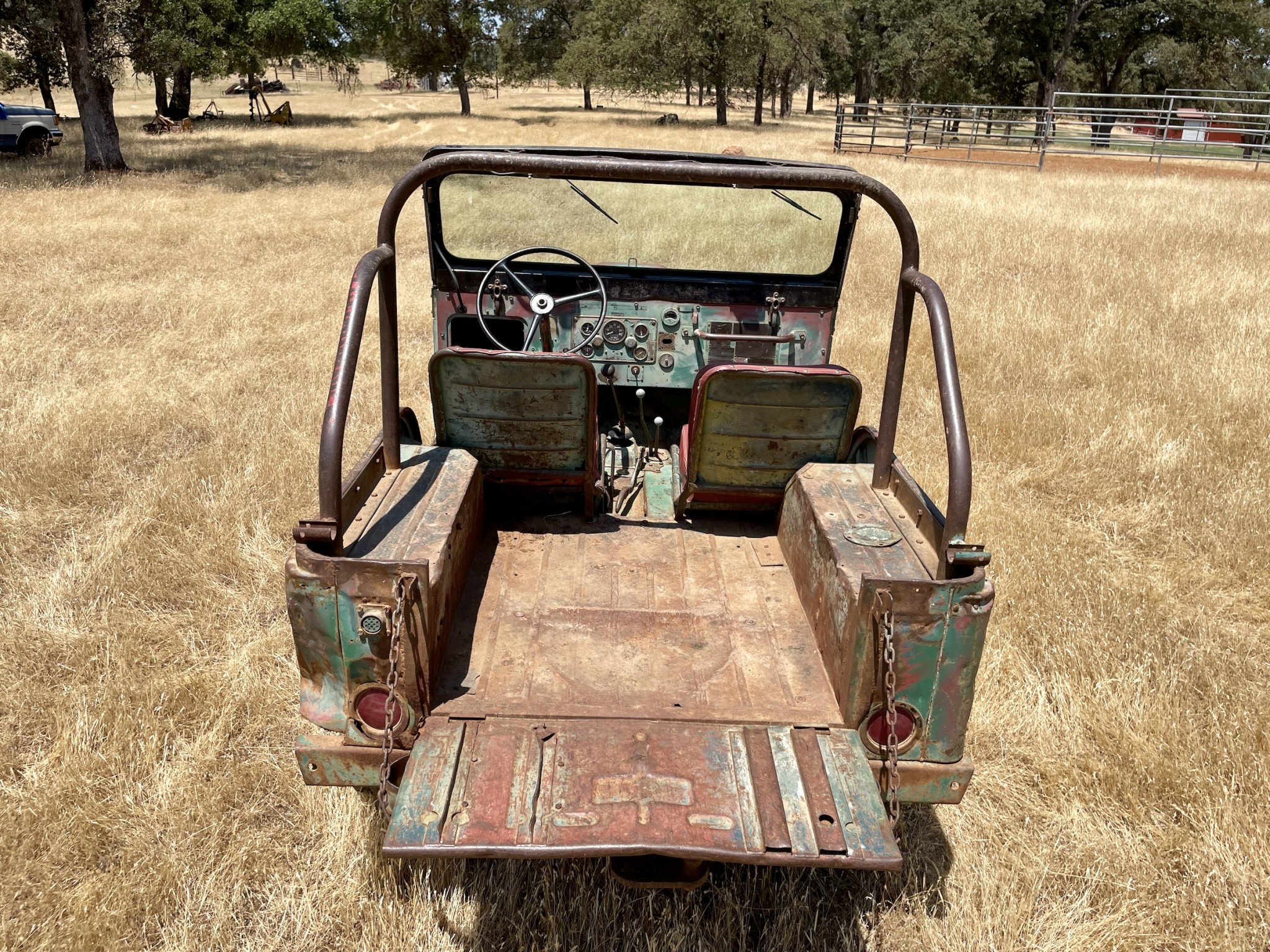 The M38A1 was originally equipped with a 24-volt electrical system, but this one has had a 12-volt conversion with a newer 12-volt battery. The gauges all work, including the odometer and oil pressure gauge. You can see that there is mild surface rust on the floors and interior panels, but nothing close to anything you’d label as “rot.” It’s just a nice, clean California Jeep.