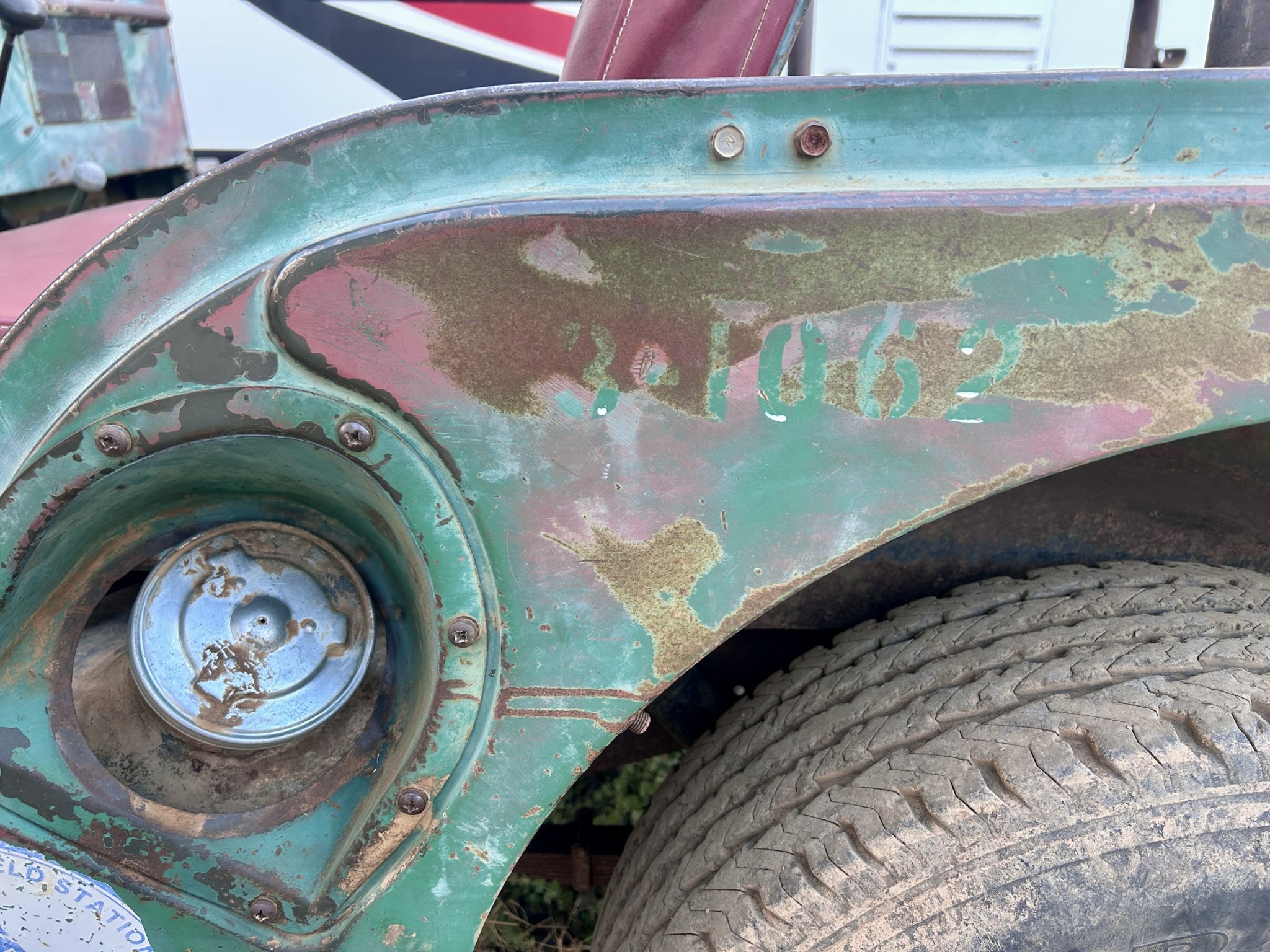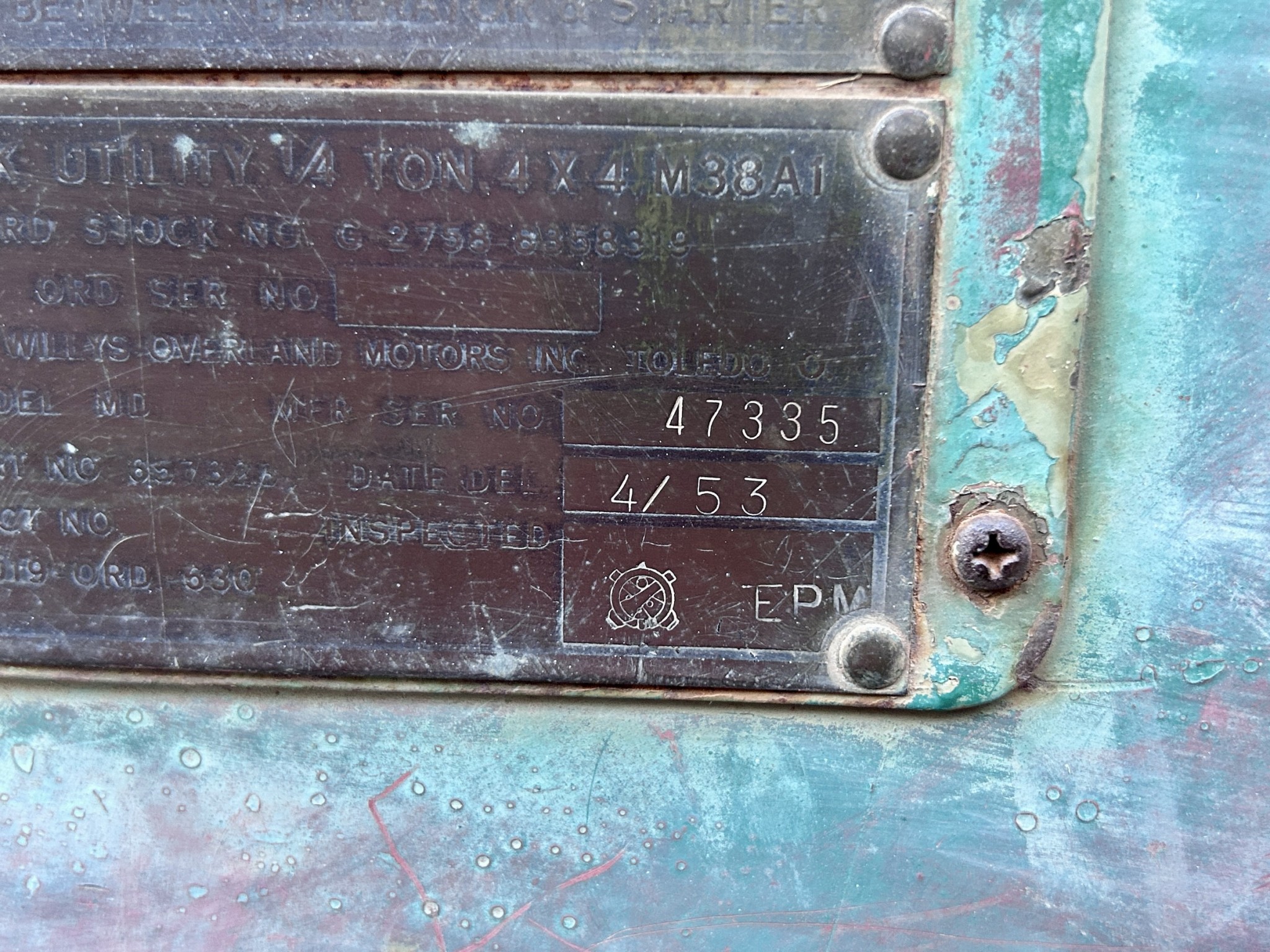 The M38A1 uses the 134-cubic-inch “Hurricane” F-Head four cylinder, which produces 72 horsepower and 114 lb.-ft. of torque; the seller says that it “starts right up” and the Jeep drives well. The transmission is a Warner T-90 three-speed manual, and the M38A1 used a Dana 18 transfer case and Dana front and rear axles. A few running changes took place throughout the 1953 model year, and this example seems to have parts from both “generations,” such as the hinged front grille and radiator mount from the first generation and the battery box and fenders of the second. If there’s one thing I’ve learned in researching Jeeps, however, it’s that anything was possible.