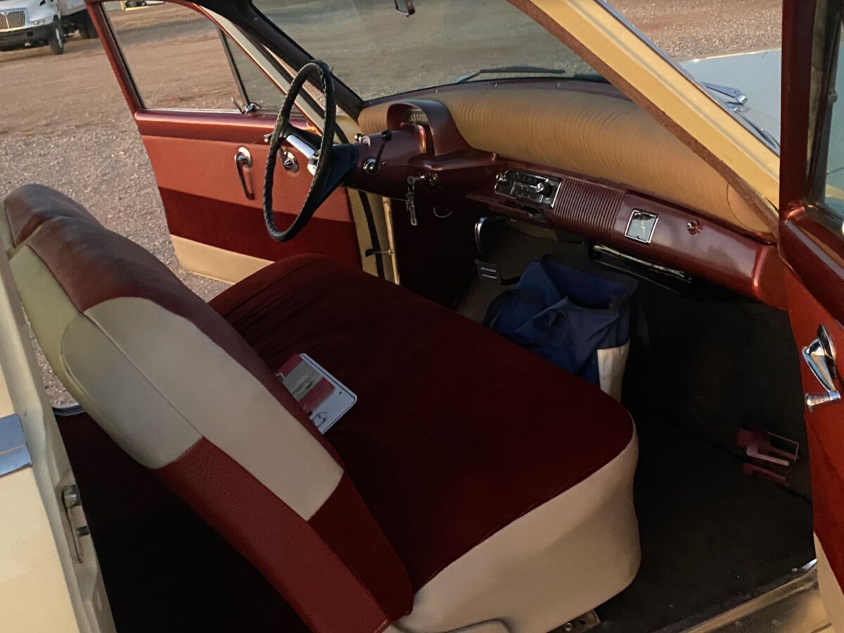 The seats aren’t at all like the original, and the door panels are fabricated. You might be able to Google 54 Kaiser Manhattan and see pictures of the interior, or try the KFOC club website for pictures.