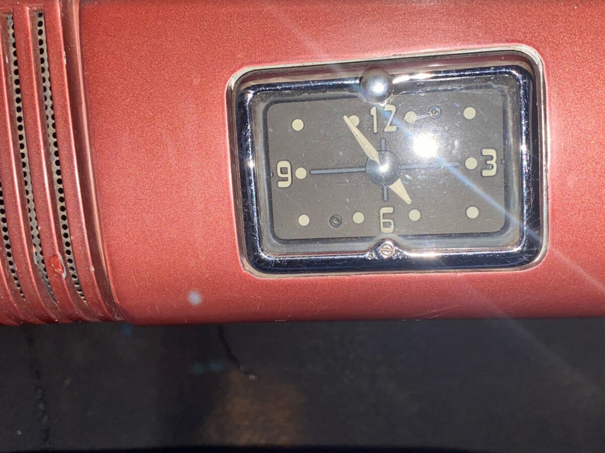If the Kaiser’s exterior makes a positive impression, its interior continues that theme. Trimmed in rich red cloth and contrasting Ivory vinyl, it reinforces the Manhattan’s luxury leanings. The passenger side armrest is missing, and the photos suggest there may be a split on the driver’s side of the front seat. Otherwise, there are no issues. The remaining upholstered surfaces, including the dash pad, are spotless. The gauges are clear, the painted surfaces shine nicely, and there are no aftermarket additions. The factory pushbutton radio occupies its rightful spot, as does the clock.
