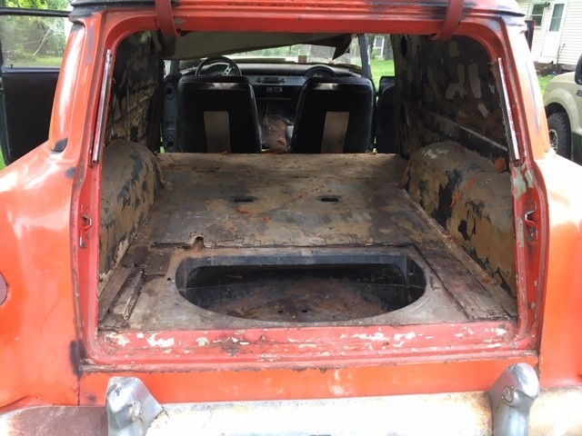 I’d like to look at this in real life and see how bad the rust really is!!! The rust around the rain gutter on the top of the car is concerning cause that’s not a reproduction piece!! Media blast might be creating more holes!! I’m not driving to Virginia this weekend so I think I’ll pass on this one!!