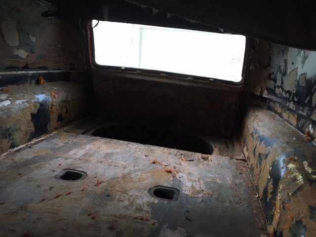 The interior of these utility wagons was quite spartan from the factory, but it appears some additional weight reduction may have been performed to this. This does give us a good look at the condition of the floors and structure. While there is definitely some rust, the floors don’t look too bad. I would assume the large hole in the transmission tunnel is for a floor-mounted shifter and that appears to be the only spot that gives us a good view of the ground. And thankfully all the major components appear to be present. Being so spartan to begin with, means restoring the interior shouldn’t be overly difficult.