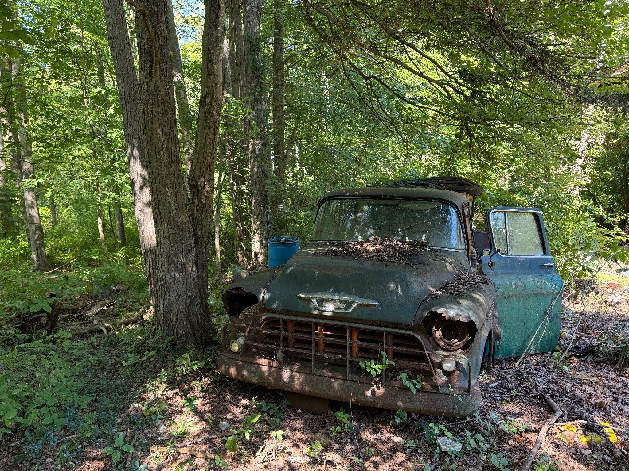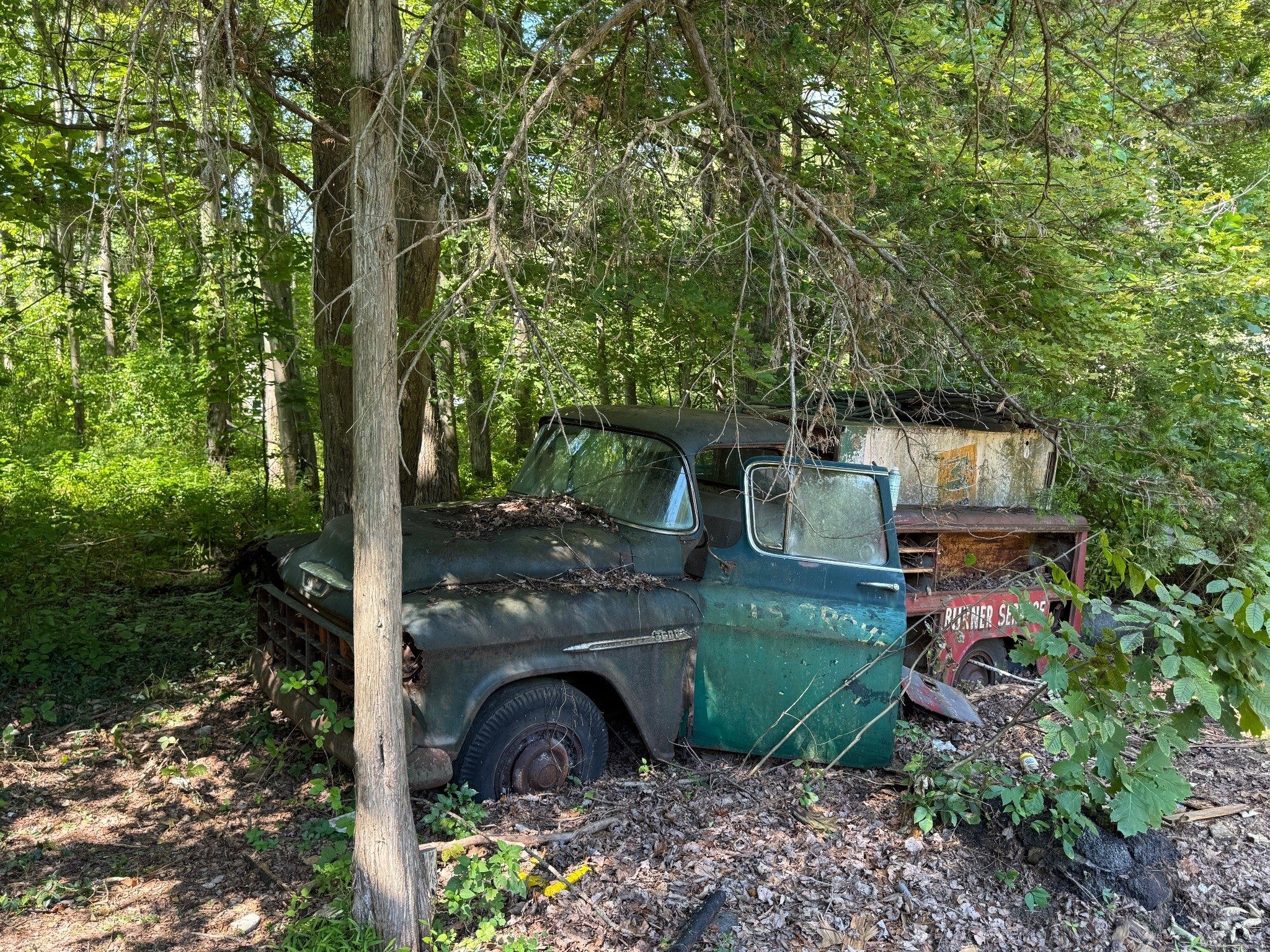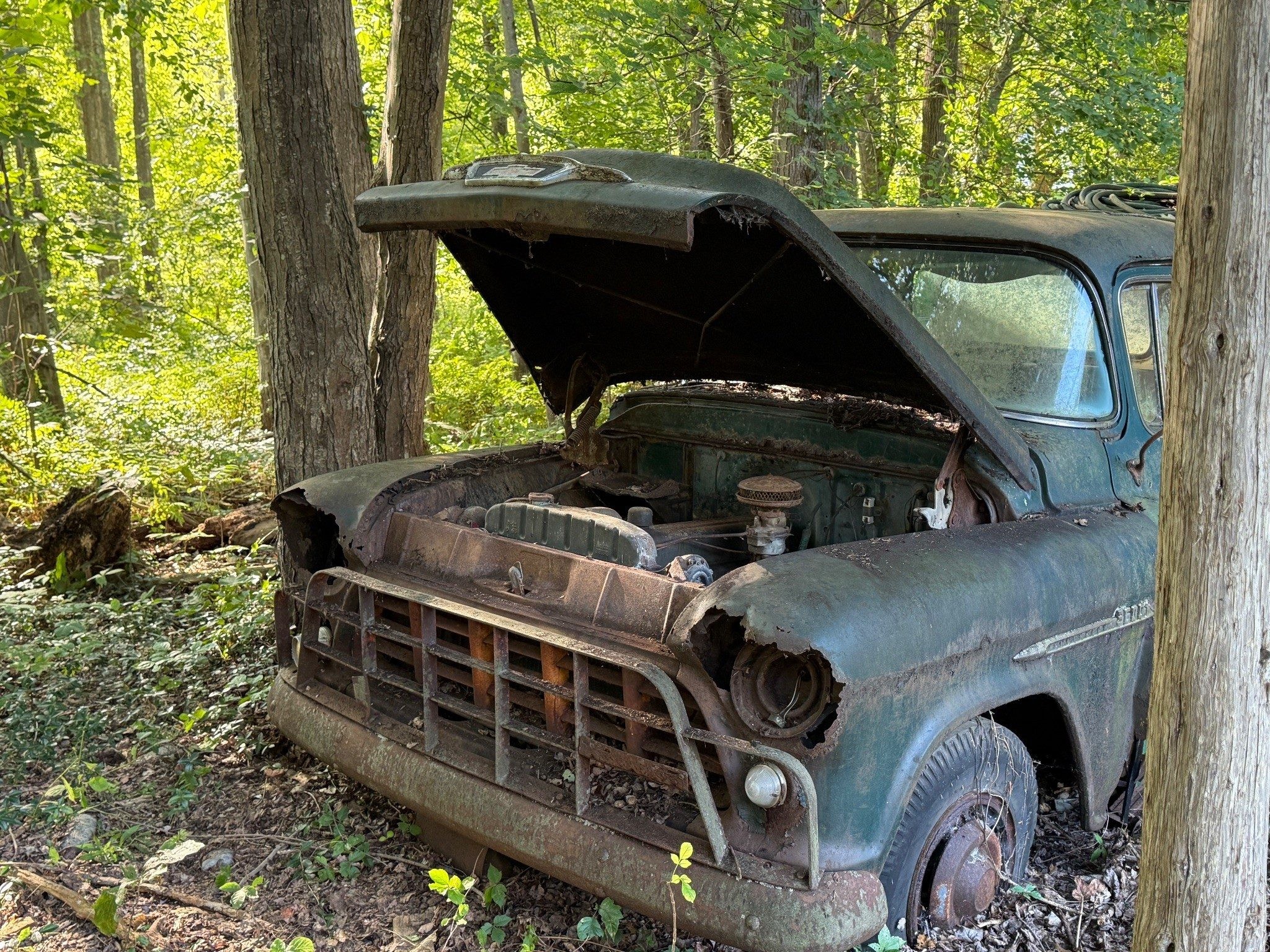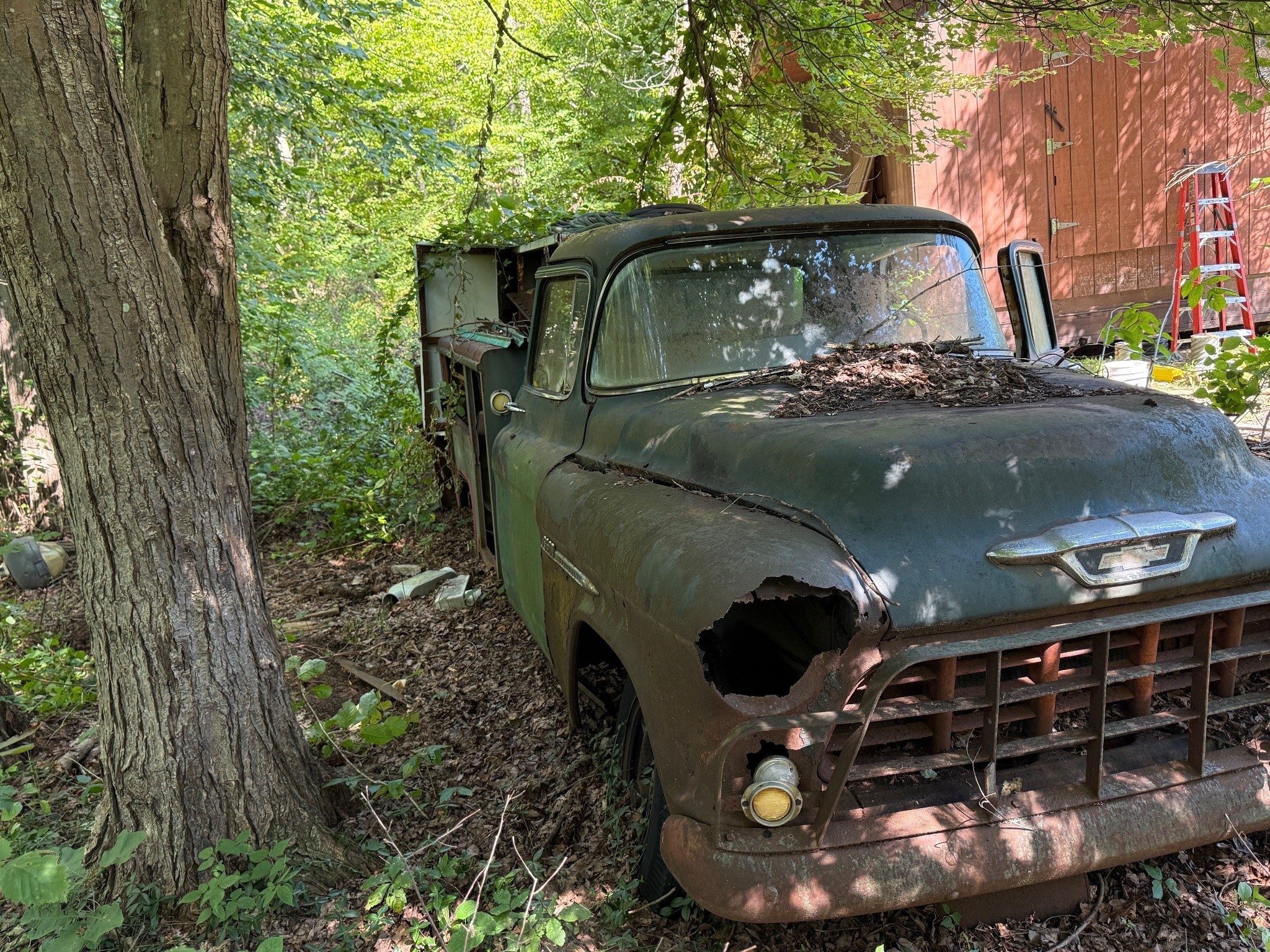 Sitting in the woods for an unknown number of years, or decades, the seller refers to this truck as an Apache, but those didn’t come out until 1958, so this is a regular Task Force. Buyers could opt for power steering for the first time on a Chevrolet pickup during this series, and it would sure come in handy on a rugged 3/4-ton work truck. The seller says the buyer will need to take this one as a unit, including the “refrigeration cap” in the bed. I’m not sure if that’s an insert or what that refers to; there aren’t any photos showing the rear of the truck, unfortunately.