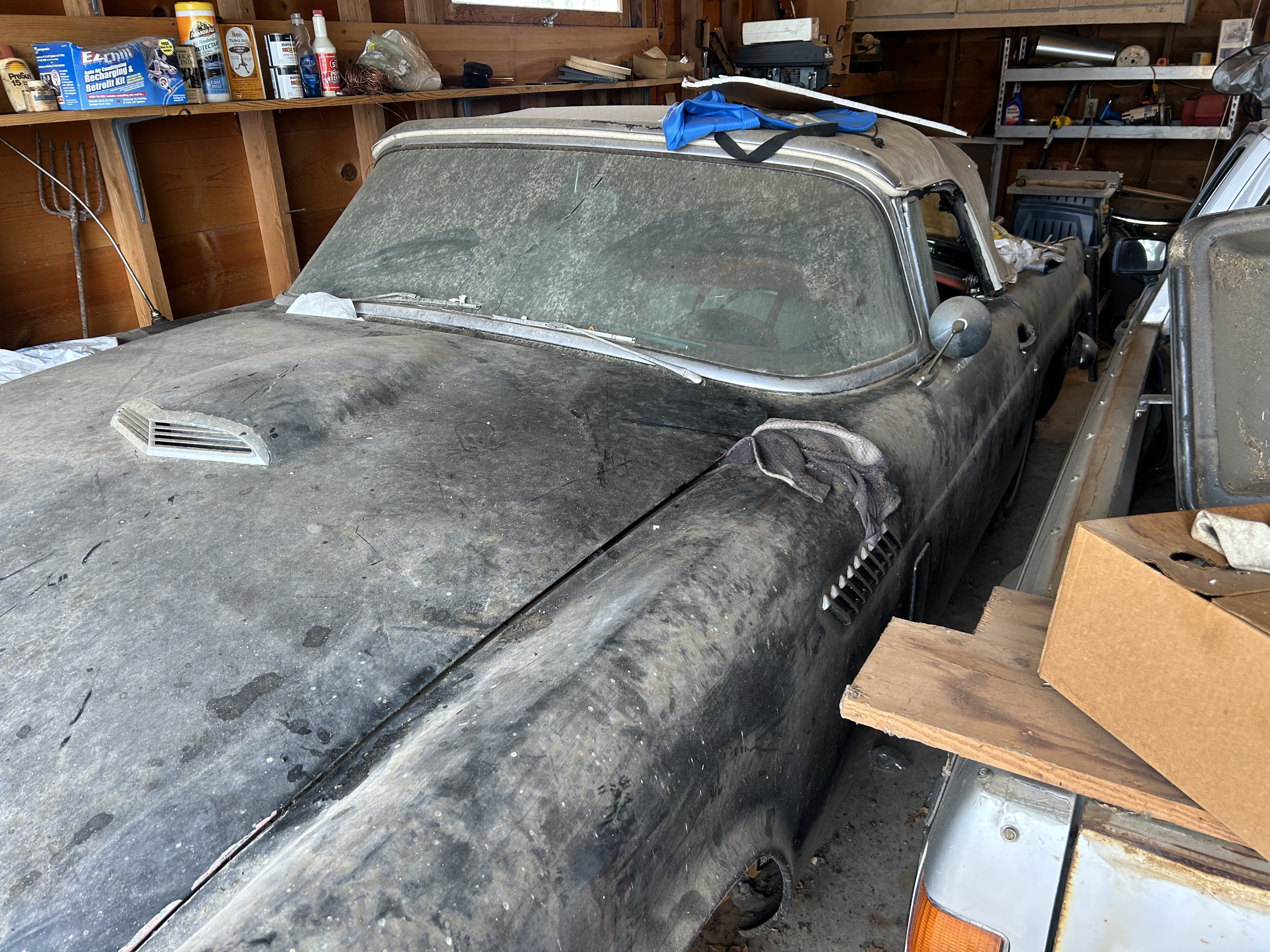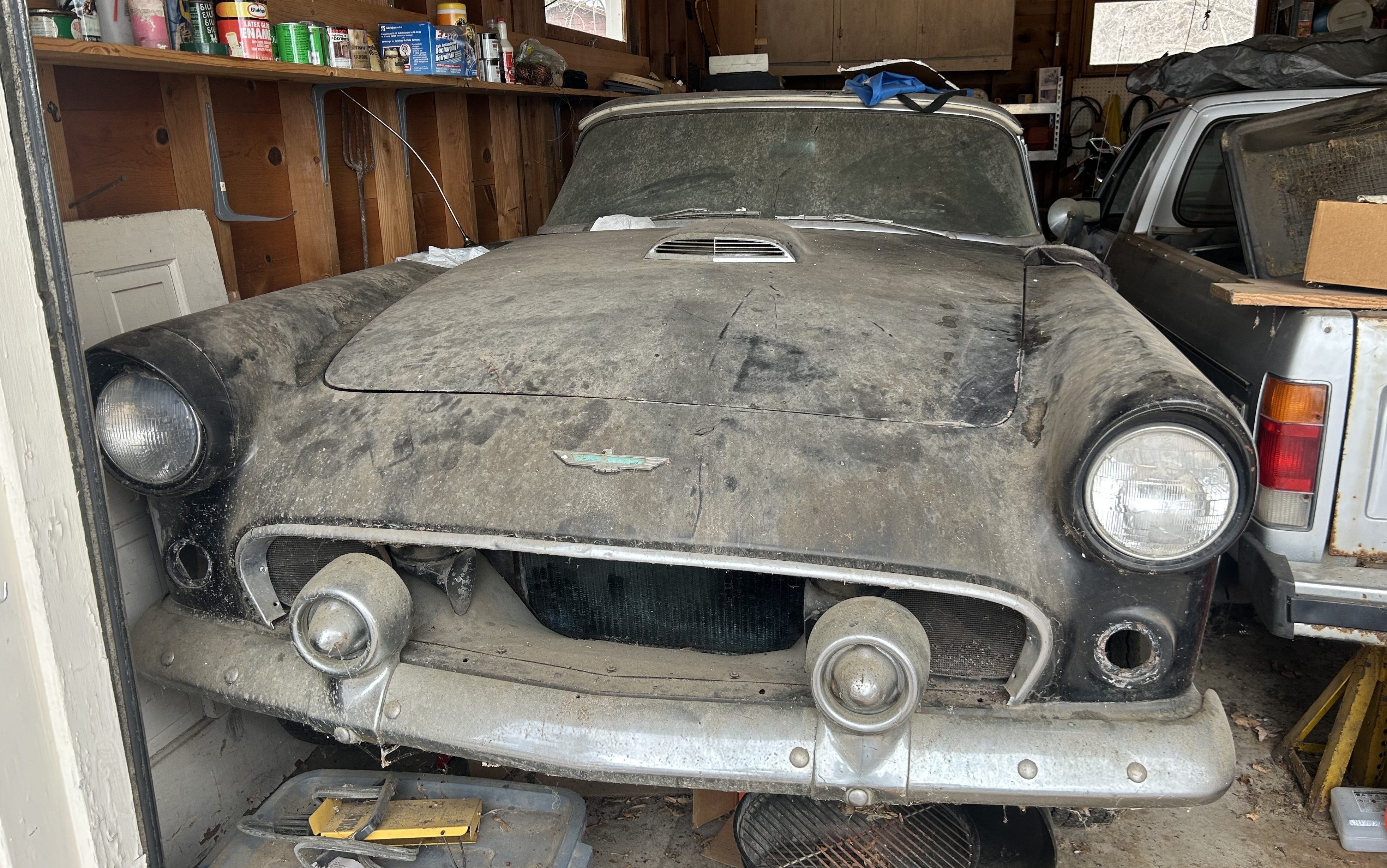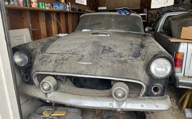 Hiding in this garage is a promising project candidate. This 1956 Ford Thunderbird has been in dry storage since 1973, which has helped protect it from the elements. The car is essentially complete, and the rebuilt V8 under the hood is a genuine bonus. If you crave an affordable 1950’s Ford classic project, this gem deserves a close look. The owner feels it deserves a new home with an enthusiast who can give it the TLC it needs to return the car to its former glory. Therefore, he has listed the T-Bird exclusively with us at Barn Finds Auctions.
