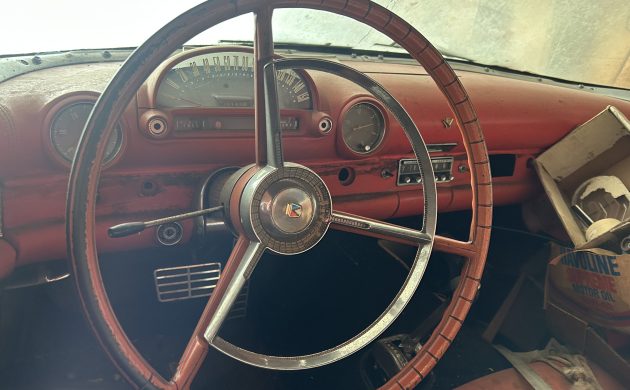 This Thunderbird’s interior is missing a few small items, but the critical components are intact. It appears to be trimmed in Code XB Fiesta and White, which would have looked stunning against the Raven Black paint in 1956. There is visible wheel wear, but the upholstered surfaces appear to be in good condition. I believe that a deep clean might produce surprising results, meaning that it may cost more time than money to achieve a driver-grade result in a home workshop.
