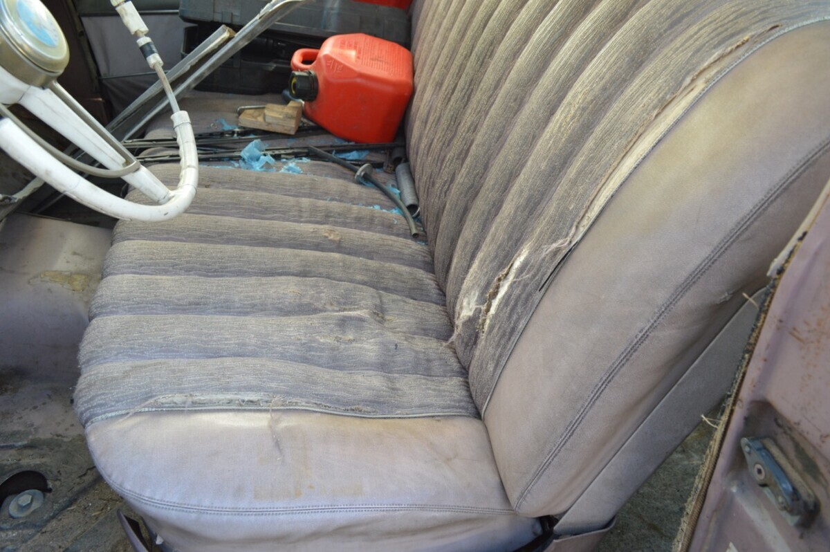 This President’s interior needs some love, but as with the exterior, it is essentially complete. The painted surfaces wear the same Doeskin paint we find on the roof, and I believe it might present well with a careful polish. The upholstery is tired, and because trim kits for these classics aren’t thick on the ground, purchasing appropriate material and handing it to a qualified upholsterer might be the best strategy. Alternatively, Studebaker Owner’s Clubs are scattered across the country, and their members seem willing to help fellow “Stude” owners with their projects. Joining one could be wise because it offers more eyes to locate some of the more obscure parts. Items like the wheel require replacement, but desirable components like the factory pushbutton AM radio and clock are intact.