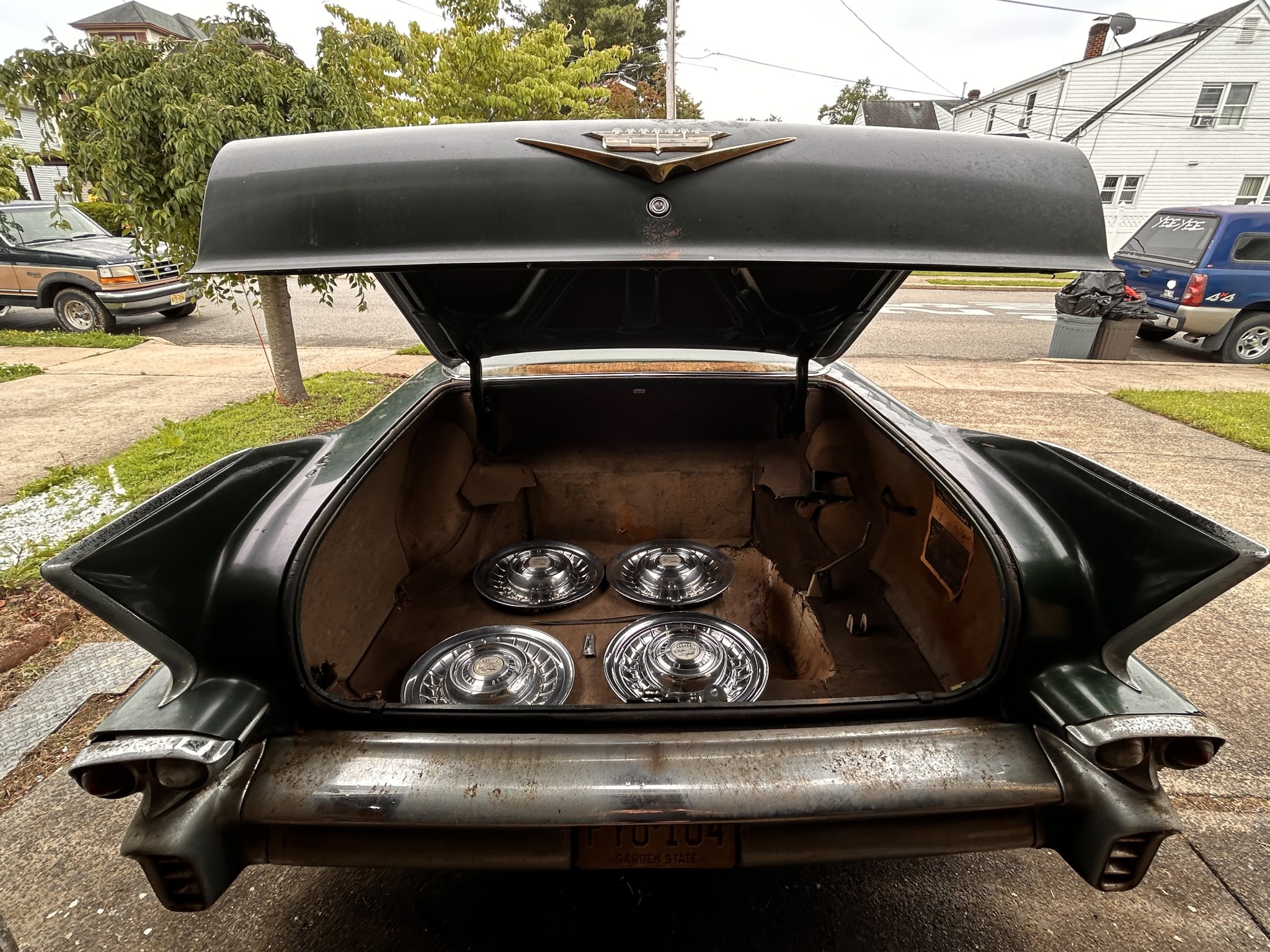 The Series 62 Sedan wasn’t exactly small, coming in at 216.8 inches long, but Cadillac felt there was a need for one with an even larger trunk. At 225.3 inches long, the extended trunk should offer more than enough trunk space to haul everyone’s stuff for a cross-country family vacation. Here is a good look at the massive trunk, as well as the original hup caps.