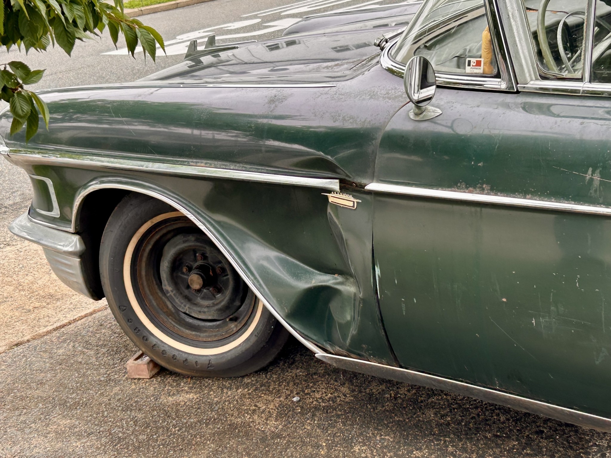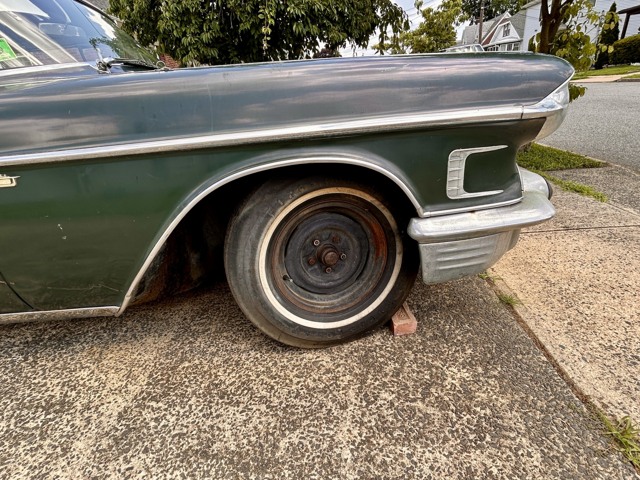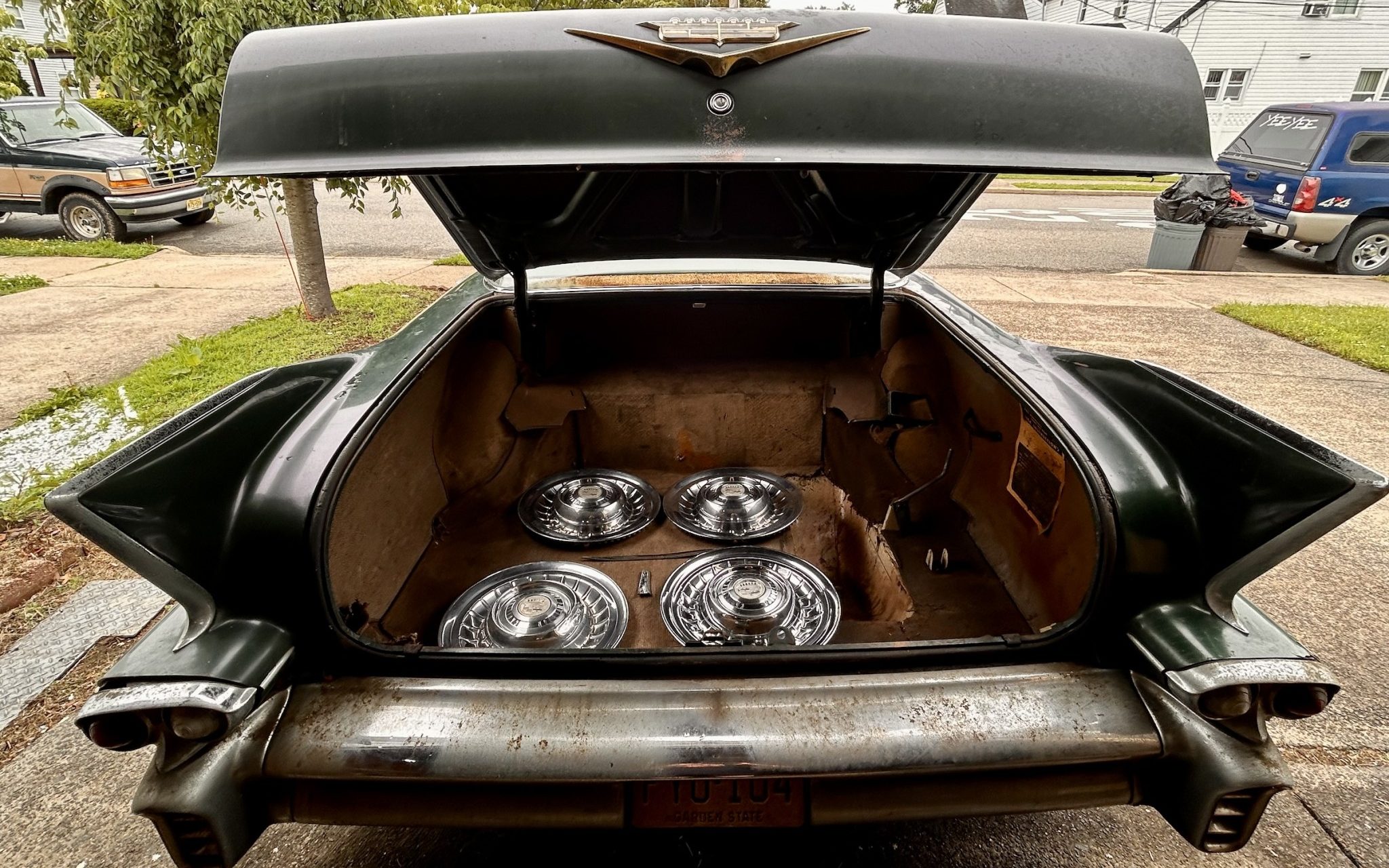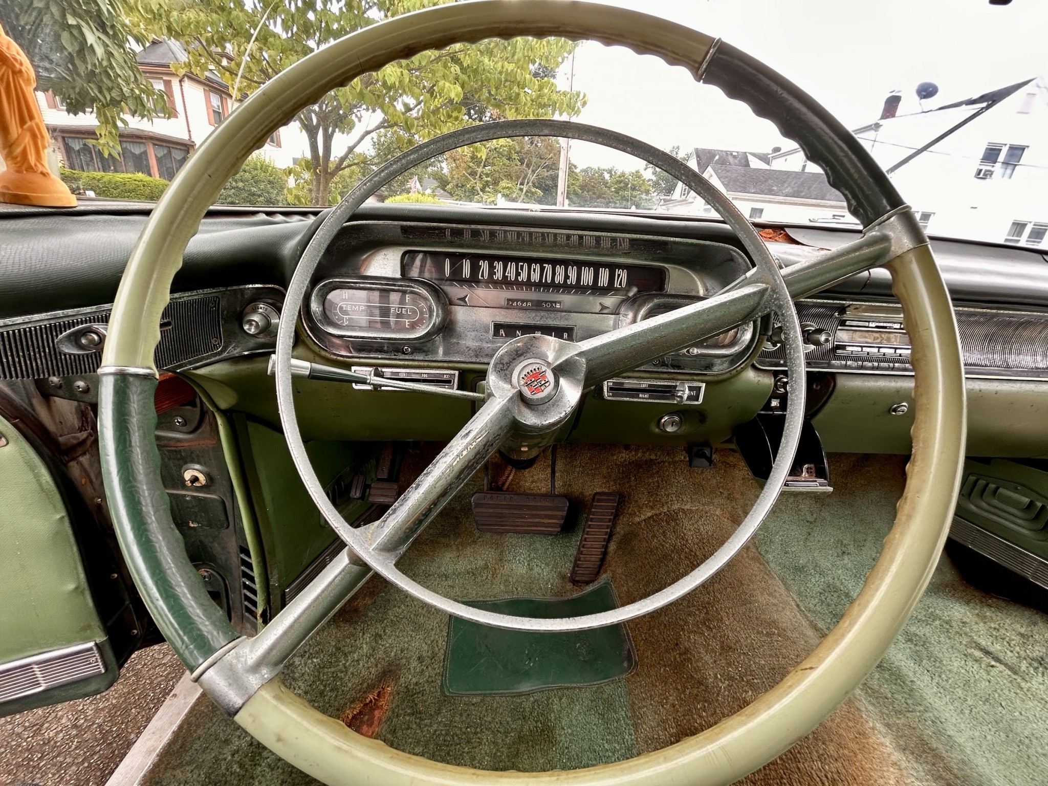 This example was purchased new in 1958 and has remained in the family. According to the seller, it has been garage-kept its entire life and was used mainly on the weekends and long road trips. In 1981, Grandma had to settle for a smaller car that was easier to navigate than this marvel of American Engineering. It has been in the garage and not started since the 1980s.