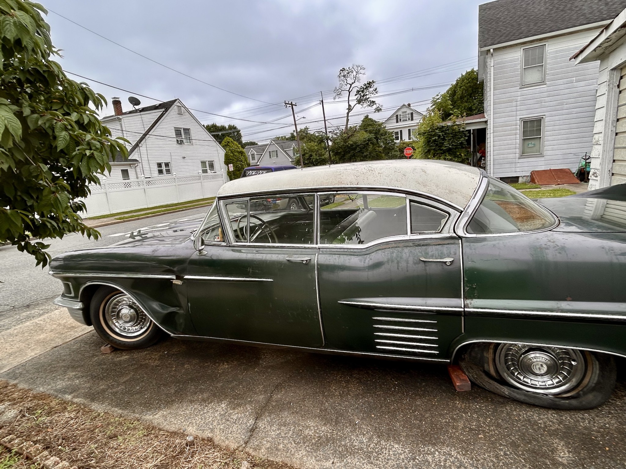 In 1958 this said you had it made, ‘Merica at its finest. But in 1 year would be outdated when the newer and bigger 59’s came out. A series 62 with no A/C and no power windows, can’t tell if it has a power seat or not. The extended trunk does make the car look better, in my opinion. The standard trunks look kind of stubby. But in ’62 and ’63 you could get a shorter trunk as an option, the Park Avenue. I guess ’64 and up were one size fits all?