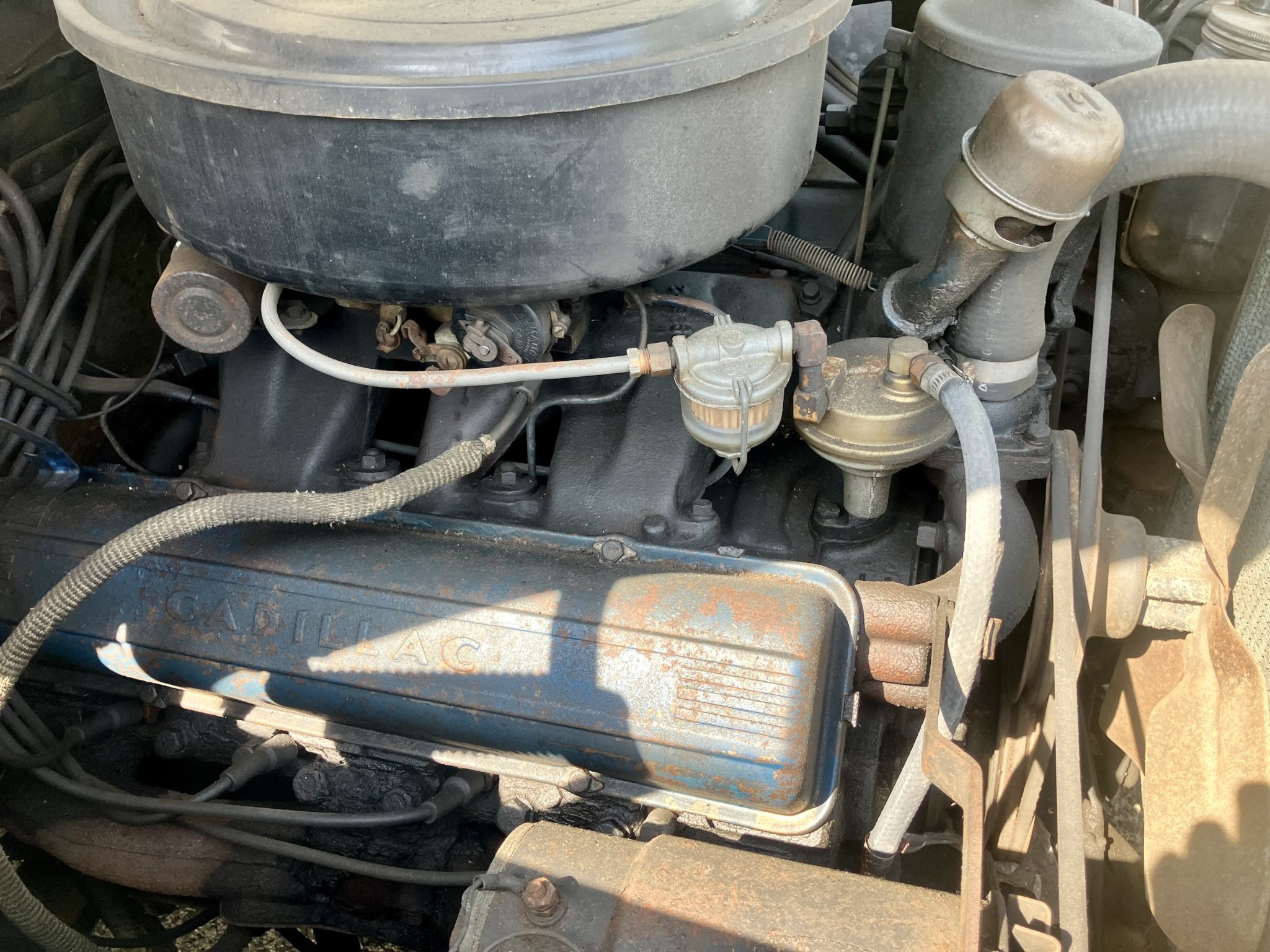 Moving all this luxury around requires a big V8. This one is equipped with the single 4-barrel 365 cui OHV V8, which was rated at 310 horsepower. Cadillac’s overhead valve V8 Engines are renowned for their durability and smooth operation. Since it hasn’t run in 40 years, though, it’s going to need to be gone through. The engine bay appears to be complete and original.
