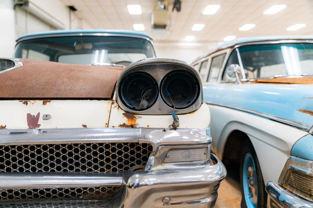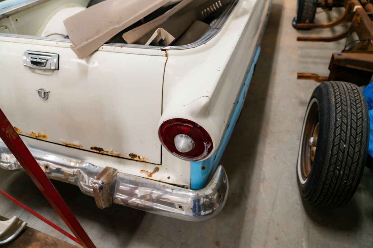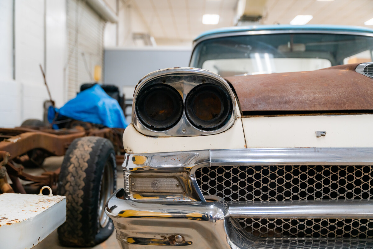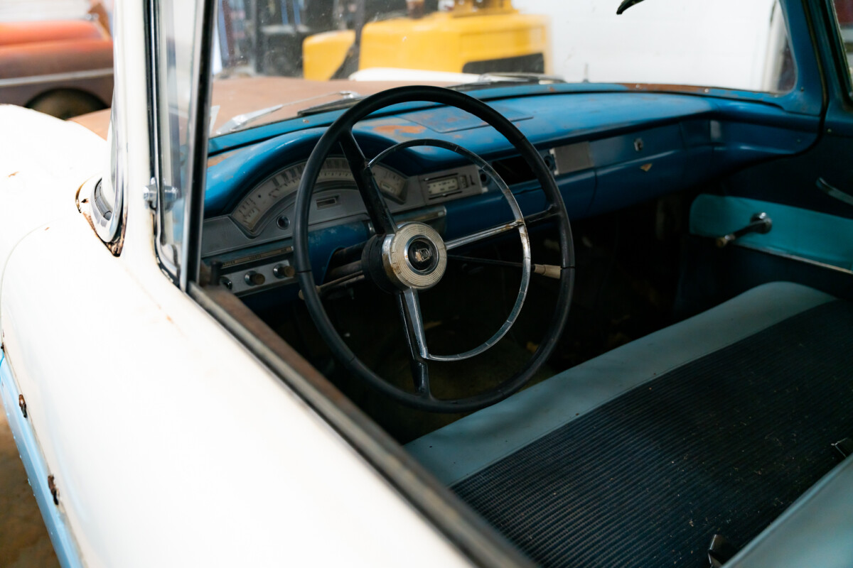 The owner is a great fan of the styling Ford employed in its 1958 model range, which explains why it is heavily represented in this collection. The Ranchero rolled off the line dressed in Azure Blue and Colonial White and retains those shades. It looks pretty tired, and the winning bidder faces a total restoration to reclaim this classic’s lost youth. The owner is candid about the vehicle’s condition, indicating it has significant rust issues. They are visible in areas like the headlamp eyebrows, although plenty underneath requires attention. However, the seller has much of the needed metal to restore it, but if you end up missing something or want to purchase freshly stamped pieces, replacement steel is plentiful and highly affordable. The upper front fender sections sell for around $170 each, while a complete front floorplan will lighten the buyer’s wallet by $200. A frame-off approach would seem the best option, allowing the buyer to complete their work to a high standard. Most trim pieces are in good order and would respond positively to some work with a high-quality polish. The glass looks excellent, with no cracks or other problems.