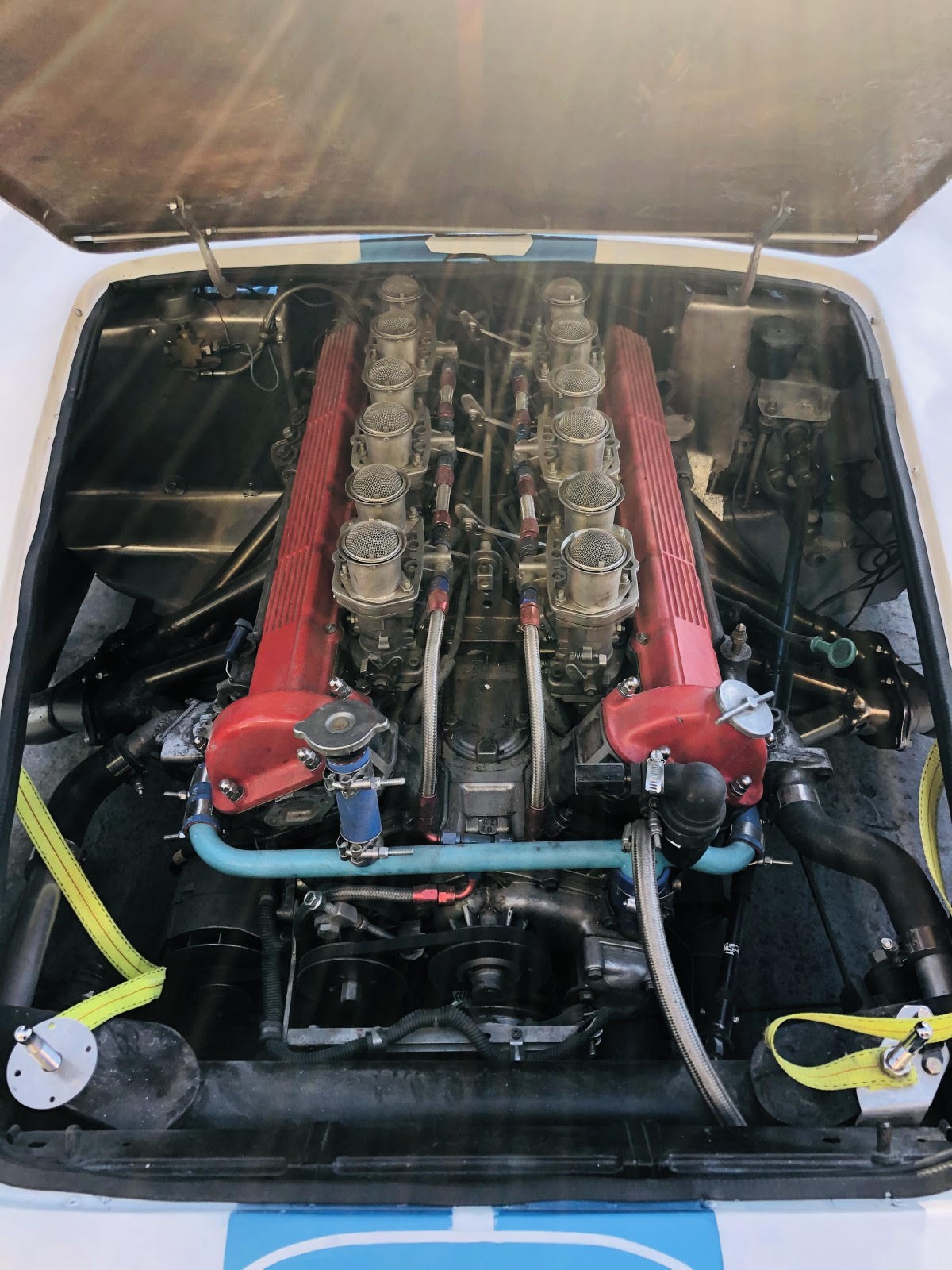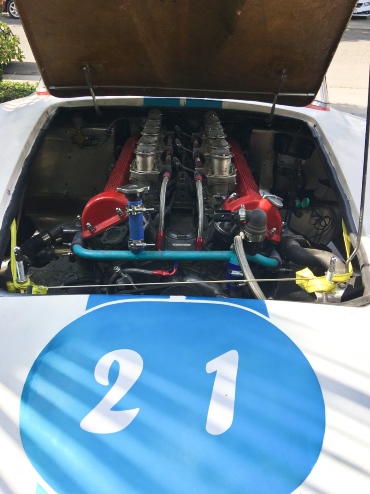 Okay, gotta say V12’s sound great to me. All Lucus Prince of Darkness removed from this motor! So it actually works. It’s an HE, 11:1 compression I believe. Idle’s for a few minutes before it needs a little throttle tap. Very sweet motor. Weighs less than the iron block Corvette motor, and is 326 c.i. with overhead cams. Runs very well. I’ll run it against any V8 Devin, except maybe David Zavetsky’s.