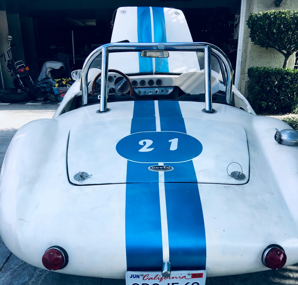 The V12 seems flat-out bananas considering the low curb weight, but as the seller points out, a body like this pretty much deserves an engine this beautiful. The Devin is said to be a weekend driver, but the description makes it sound like it’s built for vintage track days. The wheels are genuine Halibrands mounted on street slicks, and the roll bar is obviously there to keep you in one piece if things get hairy – but hopefully, the four-wheel, independent suspension will ensure a certain level of calm is maintained.