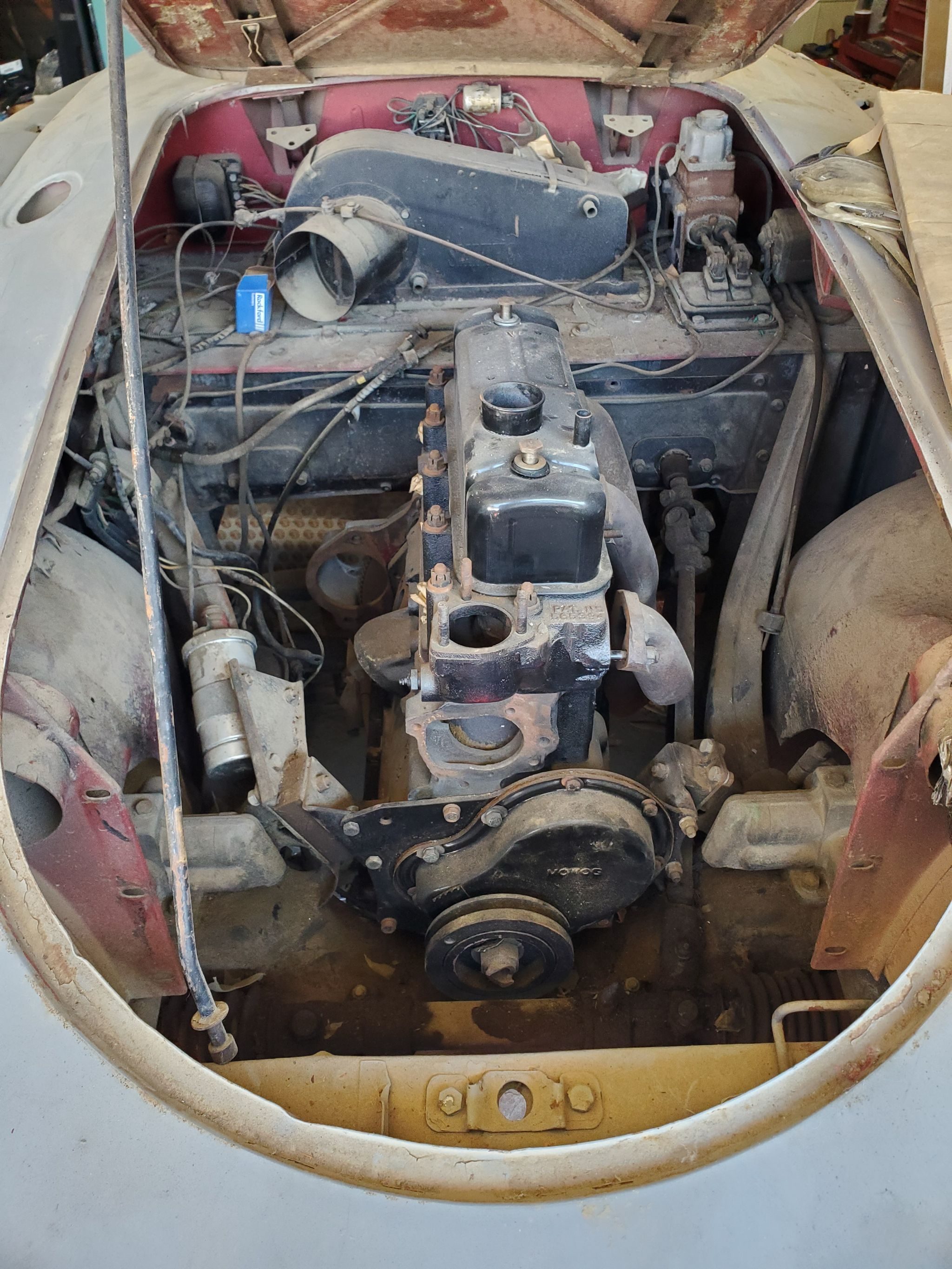 The car is described as a project that’s already in the process of being rebuilt. It has reportedly been sitting on blocks for more than 30 years, which suggests it has not been exposed to road conditions or long-term outdoor storage during that time. Notably, the seller states there is no visible rust, a claim that immediately makes this MGA stand out among typical restoration candidates. While any serious buyer will want to inspect thoroughly, the absence of obvious rust is a strong starting point for a car of this age.