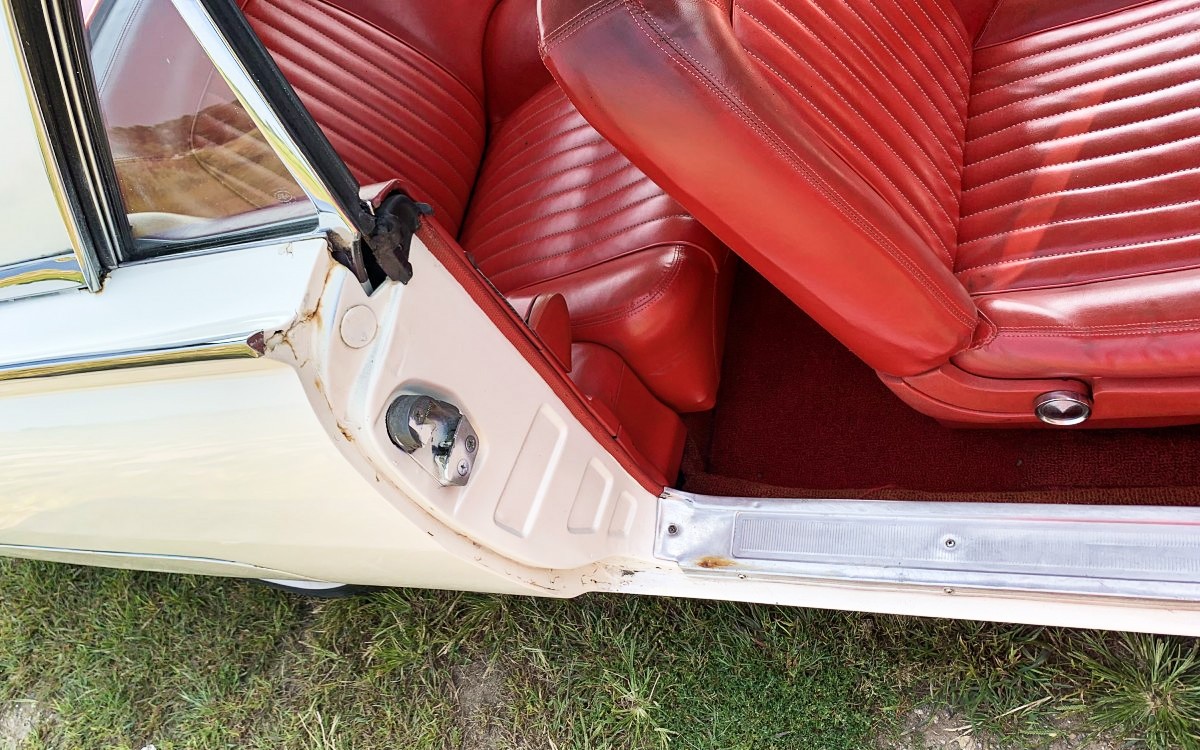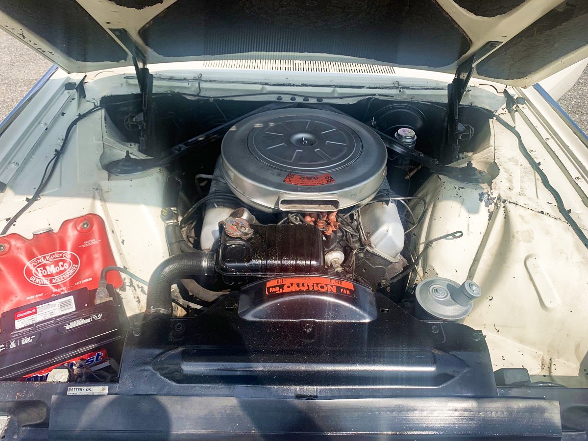 Under the hood is the original V8, which is in good running order. Jason states that it starts right up on the first crank and drives like a dream. For 1961, Ford enlarged the previous generation’s FE 352 to 390 cubic inches. The horsepower rating remained the same, but the increase in displacement boosted the torque rating up to an impressive 427 foot-pounds. And you need all of that power to get this comfortable cruiser up to speed.