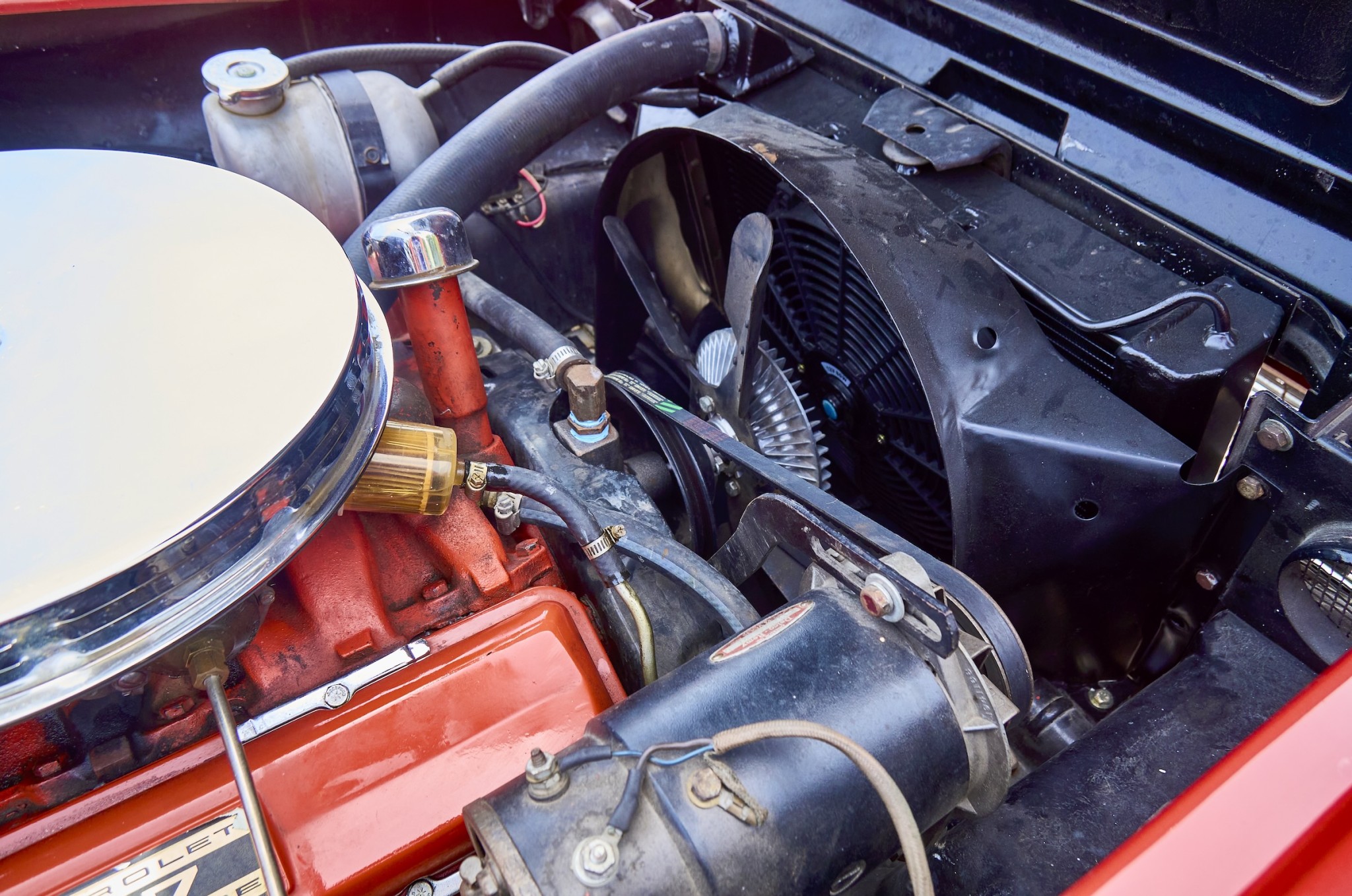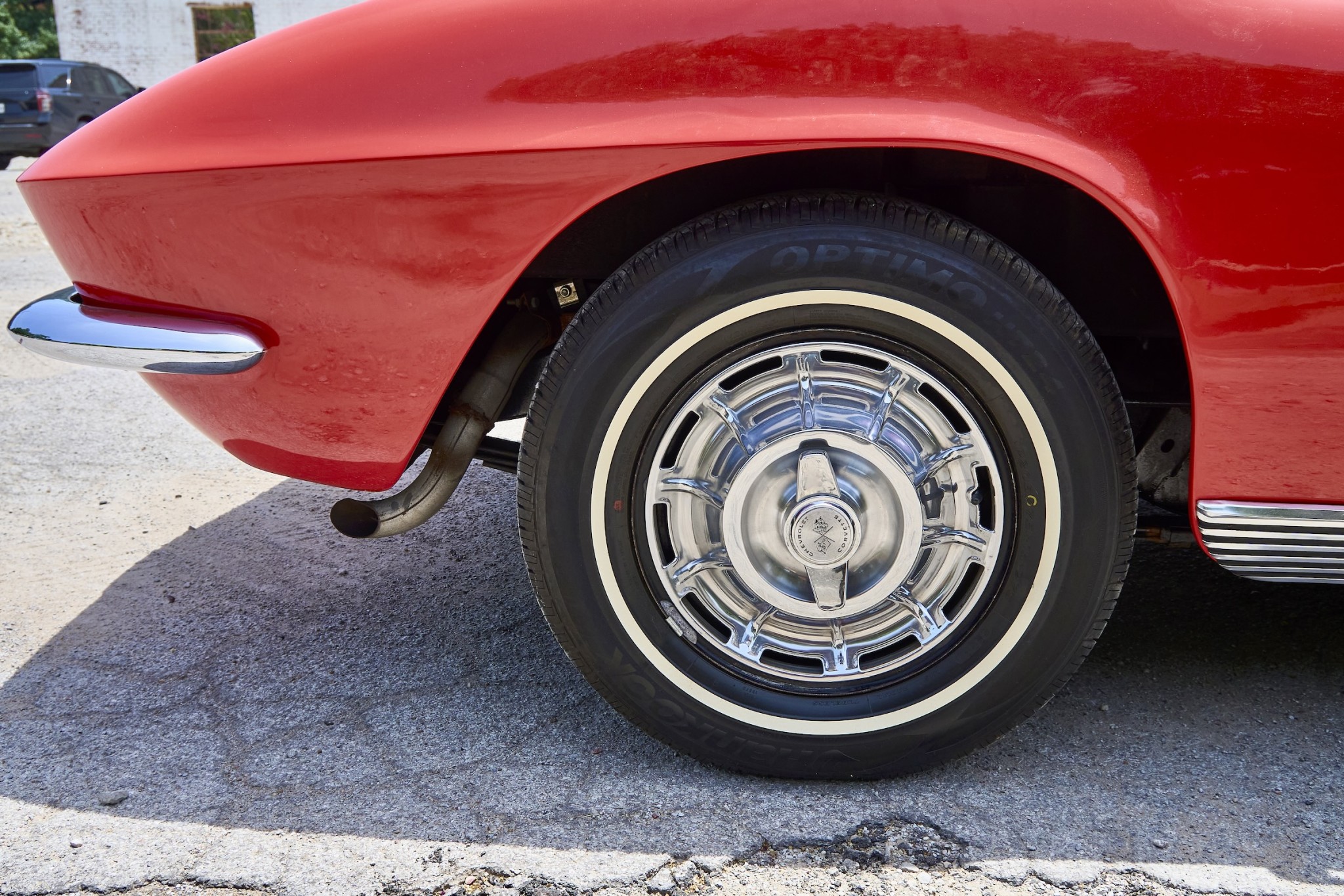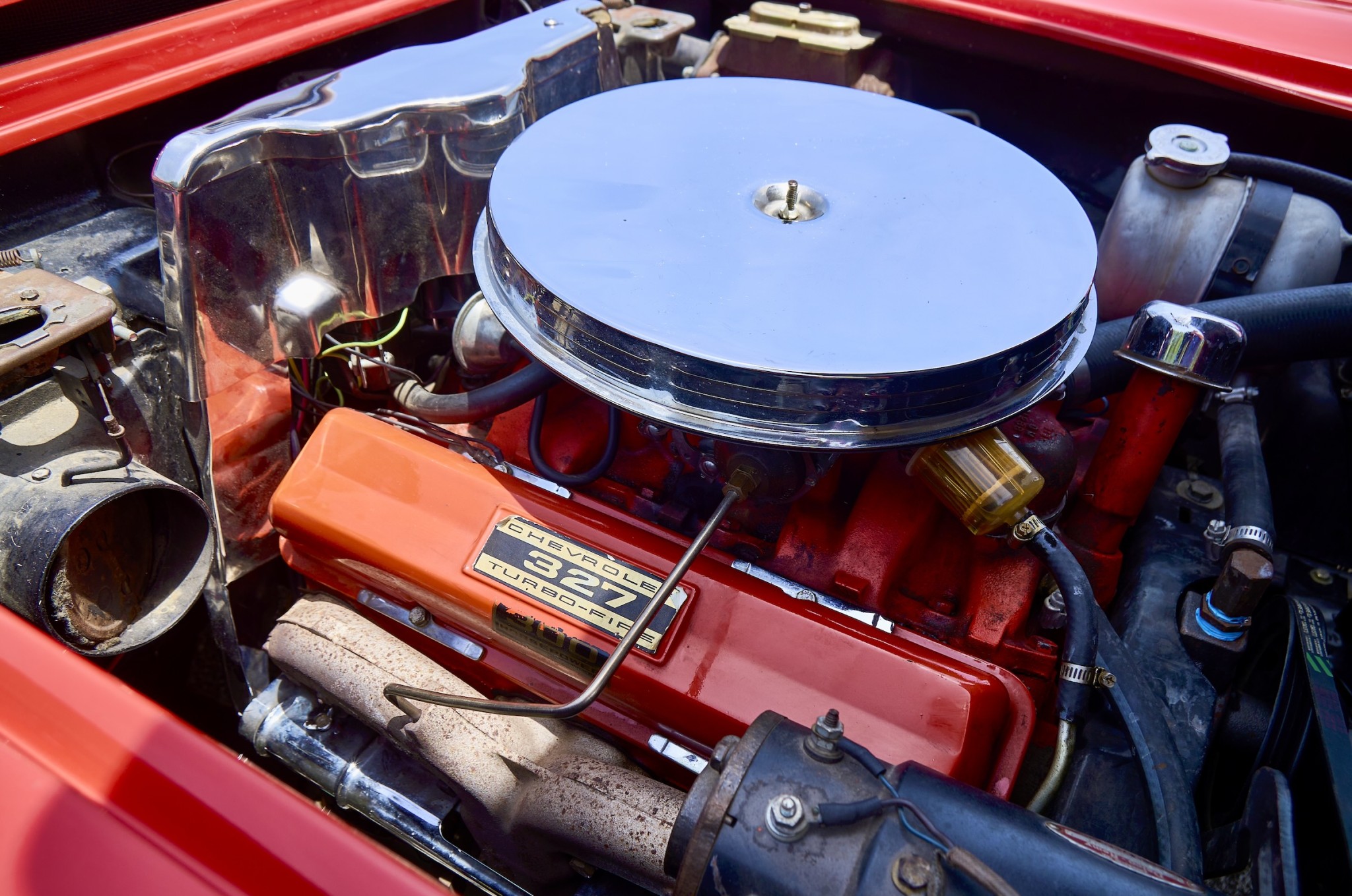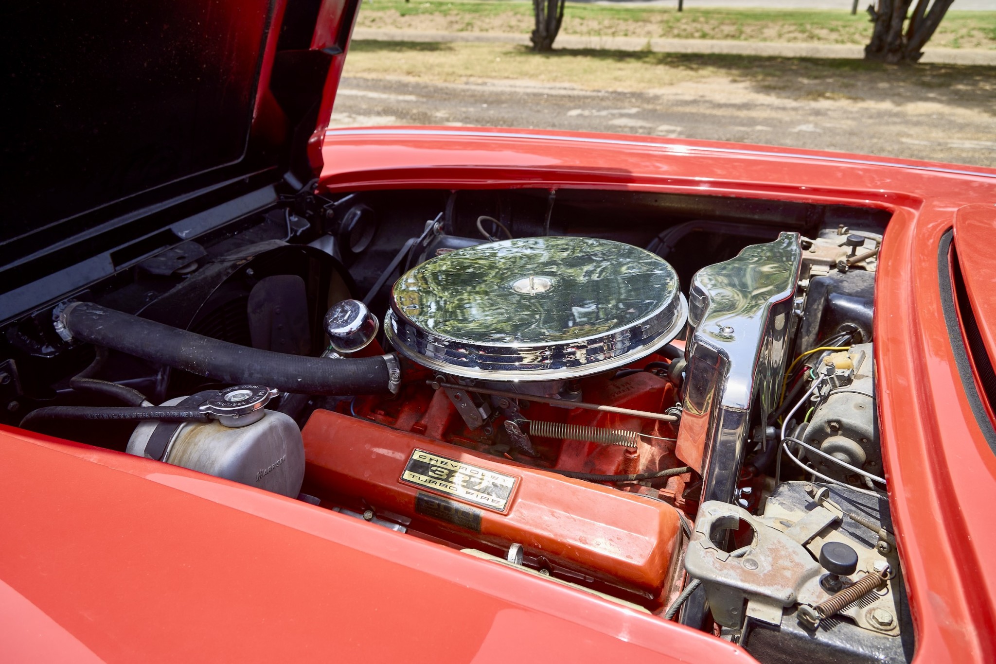 This Corvette left the factory with the base 327 V8, 3-speed manual transmission, and no radio. During the restoration, the transmission was replaced with a 4-speed close ratio manual, the rear end was upgraded to a 4:11 Positraction rear, and a period radio was installed. The original 3-speed and rear end are still with the car, so it’s next owner has the option to put it back to original, if they prefer. A previous owner installed disc brakes at all four wheels, but didn’t add a booster. The car is now a fun driver that has primarily been used in parades and car shows.