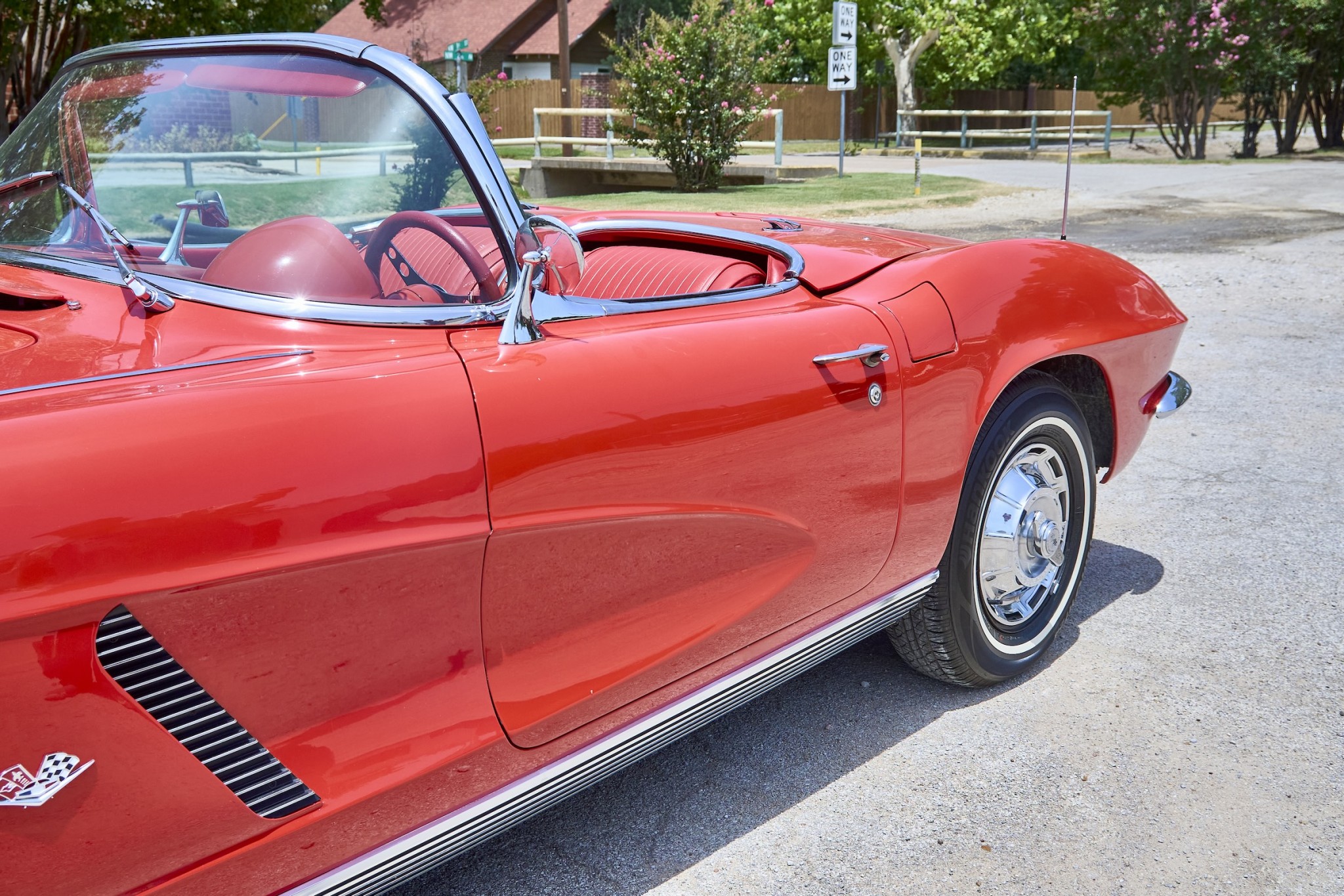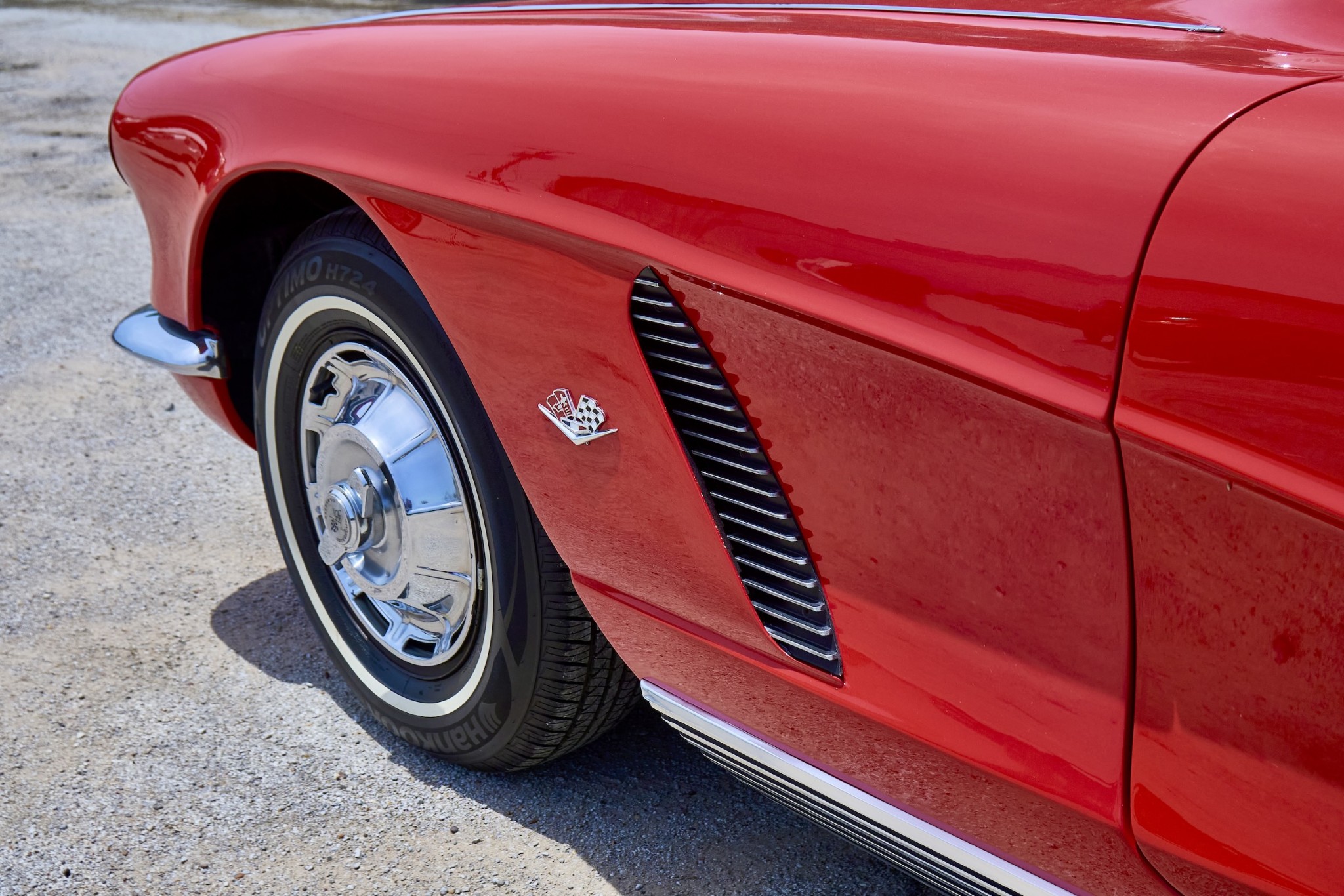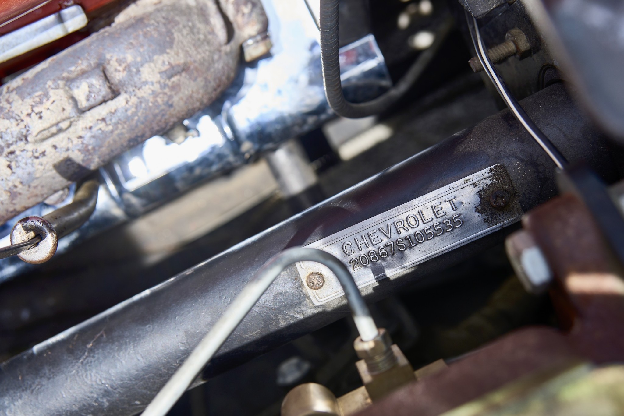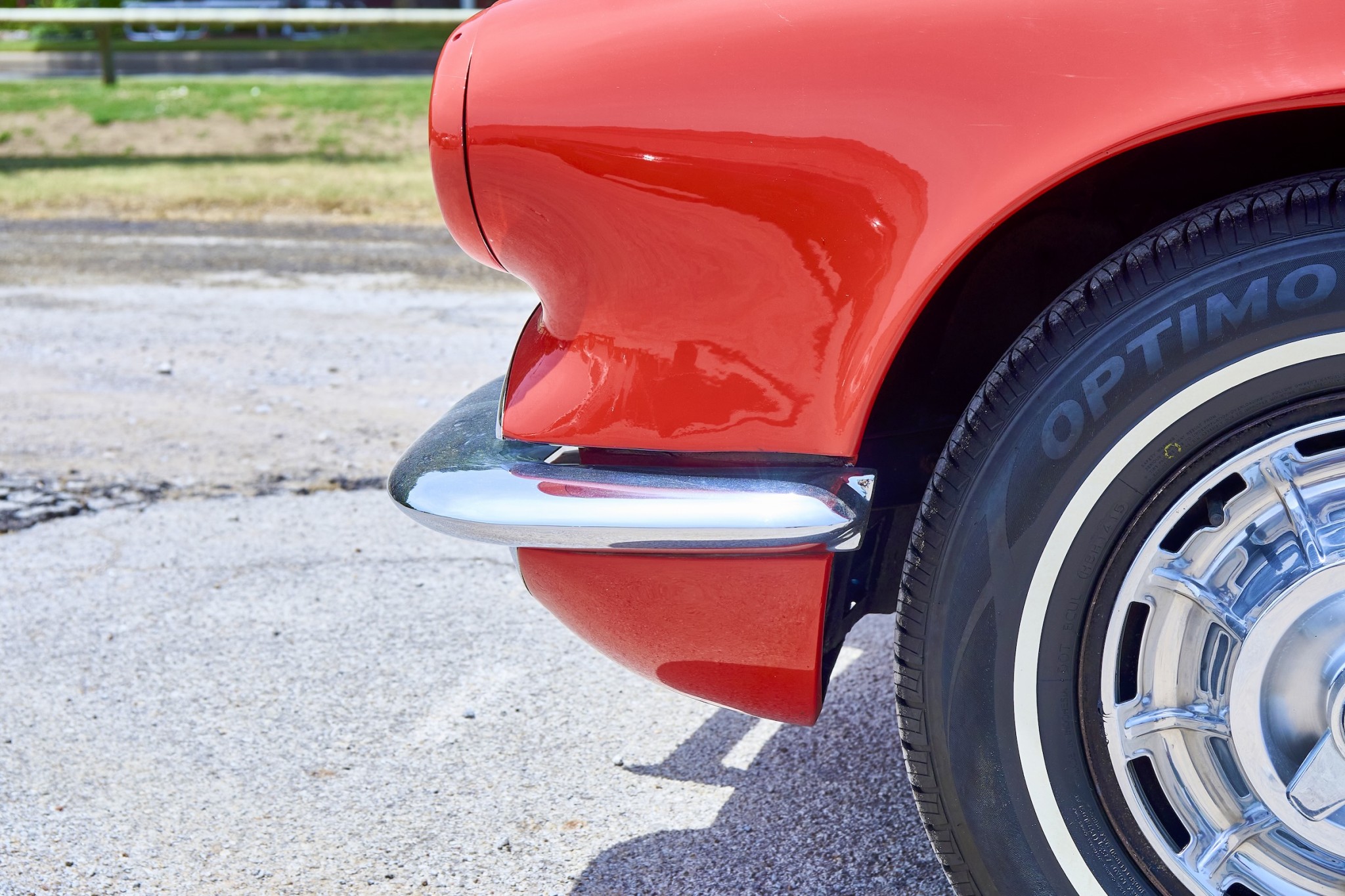 This Corvette left the factory with the base 327 V8, 3-speed manual transmission, and no radio. During the restoration, the transmission was replaced with a 4-speed close ratio manual, the rear end was upgraded to a 4:11 Positraction rear, and a period radio was installed. The original 3-speed and rear end are still with the car, so it’s next owner has the option to put it back to original, if they prefer. A previous owner installed disc brakes at all four wheels, but didn’t add a booster. The car is now a fun driver that has primarily been used in parades and car shows.