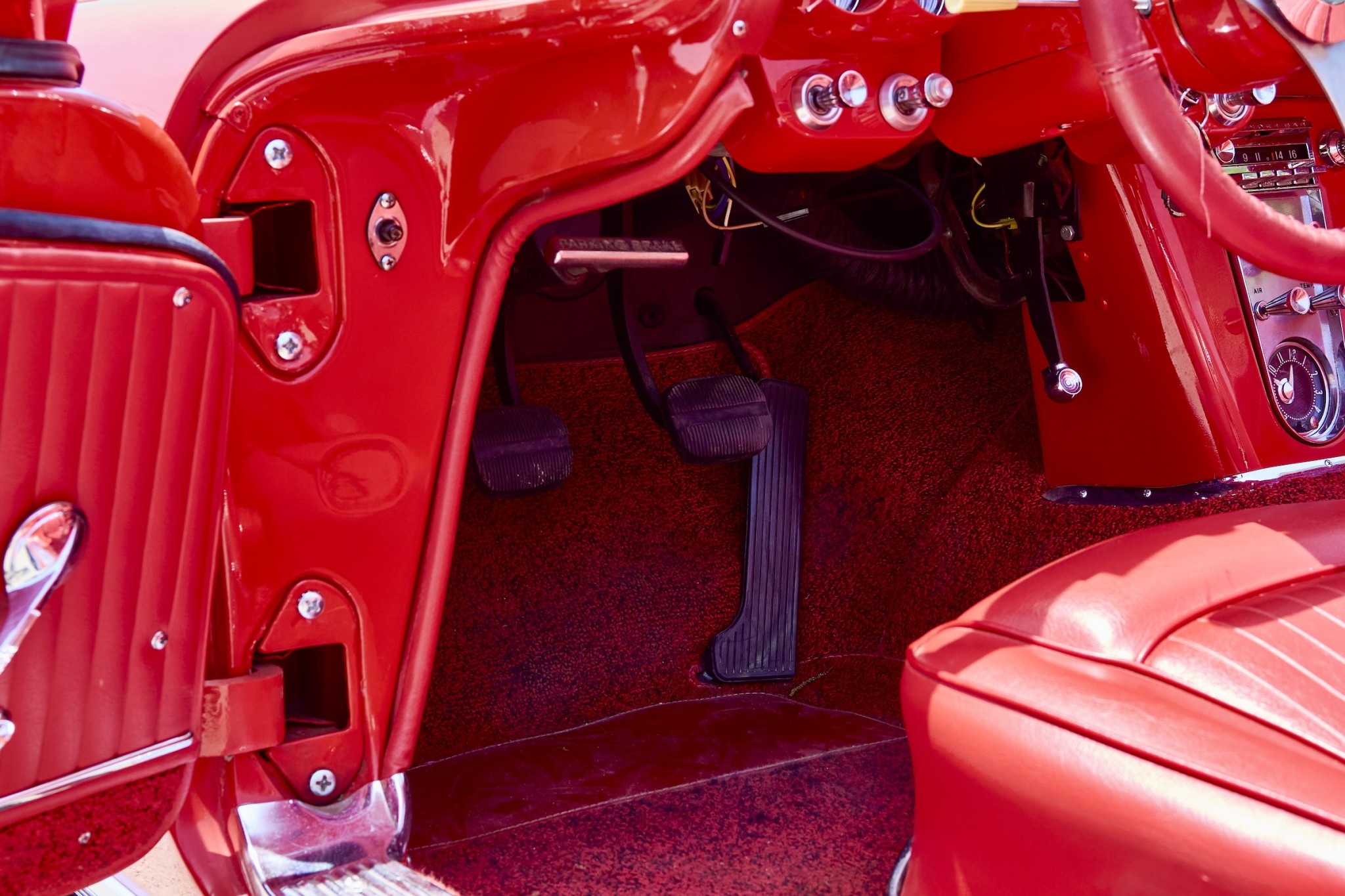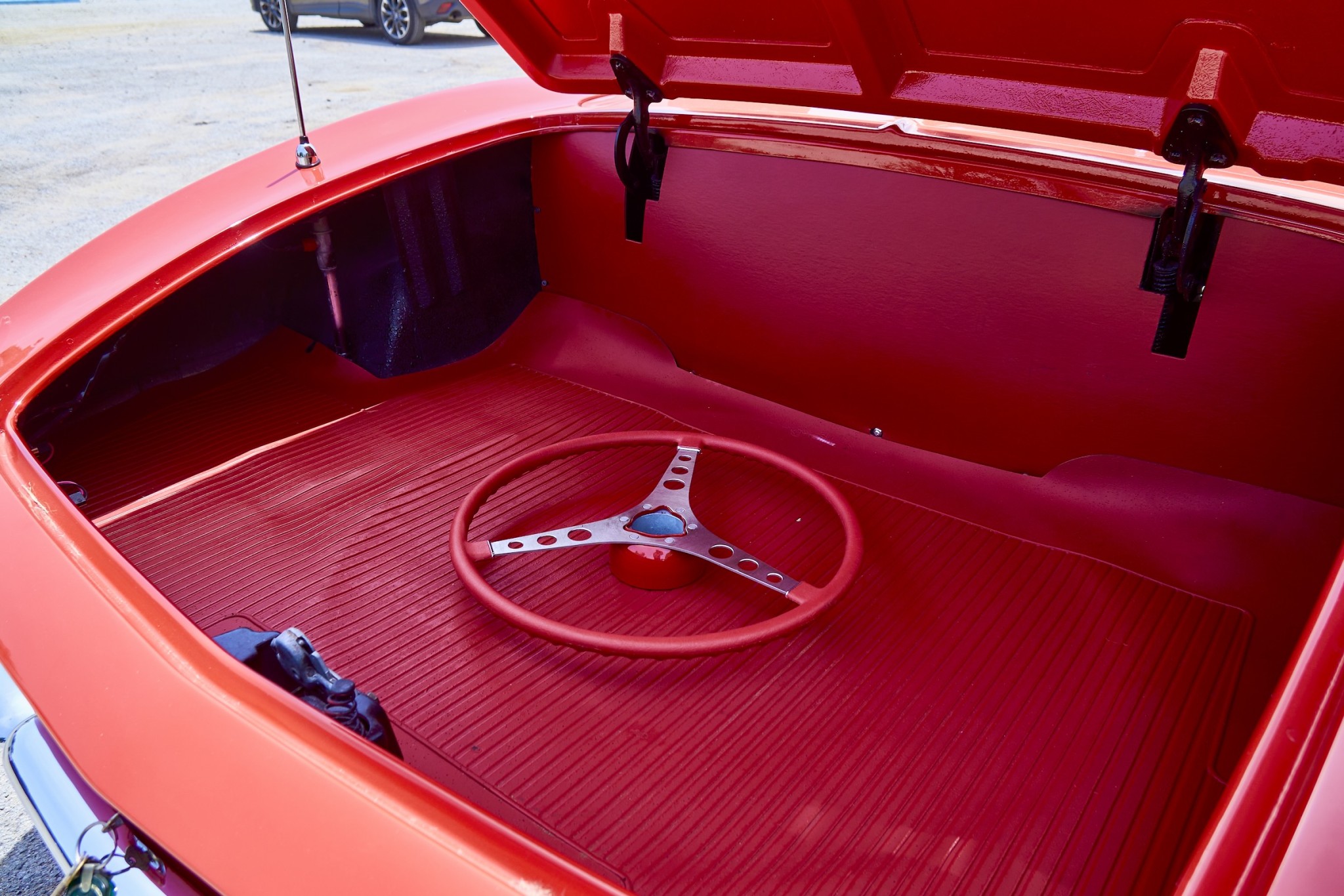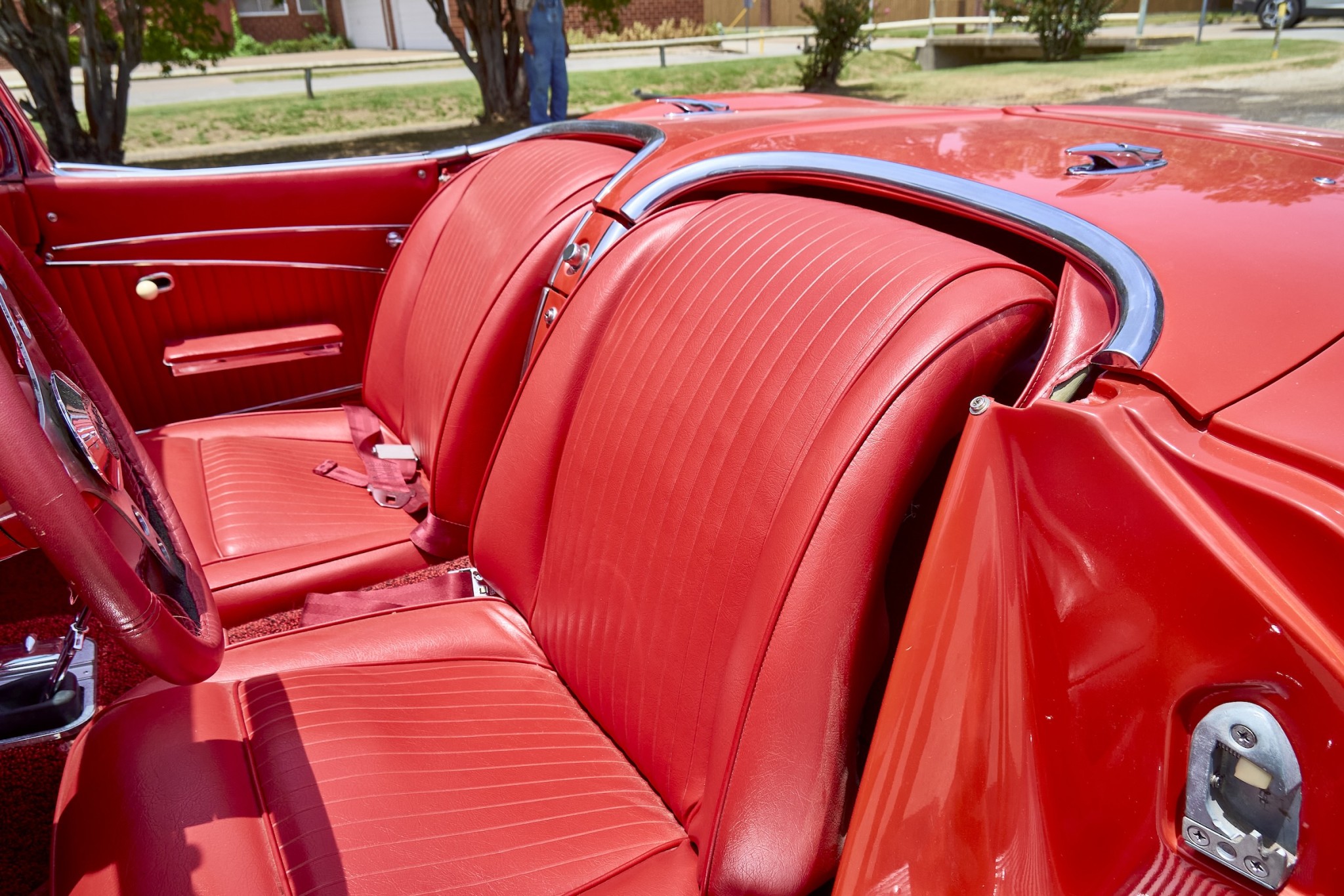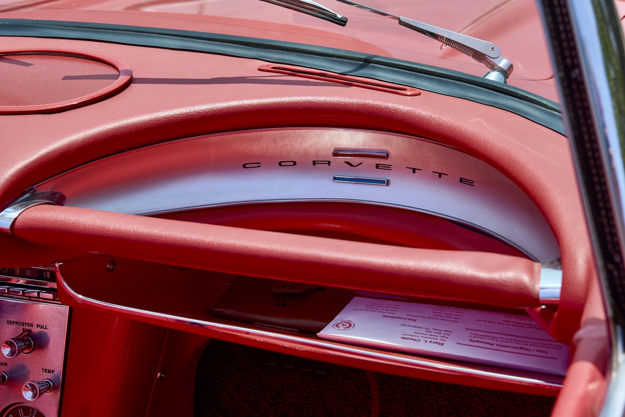To make this Corvette more comfortable, the seller found a steering wheel and had it modified to provide more room for their legs. Some of the stitching is coming loose from the steering wheel wrap, but an unmodified steering wheel is included with the car for those who don’t need the extra space or simply want it to look original. The rest of the interior presents beautifully, without any flaws, and was clearly restored to a very high level.