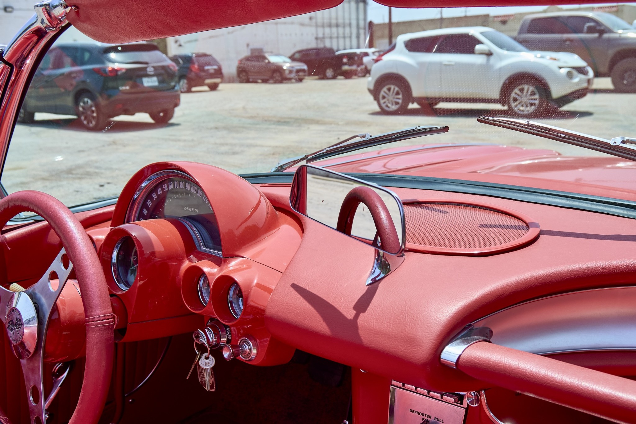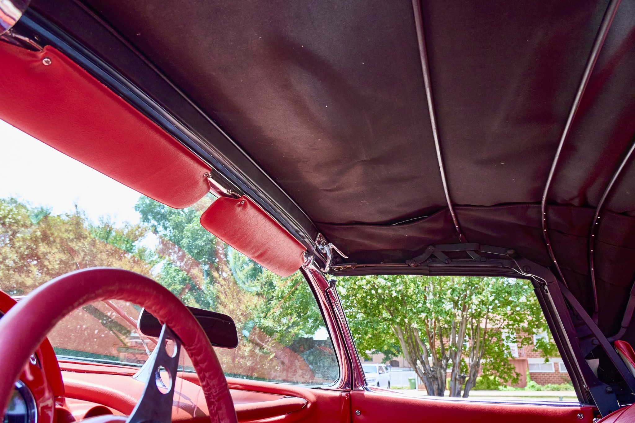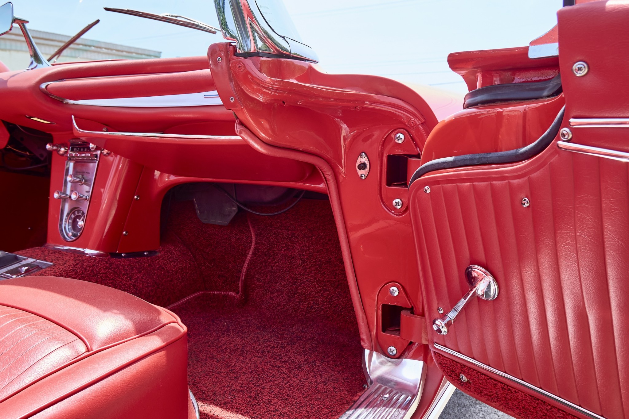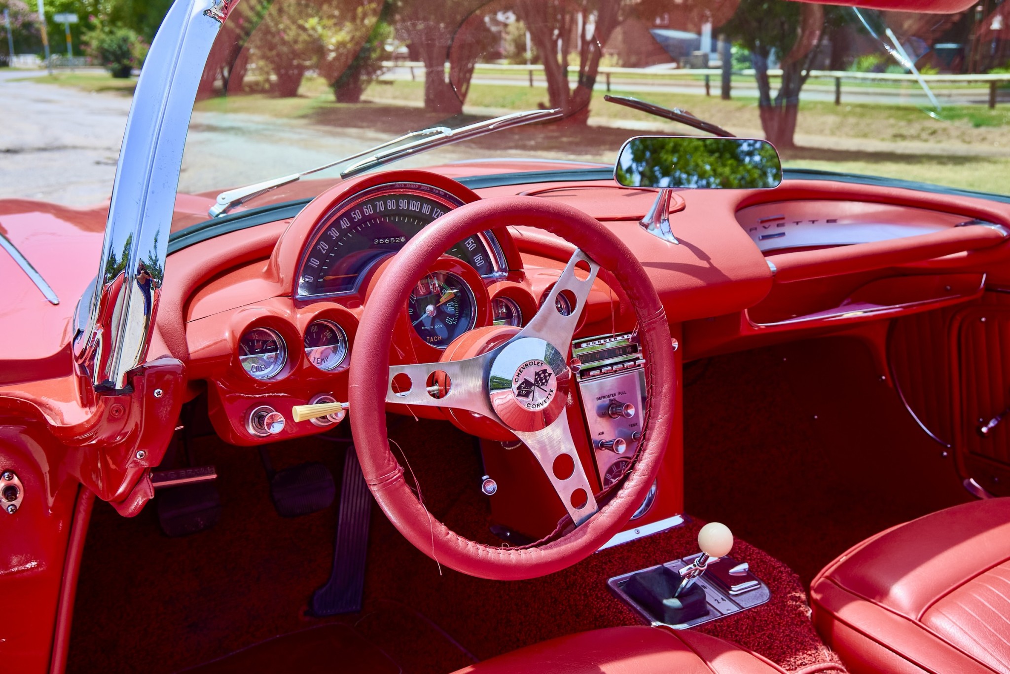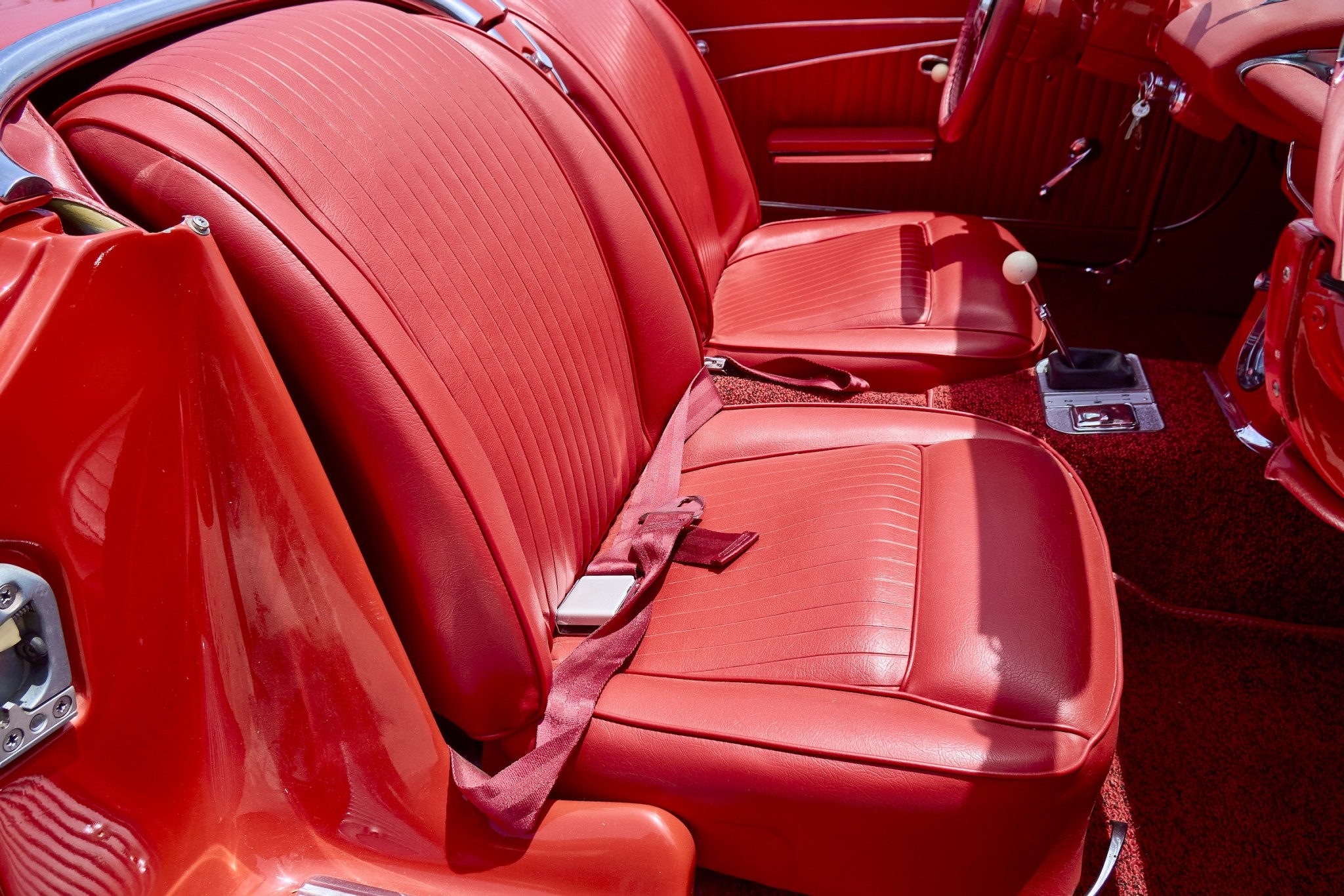 To make this Corvette more comfortable, the seller found a steering wheel and had it modified to provide more room for their legs. Some of the stitching is coming loose from the steering wheel wrap, but an unmodified steering wheel is included with the car for those who don’t need the extra space or simply want it to look original. The rest of the interior presents beautifully, without any flaws, and was clearly restored to a very high level.