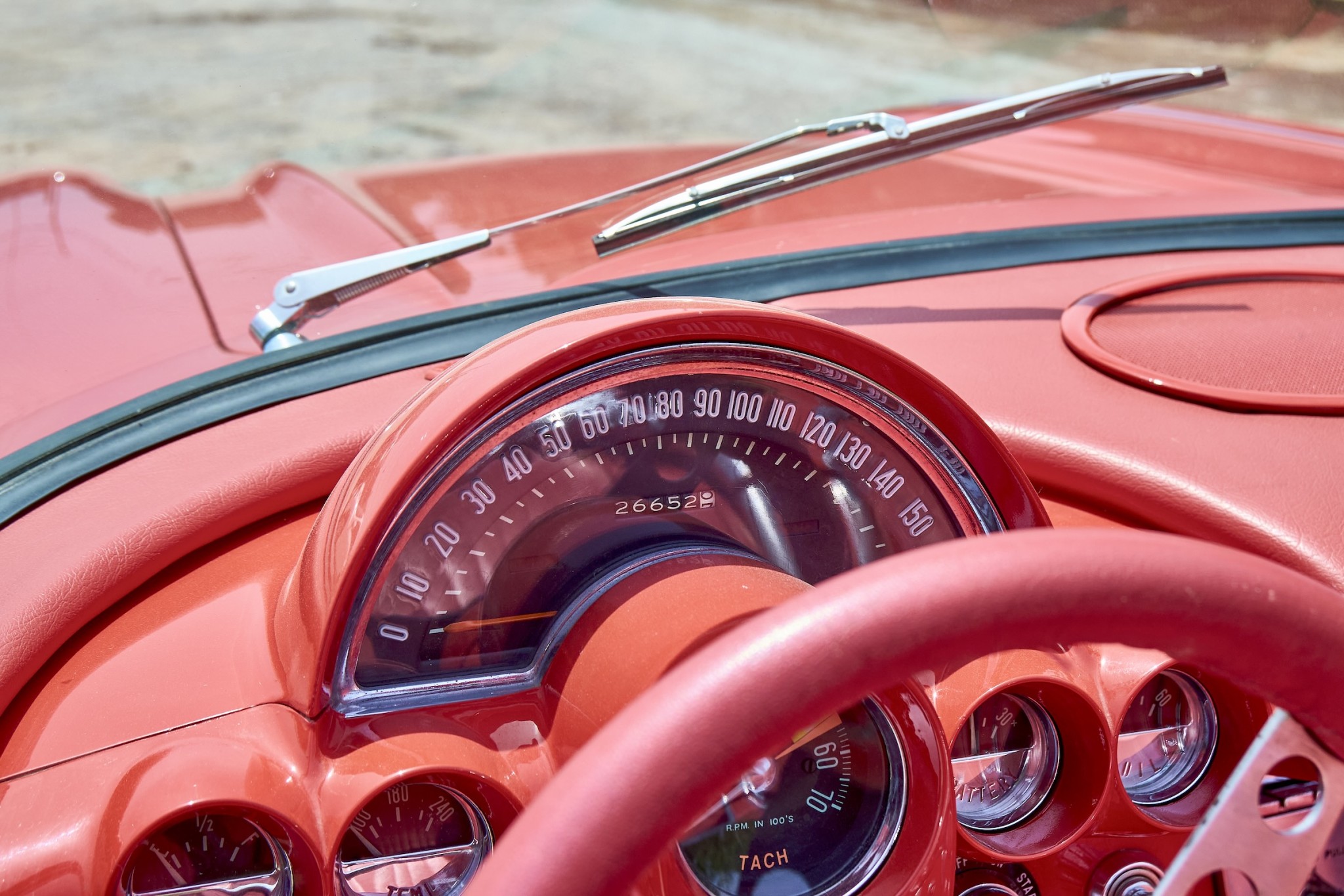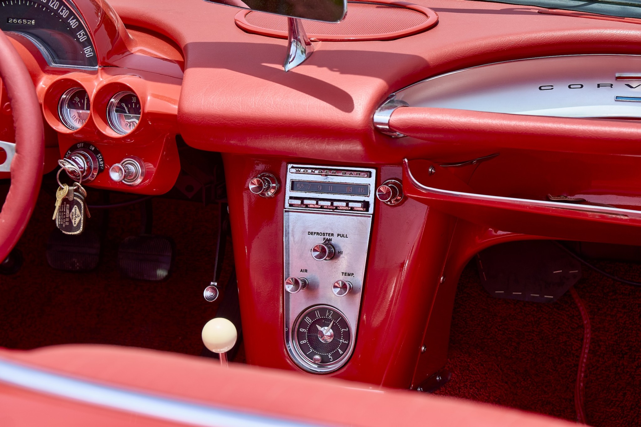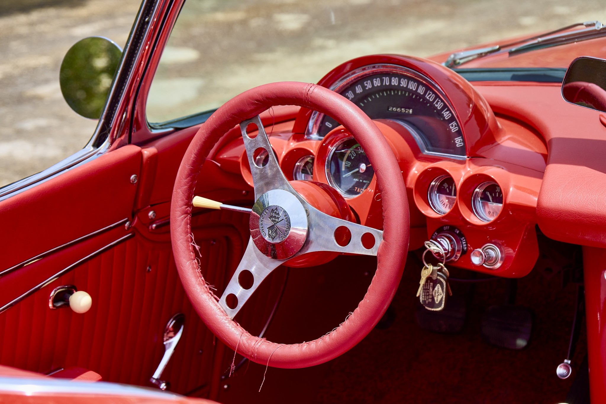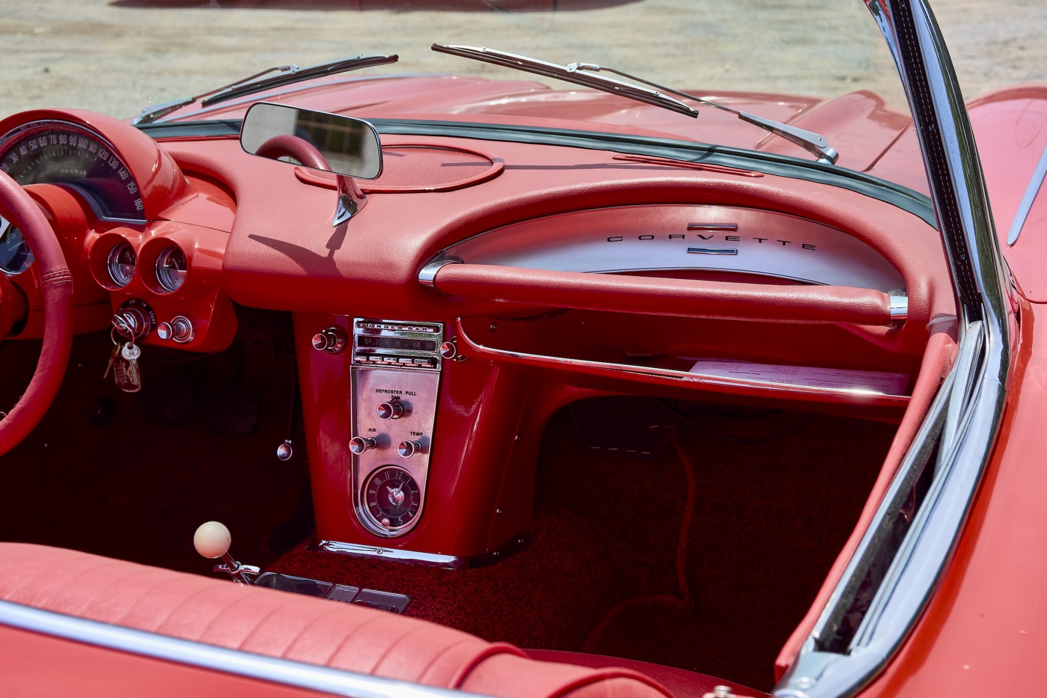 To make this Corvette more comfortable, the seller found a steering wheel and had it modified to provide more room for their legs. Some of the stitching is coming loose from the steering wheel wrap, but an unmodified steering wheel is included with the car for those who don’t need the extra space or simply want it to look original. The rest of the interior presents beautifully, without any flaws, and was clearly restored to a very high level.