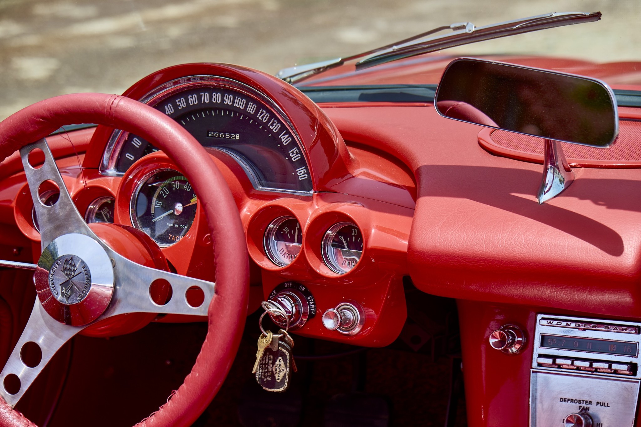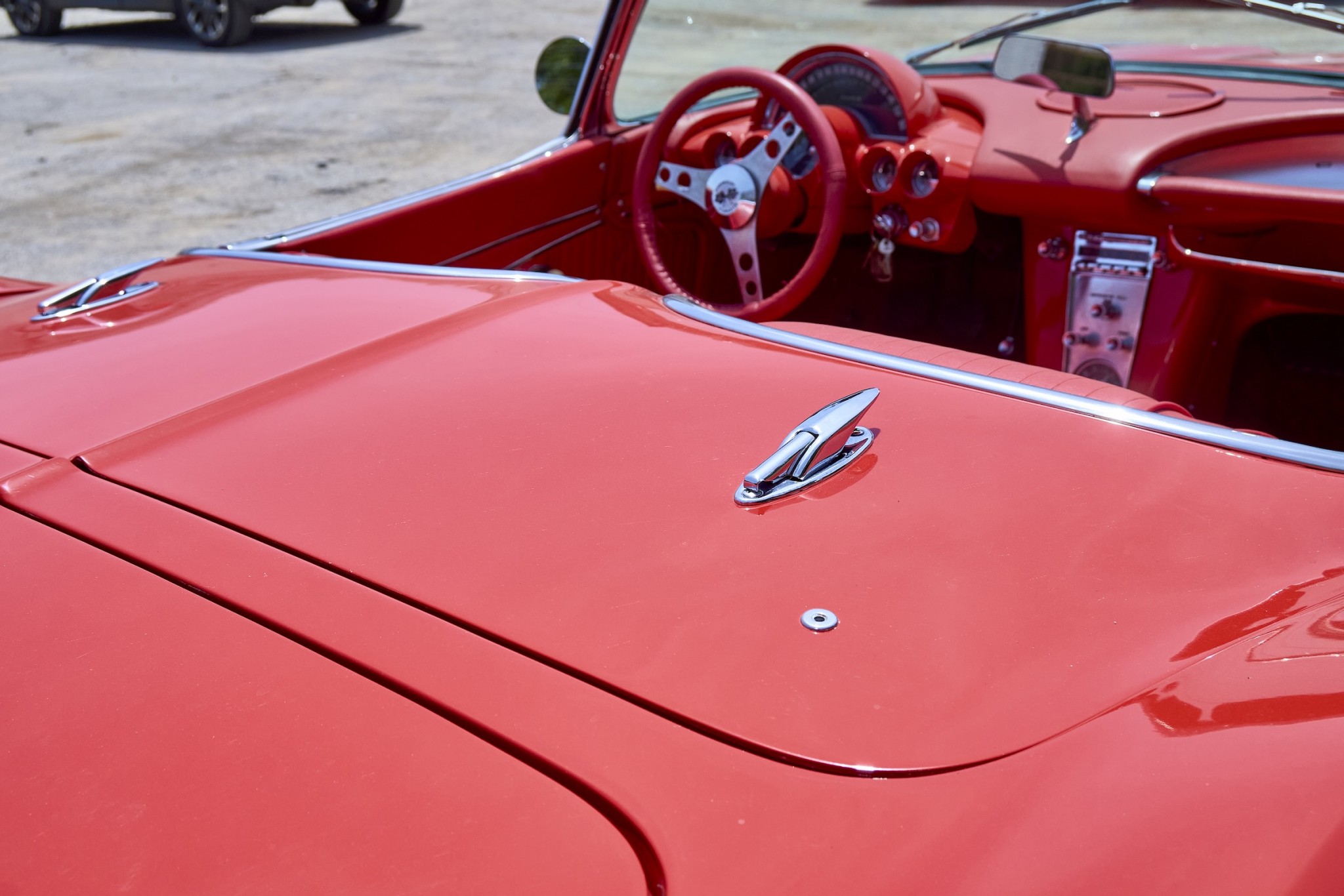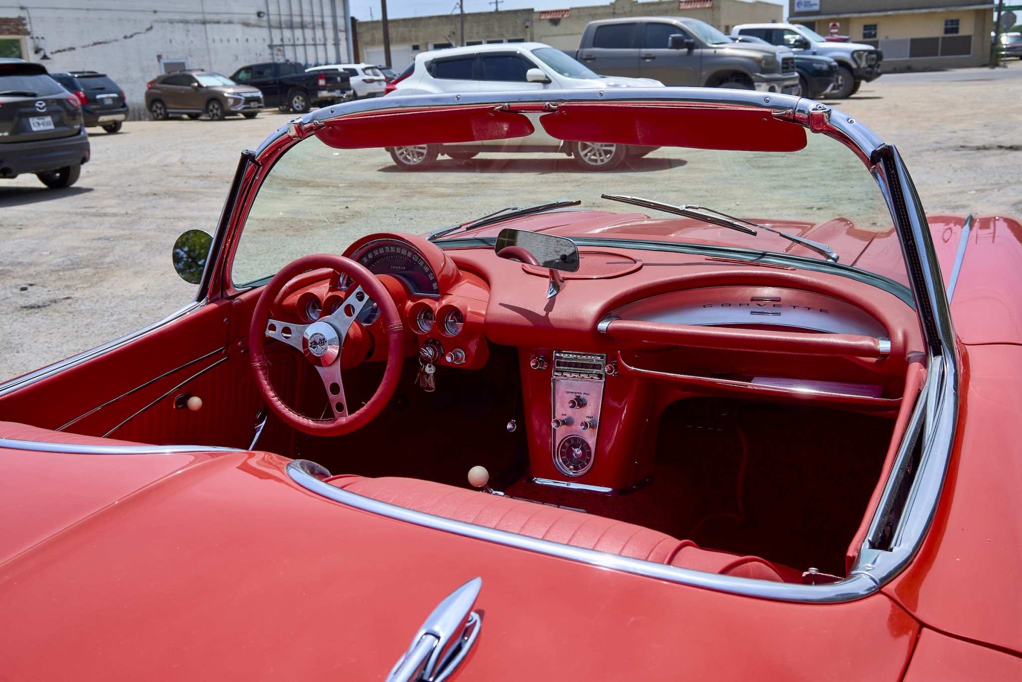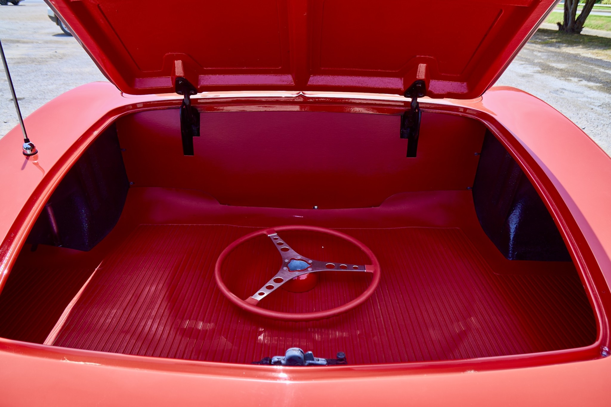 To make this Corvette more comfortable, the seller found a steering wheel and had it modified to provide more room for their legs. Some of the stitching is coming loose from the steering wheel wrap, but an unmodified steering wheel is included with the car for those who don’t need the extra space or simply want it to look original. The rest of the interior presents beautifully, without any flaws, and was clearly restored to a very high level.