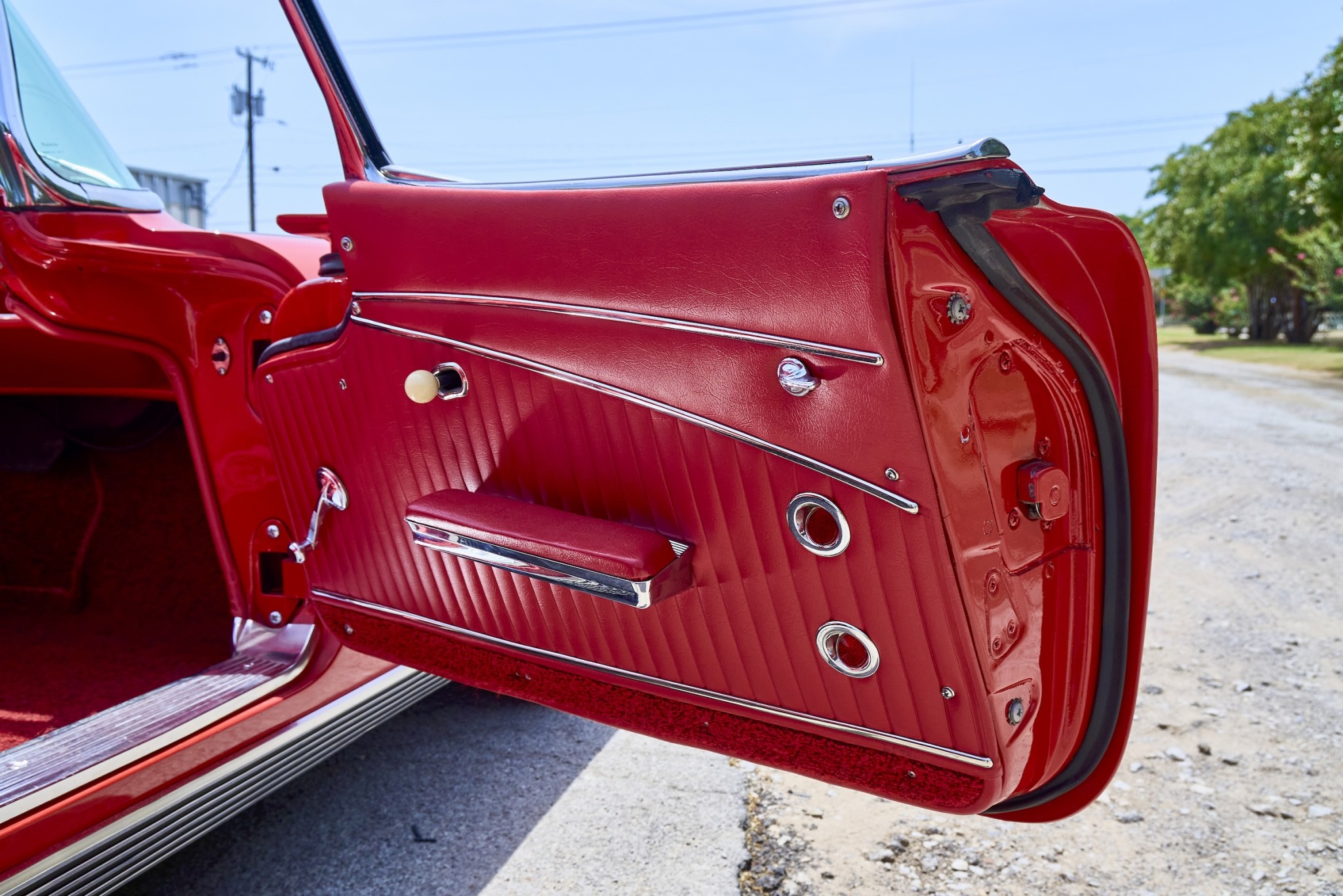 Under the hood, we find a 300 horsepower 327 V8. The numbers on the engine show that it’s 3 months newer than the car, so it’s clearly a replacement. It runs well and is a nice upgrade over the 250 horsepower 327. Paired with the 4-speed and 4:11 rear, it should go nicely and keep up with modern traffic. The engine bay could benefit from some detailing, but presents well as is. The only change we would make here would be to add a brake booster, but even that isn’t necessary to enjoy this Corvette.