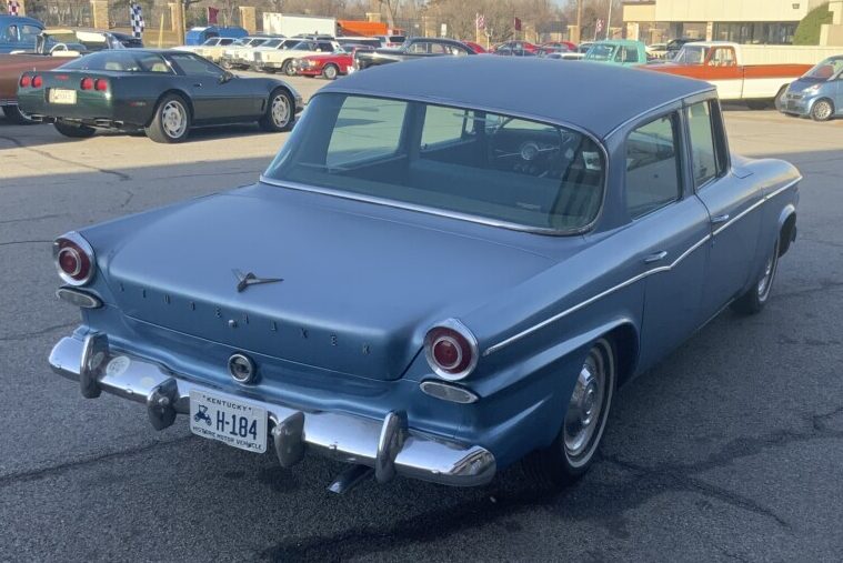 I looked at one of these about a year ago in deep forest green. Kind of pedestrian as you enter the car compared to anything else marketed in 1962. Seller made the mistake of telling me he couldn’t keep the car aligned and noises in the front suspension so I backed away. I always liked the final iteration of the Lark with rectangular grille and taillights high on the rear fenders.