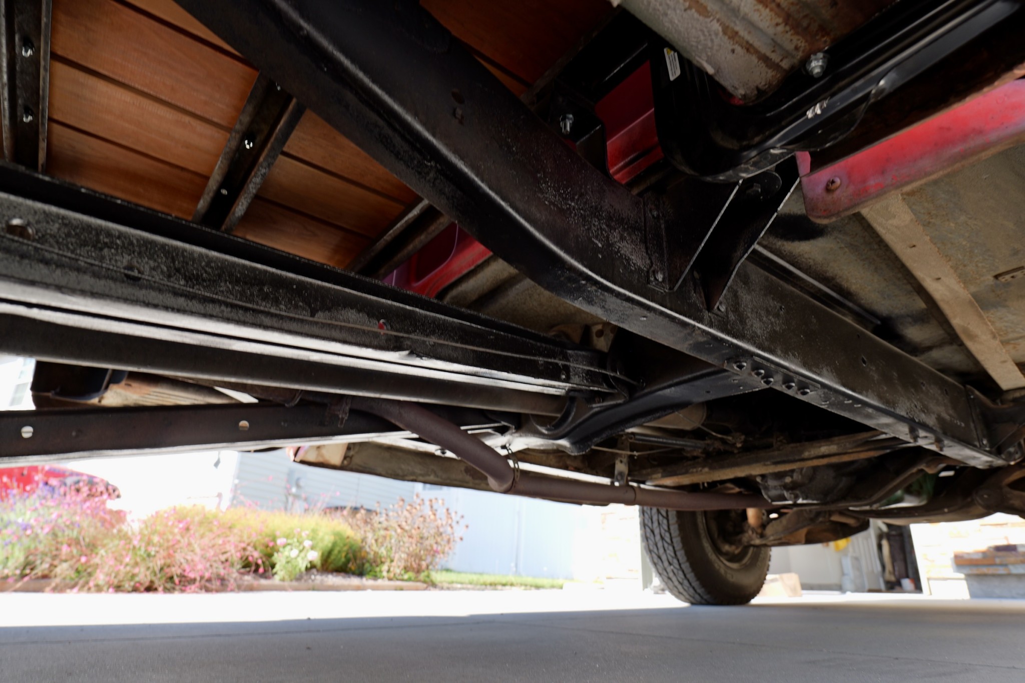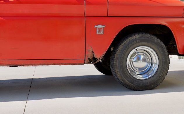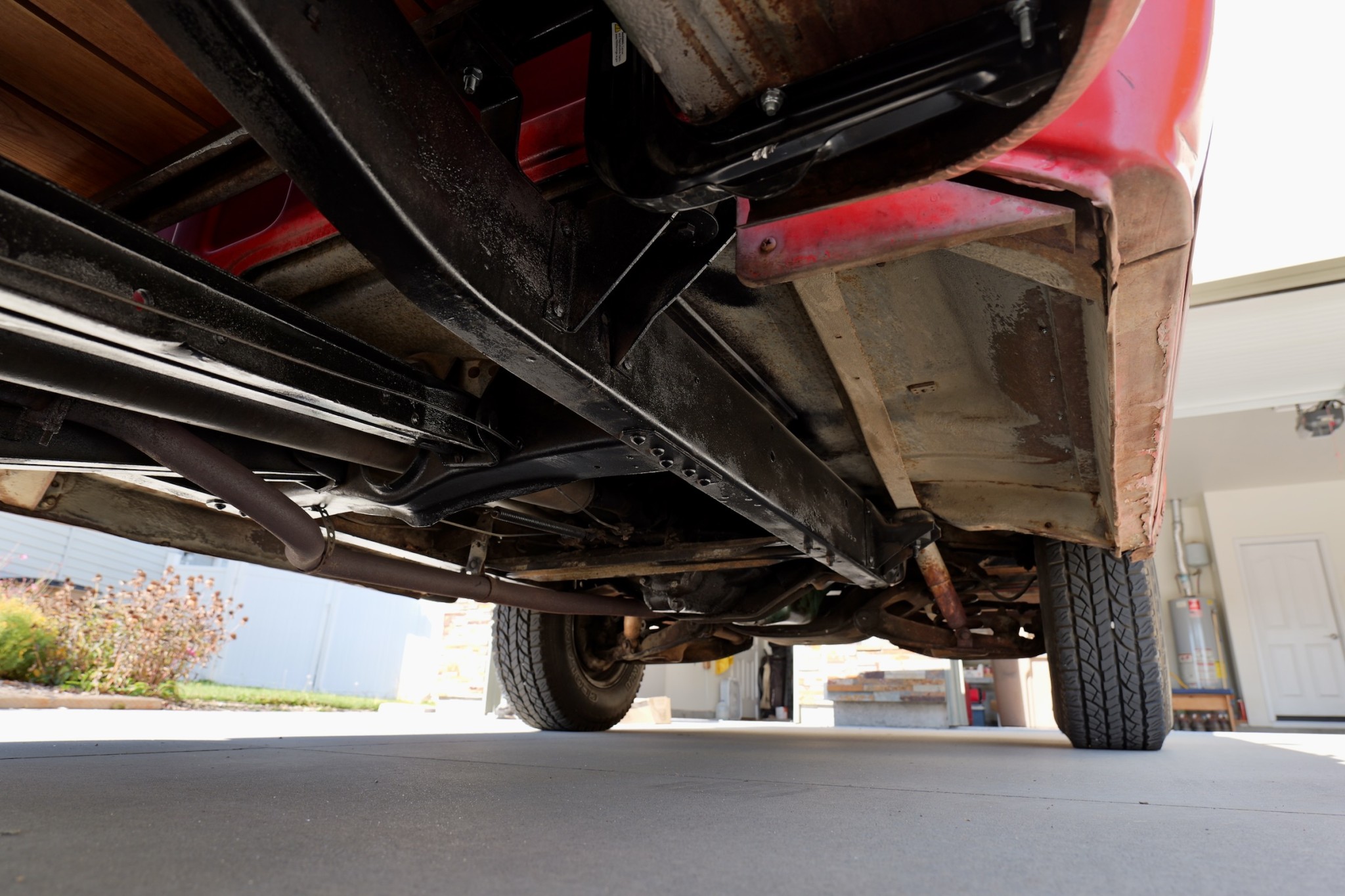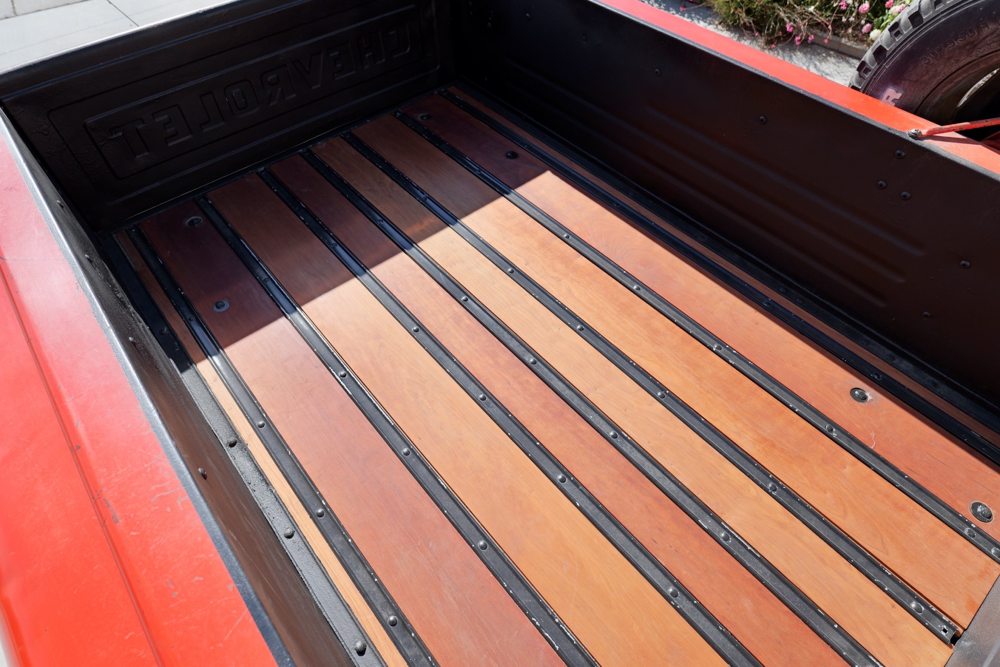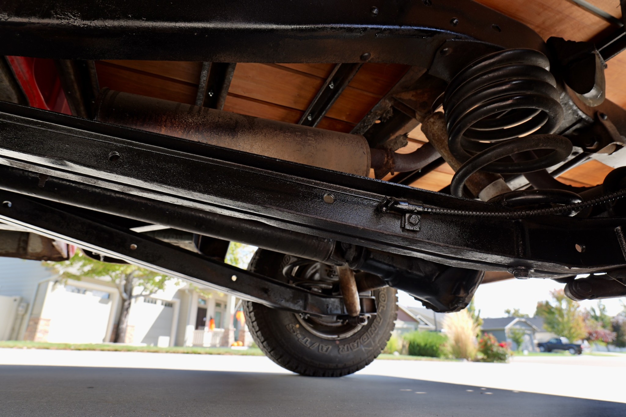 This truck’s only weakness is some rust in the front fenders and door bottoms. The cab corners and floors look to be in solid original condition. The seller replaced the wood in the truck bed with custom-cut cherry wood, which looks great. We didn’t find any signs of rust in the frame or bed structure.