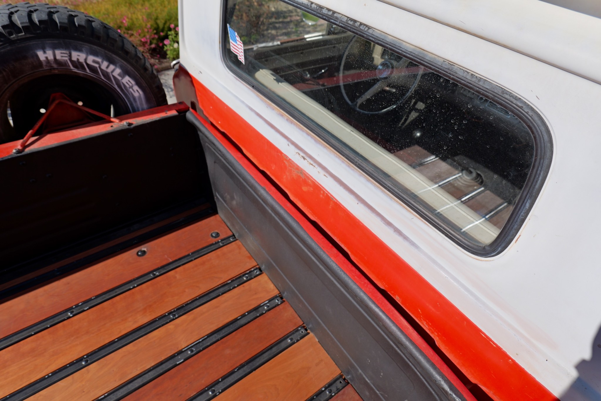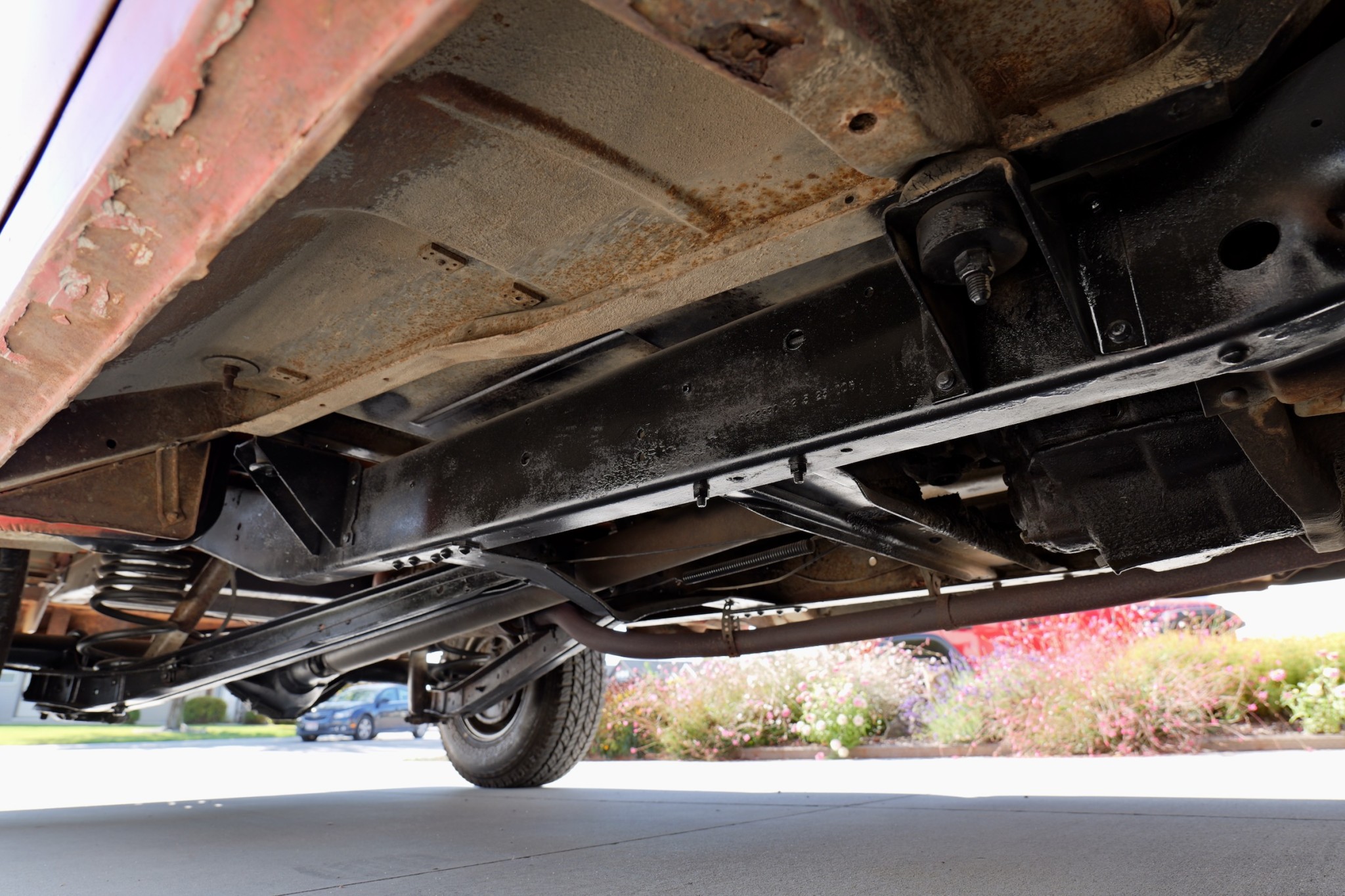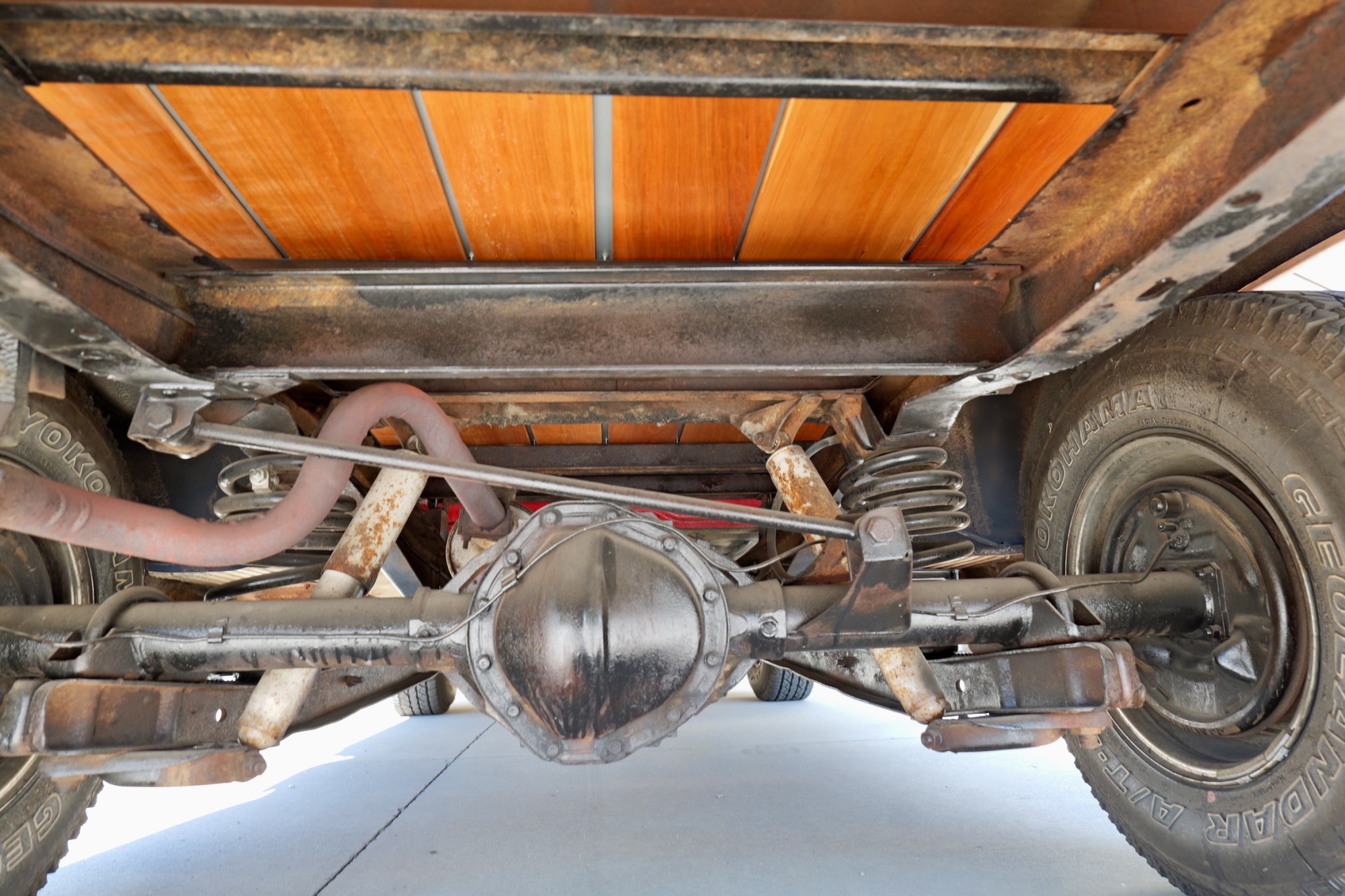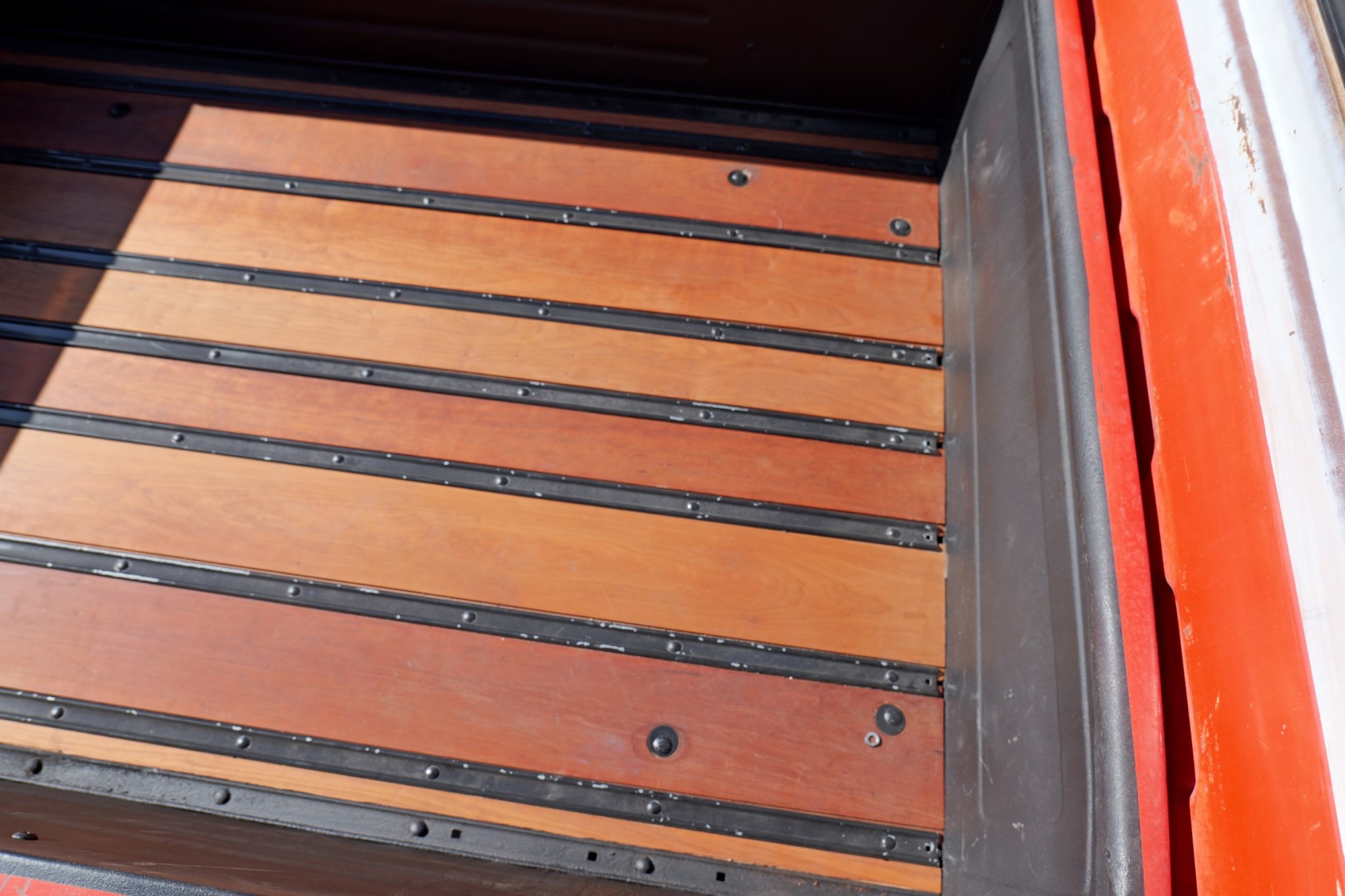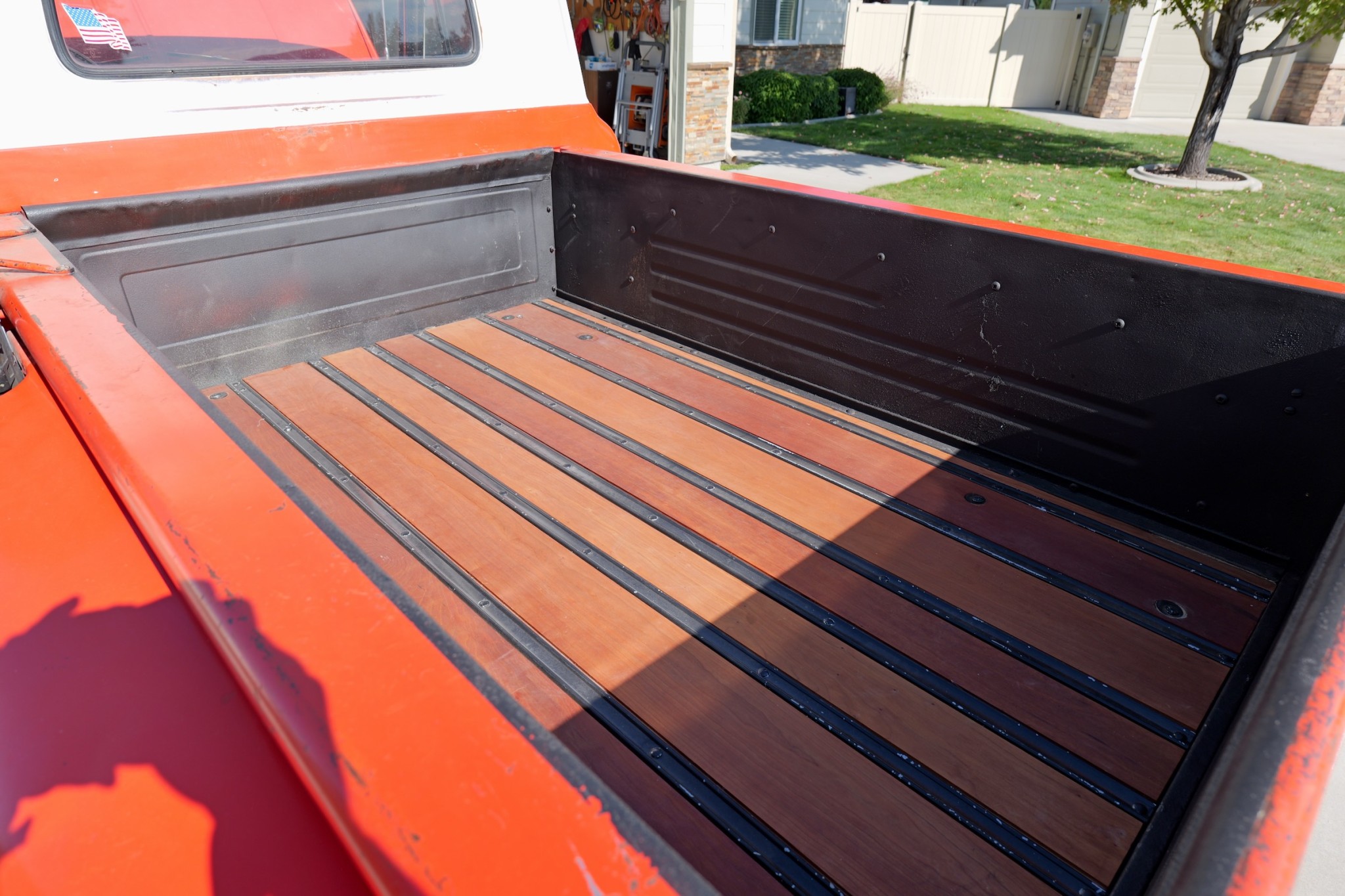 This truck’s only weakness is some rust in the front fenders and door bottoms. The cab corners and floors look to be in solid original condition. The seller replaced the wood in the truck bed with custom-cut cherry wood, which looks great. We didn’t find any signs of rust in the frame or bed structure.