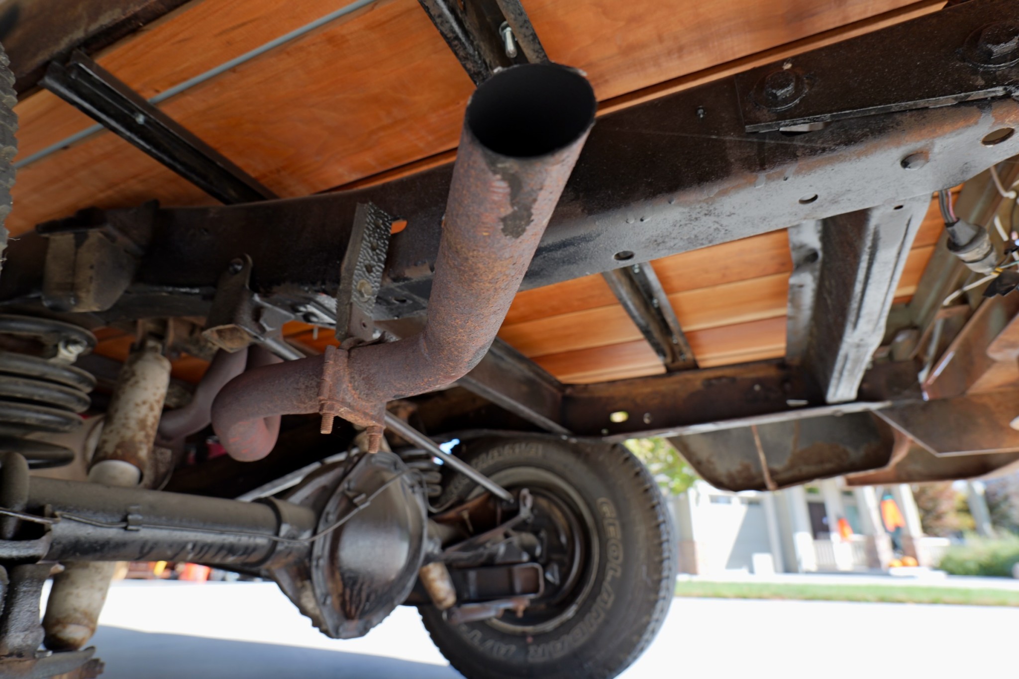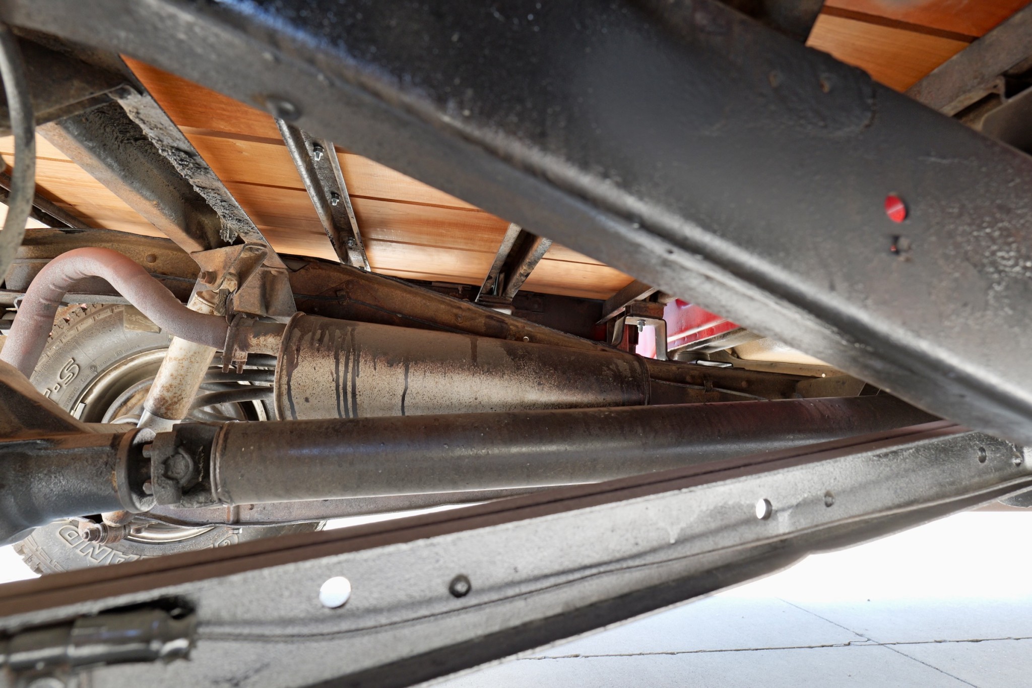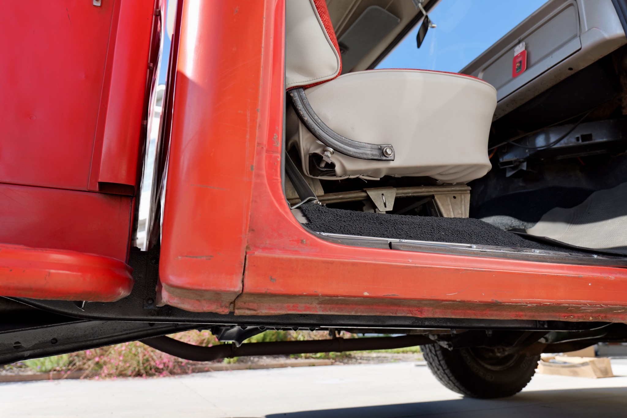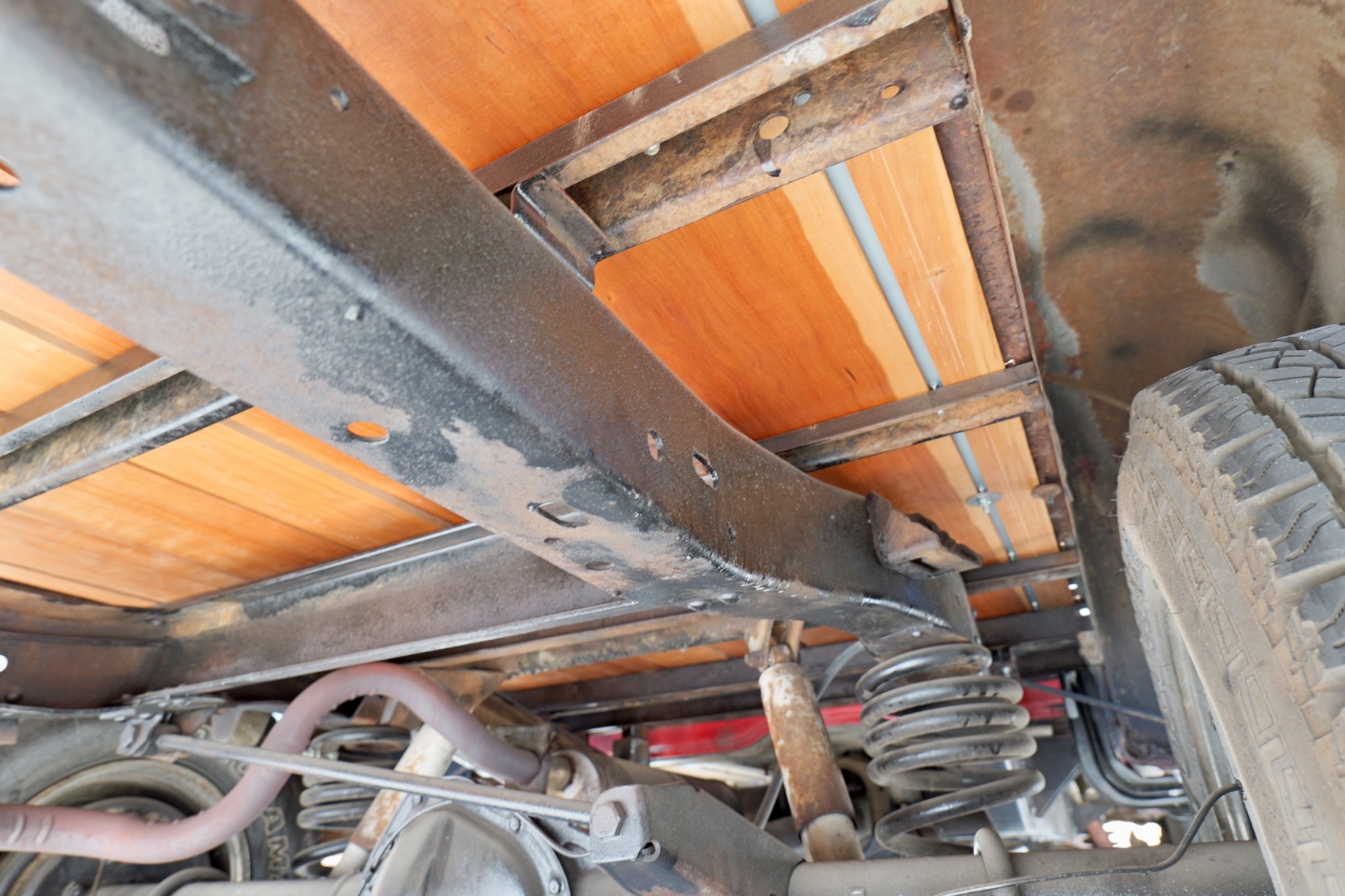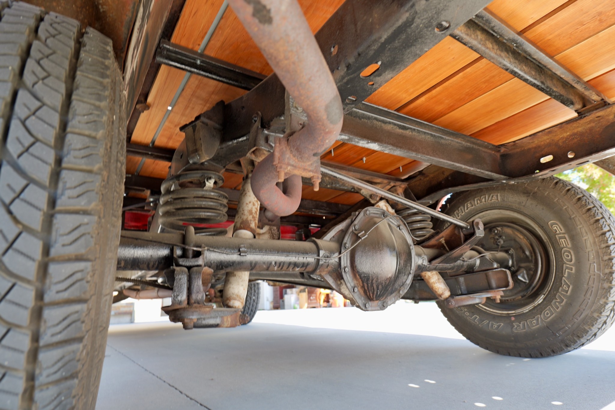 This truck’s only weakness is some rust in the front fenders and door bottoms. The cab corners and floors look to be in solid original condition. The seller replaced the wood in the truck bed with custom-cut cherry wood, which looks great. We didn’t find any signs of rust in the frame or bed structure.