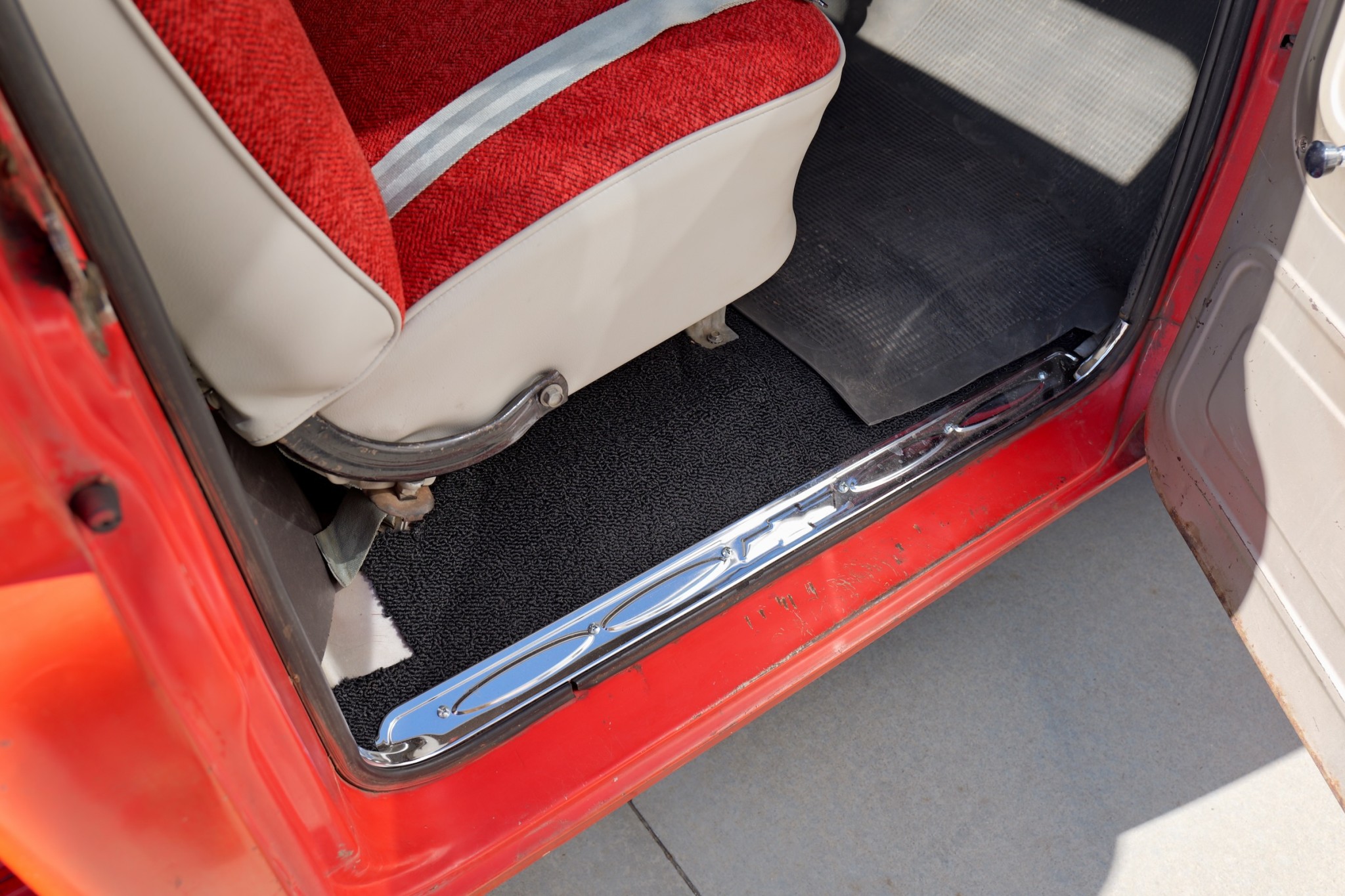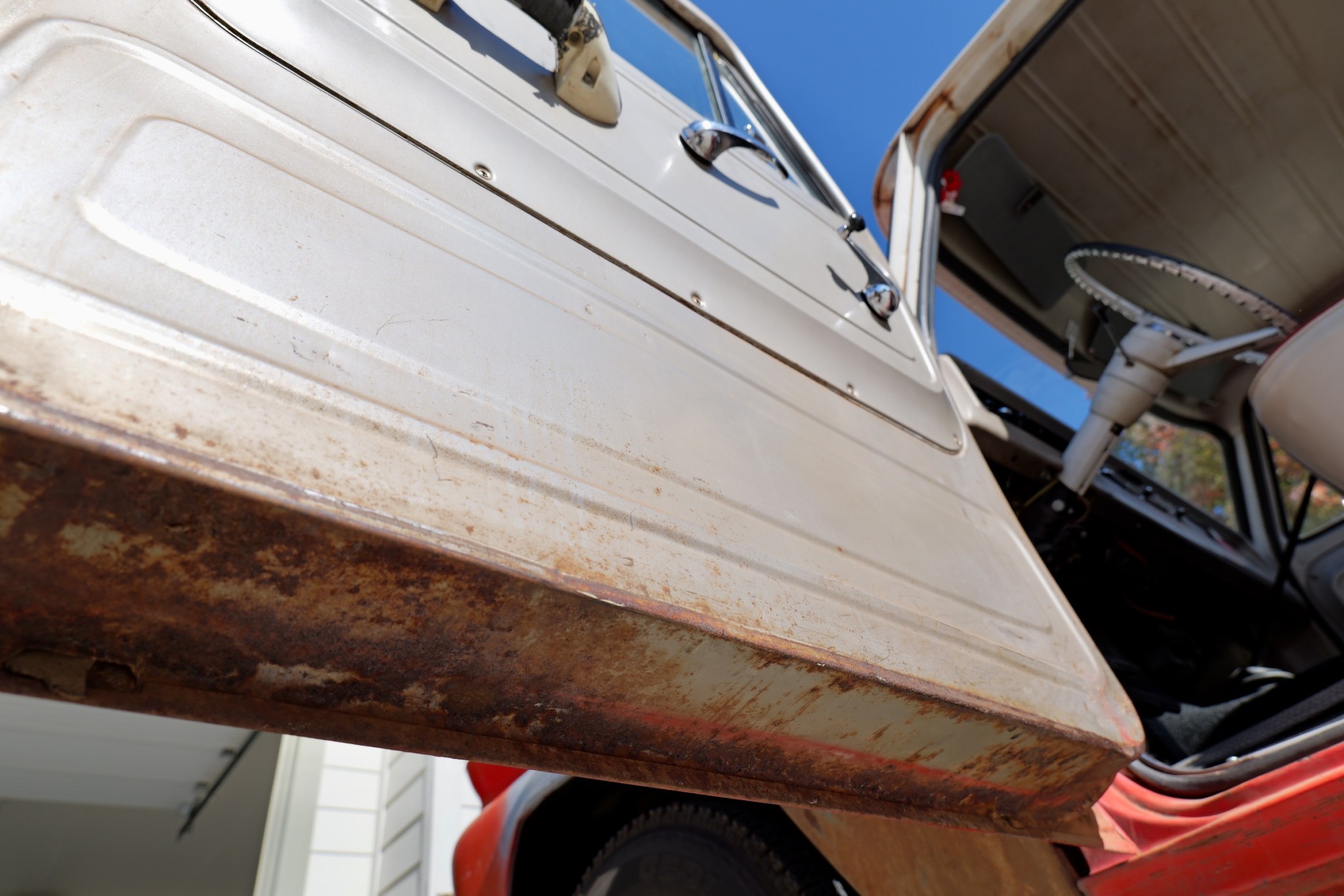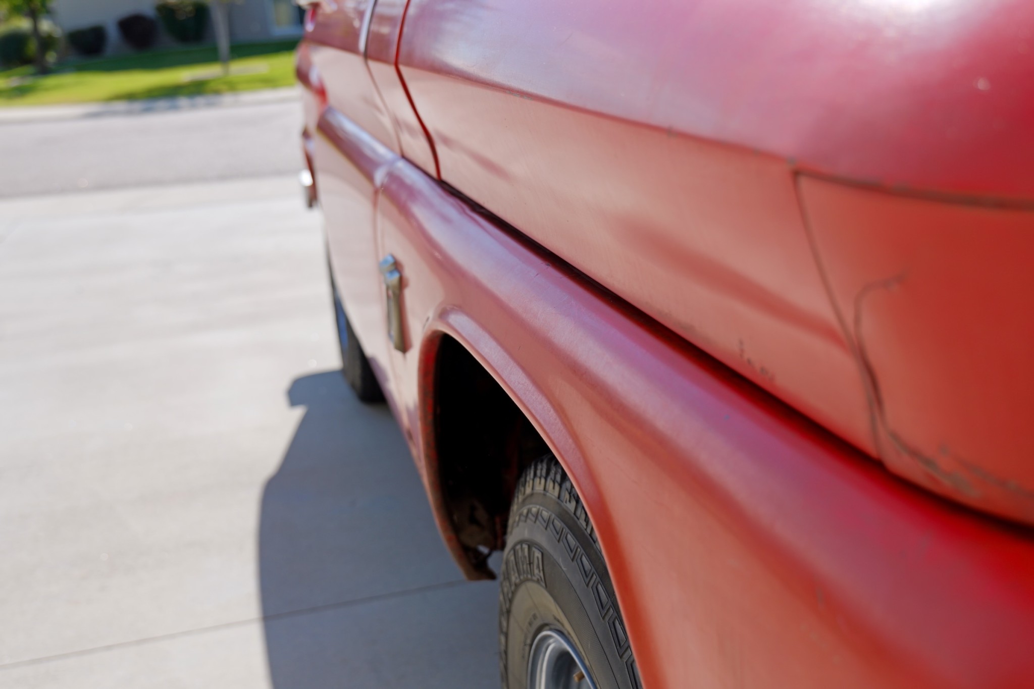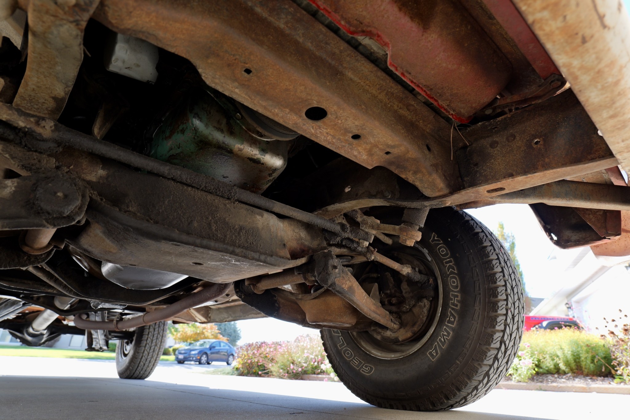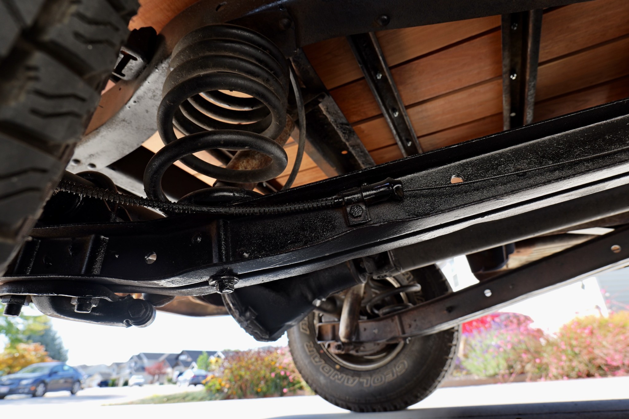 This truck’s only weakness is some rust in the front fenders and door bottoms. The cab corners and floors look to be in solid original condition. The seller replaced the wood in the truck bed with custom-cut cherry wood, which looks great. We didn’t find any signs of rust in the frame or bed structure.