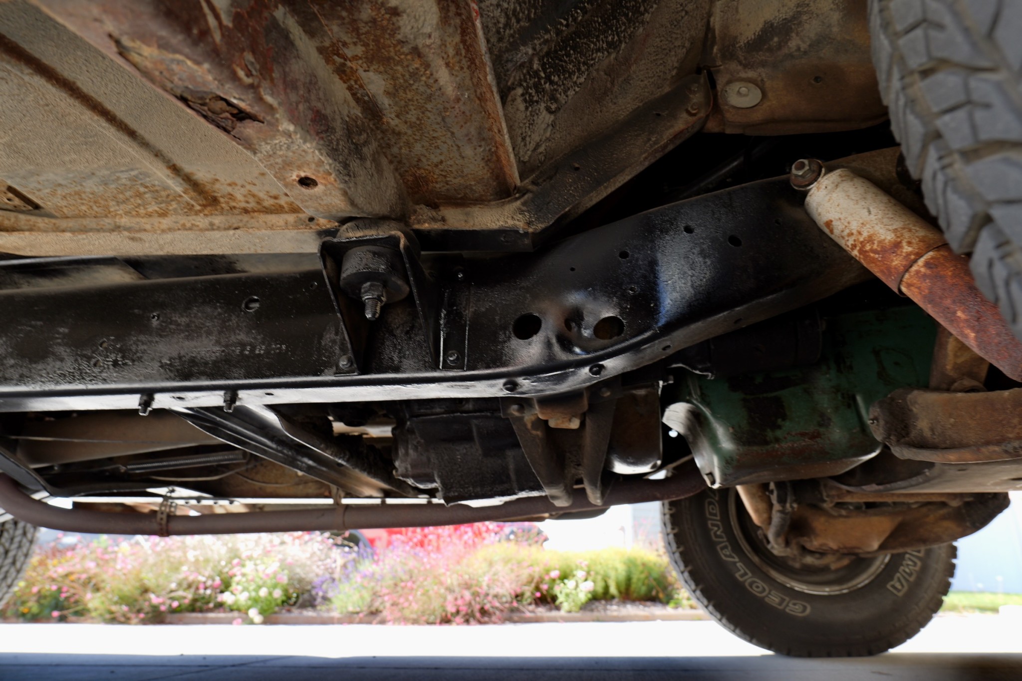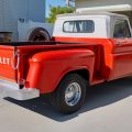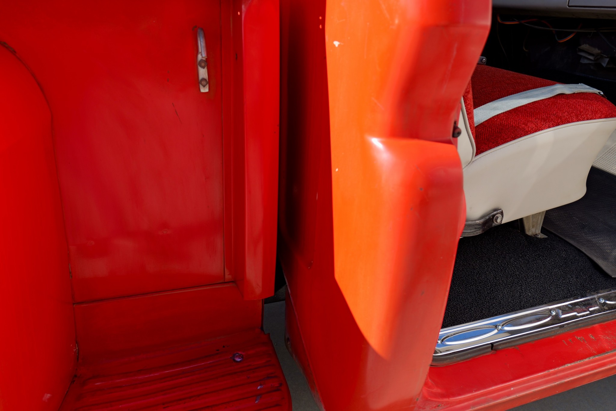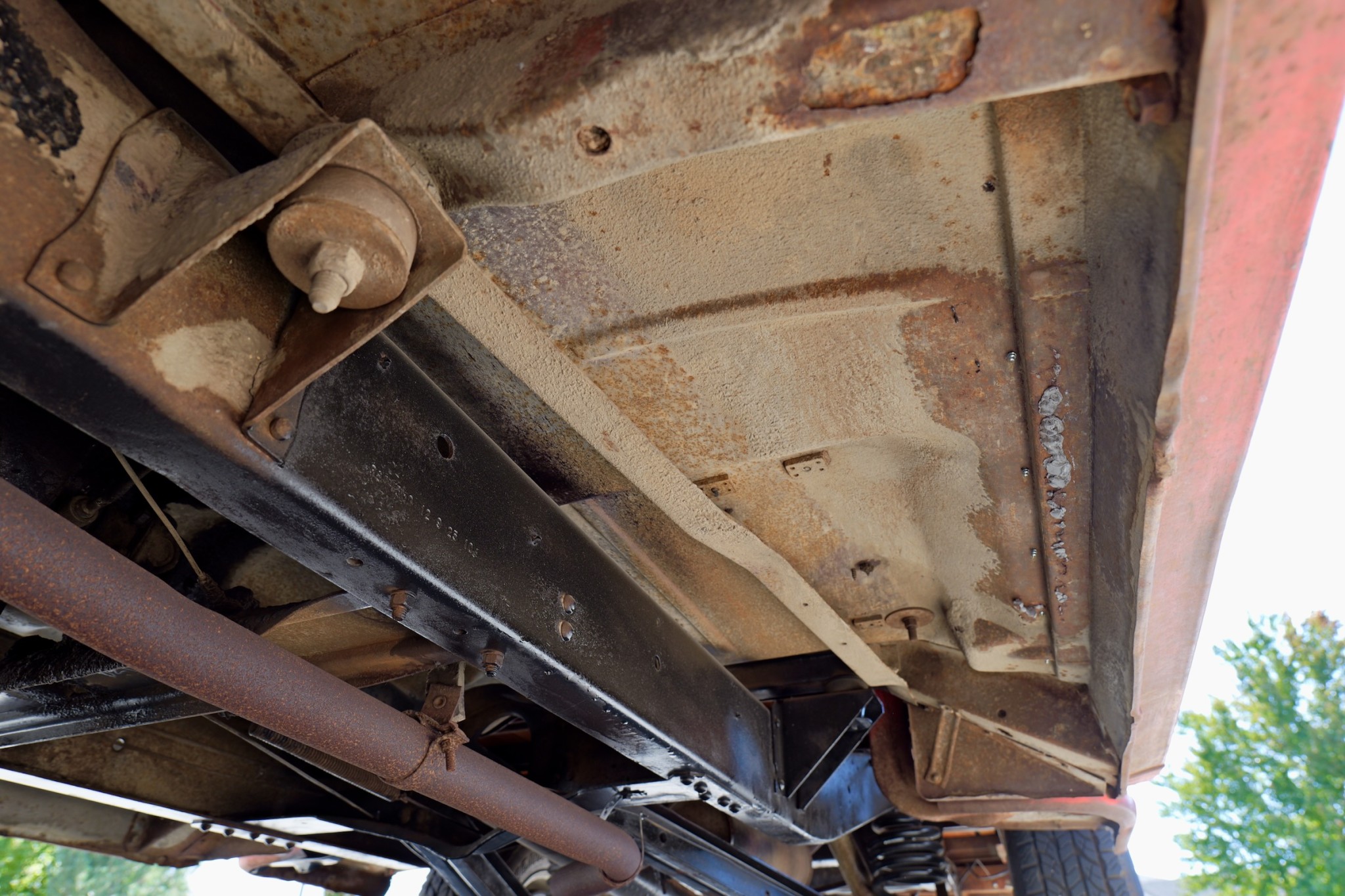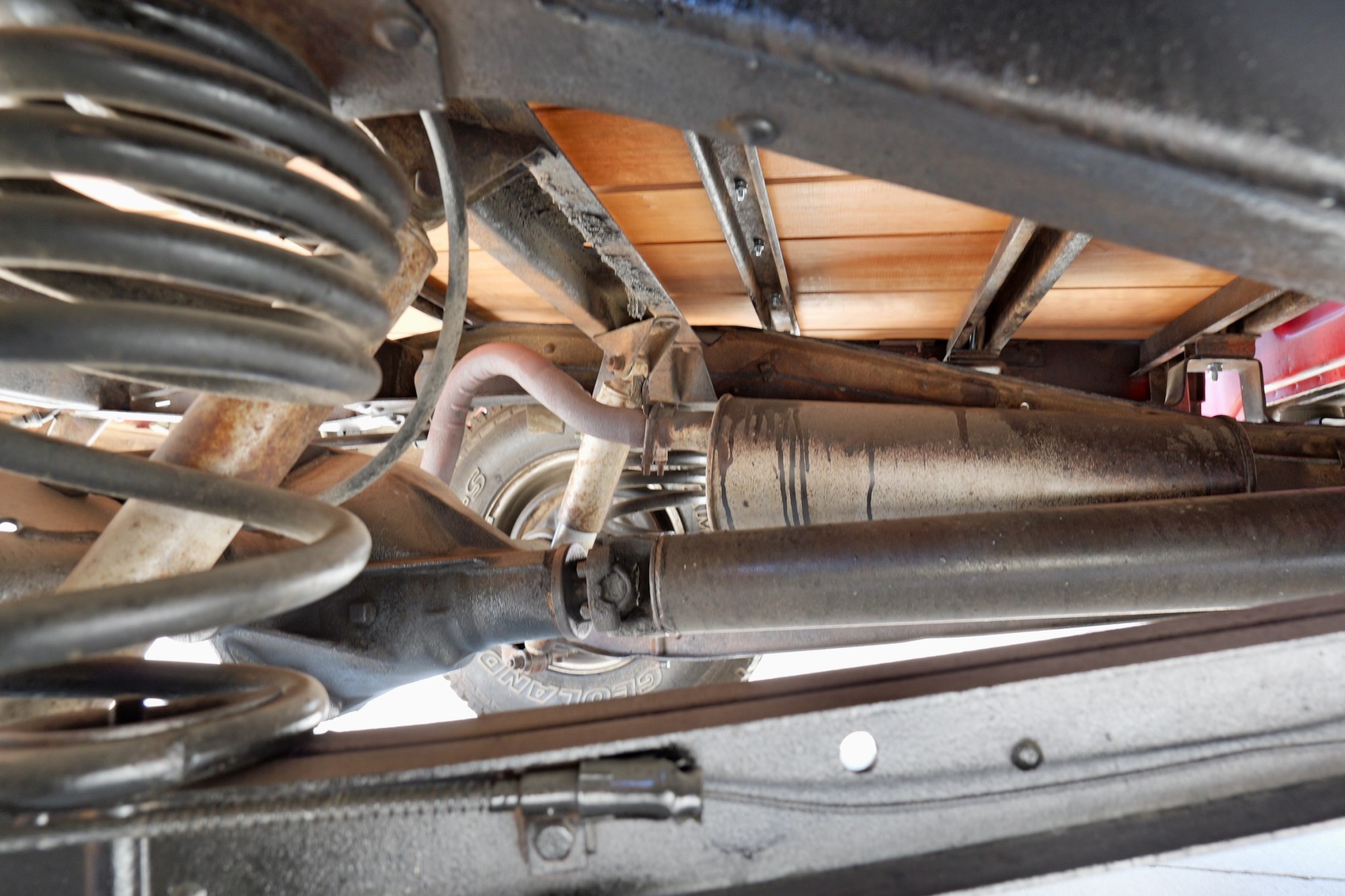 This truck’s only weakness is some rust in the front fenders and door bottoms. The cab corners and floors look to be in solid original condition. The seller replaced the wood in the truck bed with custom-cut cherry wood, which looks great. We didn’t find any signs of rust in the frame or bed structure.