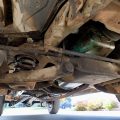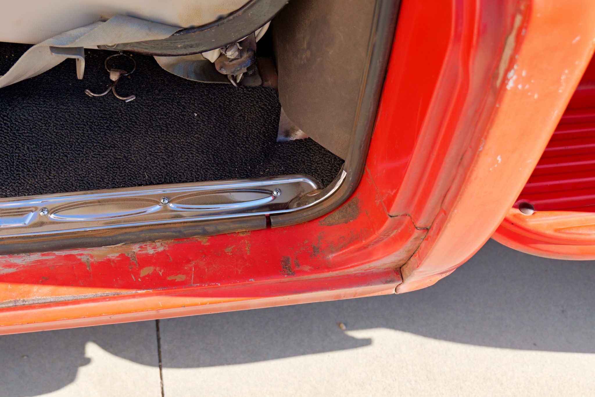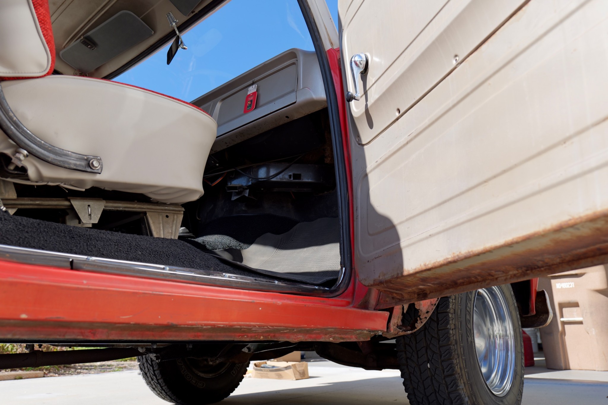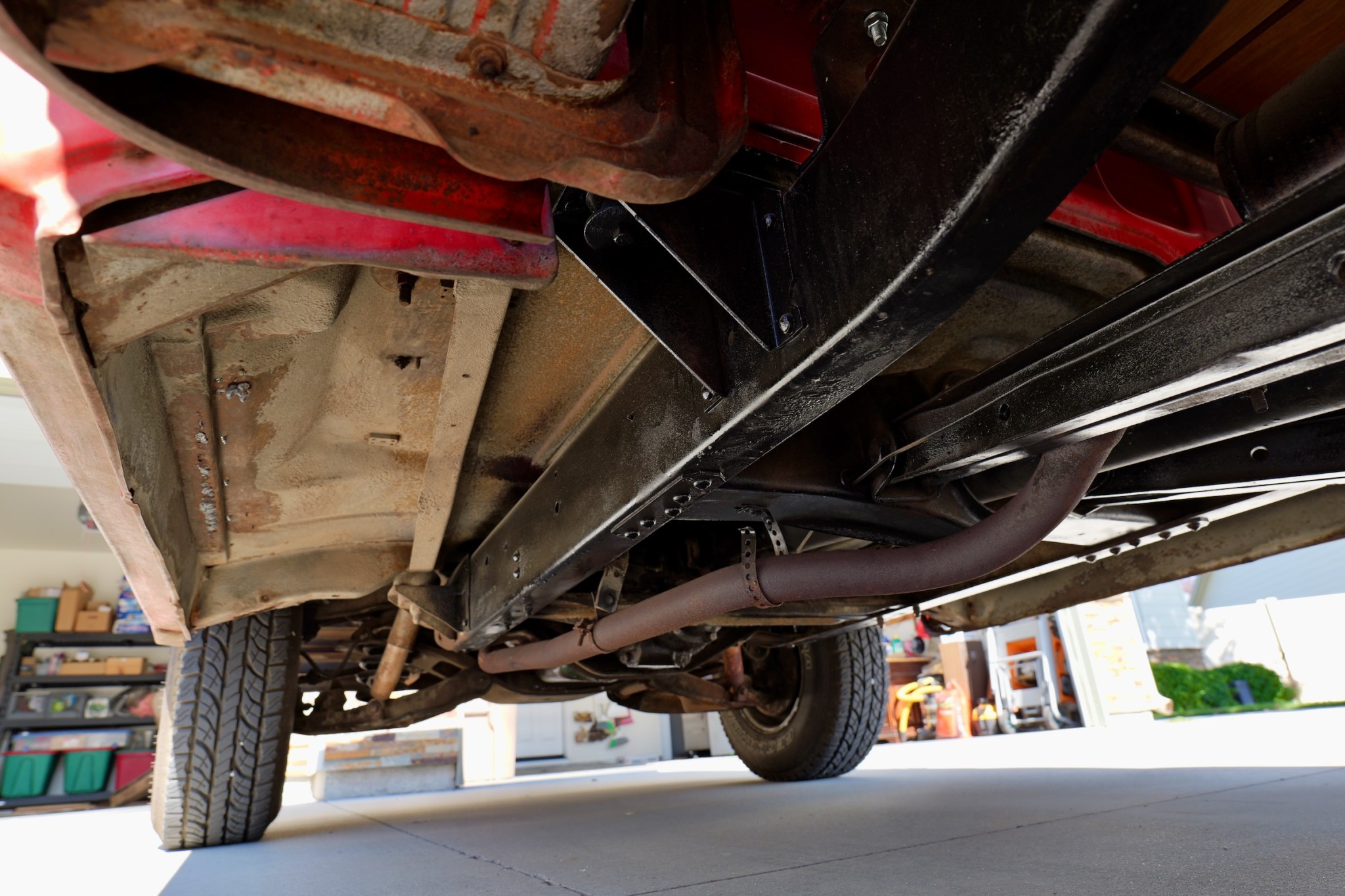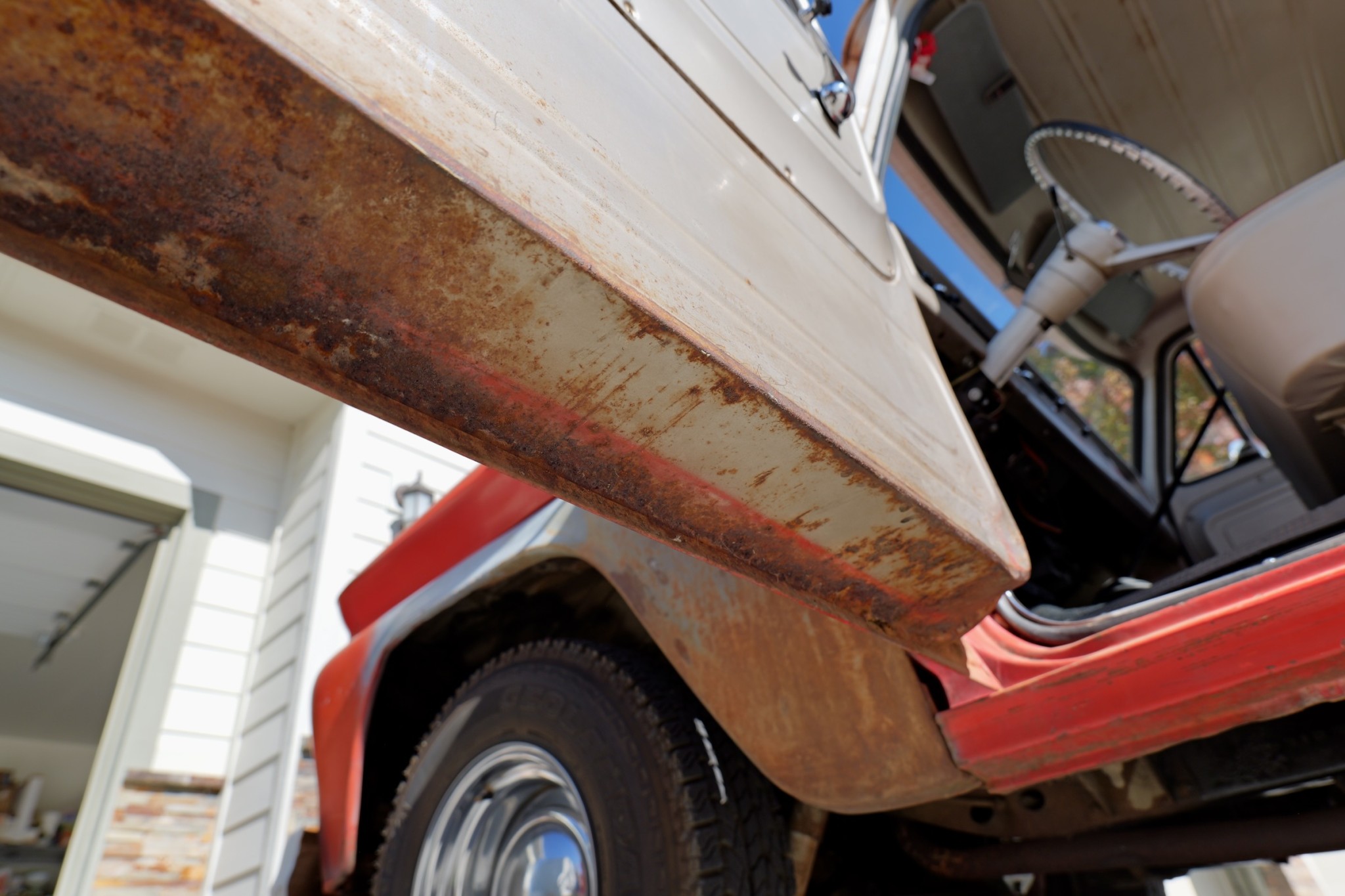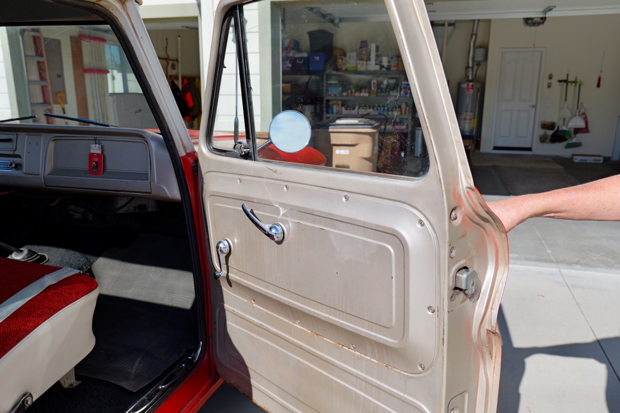 This truck’s only weakness is some rust in the front fenders and door bottoms. The cab corners and floors look to be in solid original condition. The seller replaced the wood in the truck bed with custom-cut cherry wood, which looks great. We didn’t find any signs of rust in the frame or bed structure.
