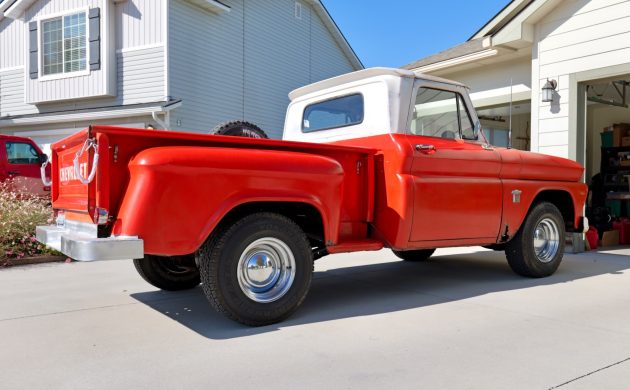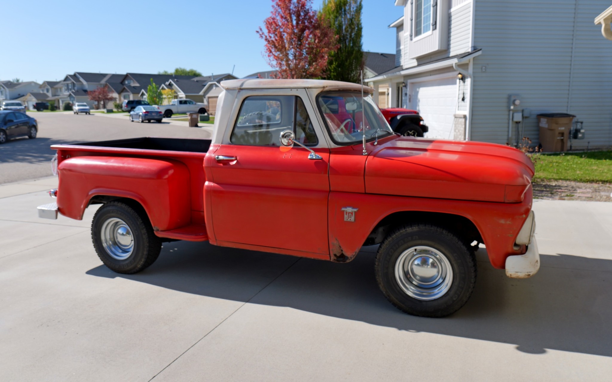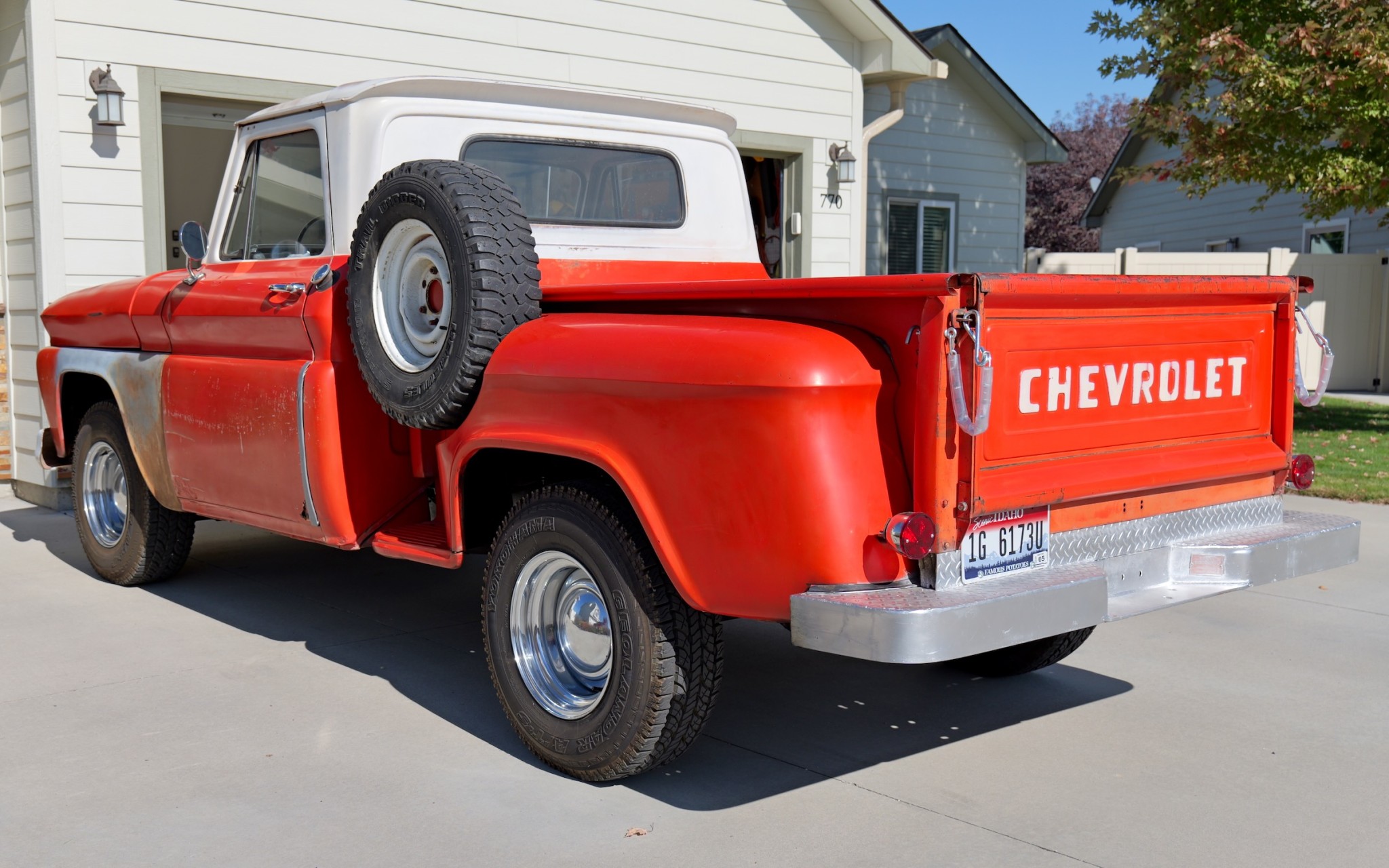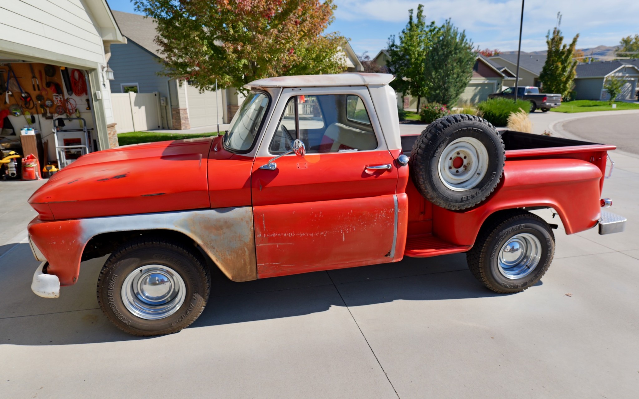 When this 1964 Chevrolet C10 Stepside shortbed came in as a Barn Finds Auction, we decided we’d better go take a closer look! It’s located in Emmett, Idaho, which is just down the road from Barn Finds HQ. While we were taking a look, we also took photos of it for the auction, which you can view below (full-resolution here). It’s a sweet old truck with some cool history. The seller, Gary, has known the truck since it was delivered new to the Emmett Garage. It was used by the owner of the dealership for a number of years, but eventually was parked under a tree in the second owner’s yard. A few years back, Gary had the chance to buy it, and he just couldn’t miss out on owning it. After buying it, he got it back on the road and cleaned it up. He’s enjoyed it, but the time has come to find a new home for it.