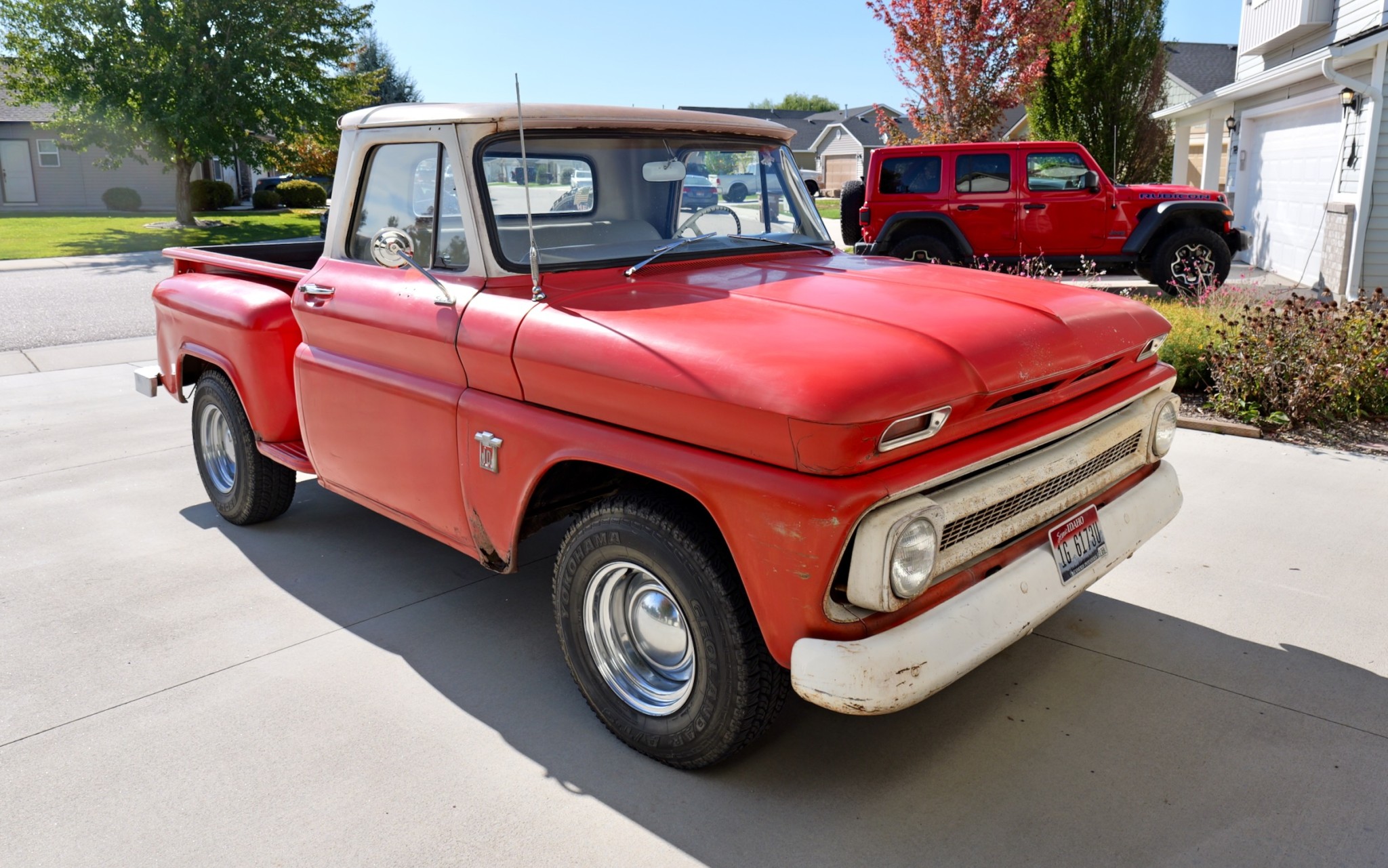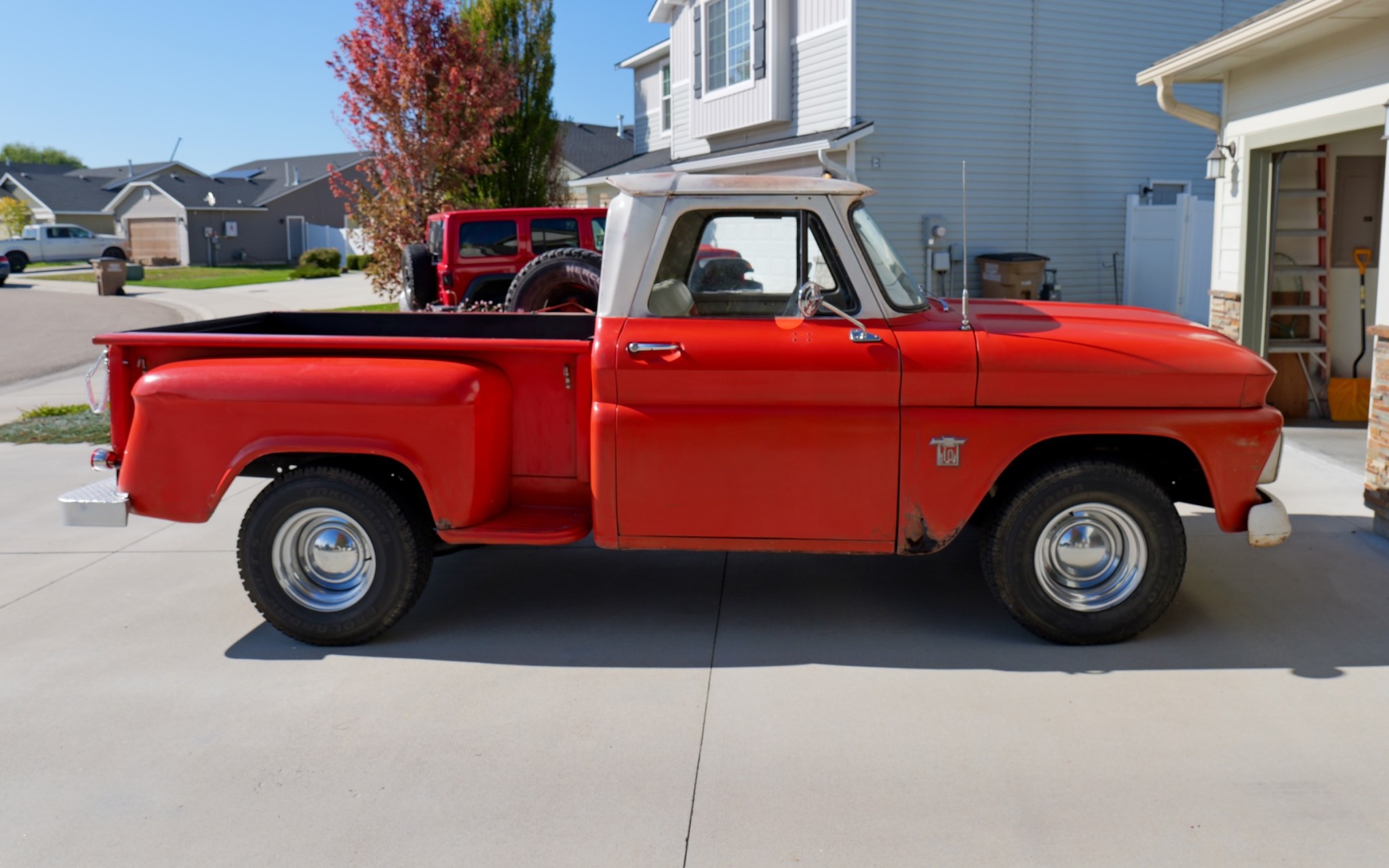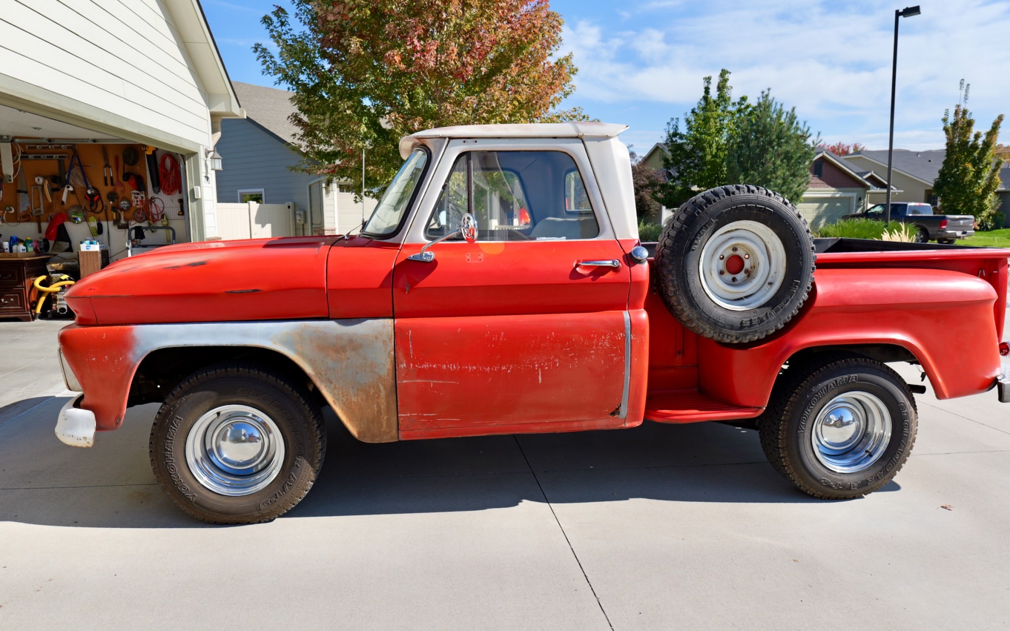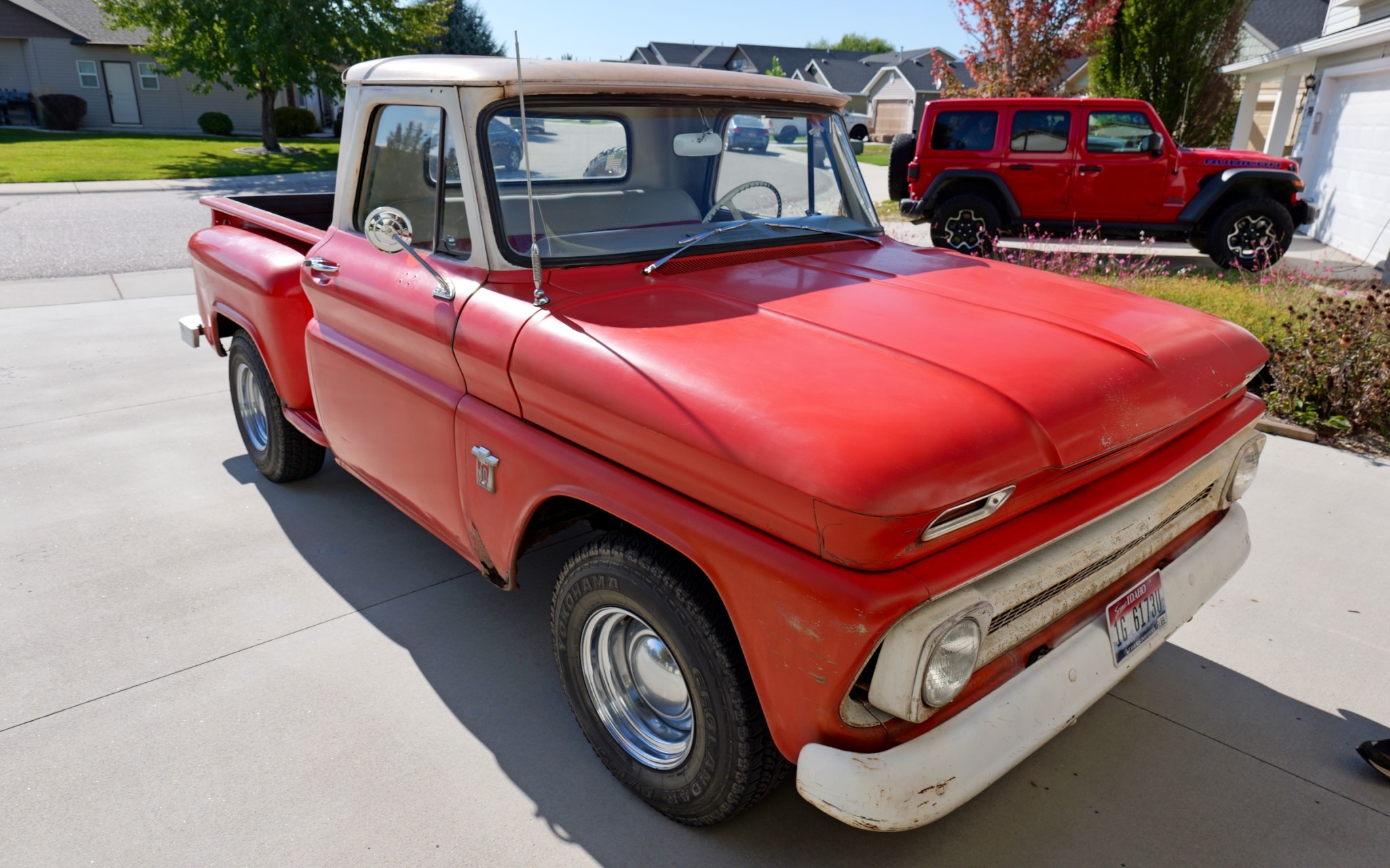 When this 1964 Chevrolet C10 Stepside shortbed came in as a Barn Finds Auction, we decided we’d better go take a closer look! It’s located in Emmett, Idaho, which is just down the road from Barn Finds HQ. While we were taking a look, we also took photos of it for the auction, which you can view below (full-resolution here). It’s a sweet old truck with some cool history. The seller, Gary, has known the truck since it was delivered new to the Emmett Garage. It was used by the owner of the dealership for a number of years, but eventually was parked under a tree in the second owner’s yard. A few years back, Gary had the chance to buy it, and he just couldn’t miss out on owning it. After buying it, he got it back on the road and cleaned it up. He’s enjoyed it, but the time has come to find a new home for it.